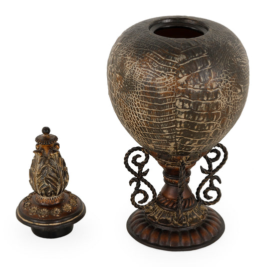 3872 - مرطبان على حامل - قطر 8 × ارتفاع 19 - جلد تمساح معتق/P1040