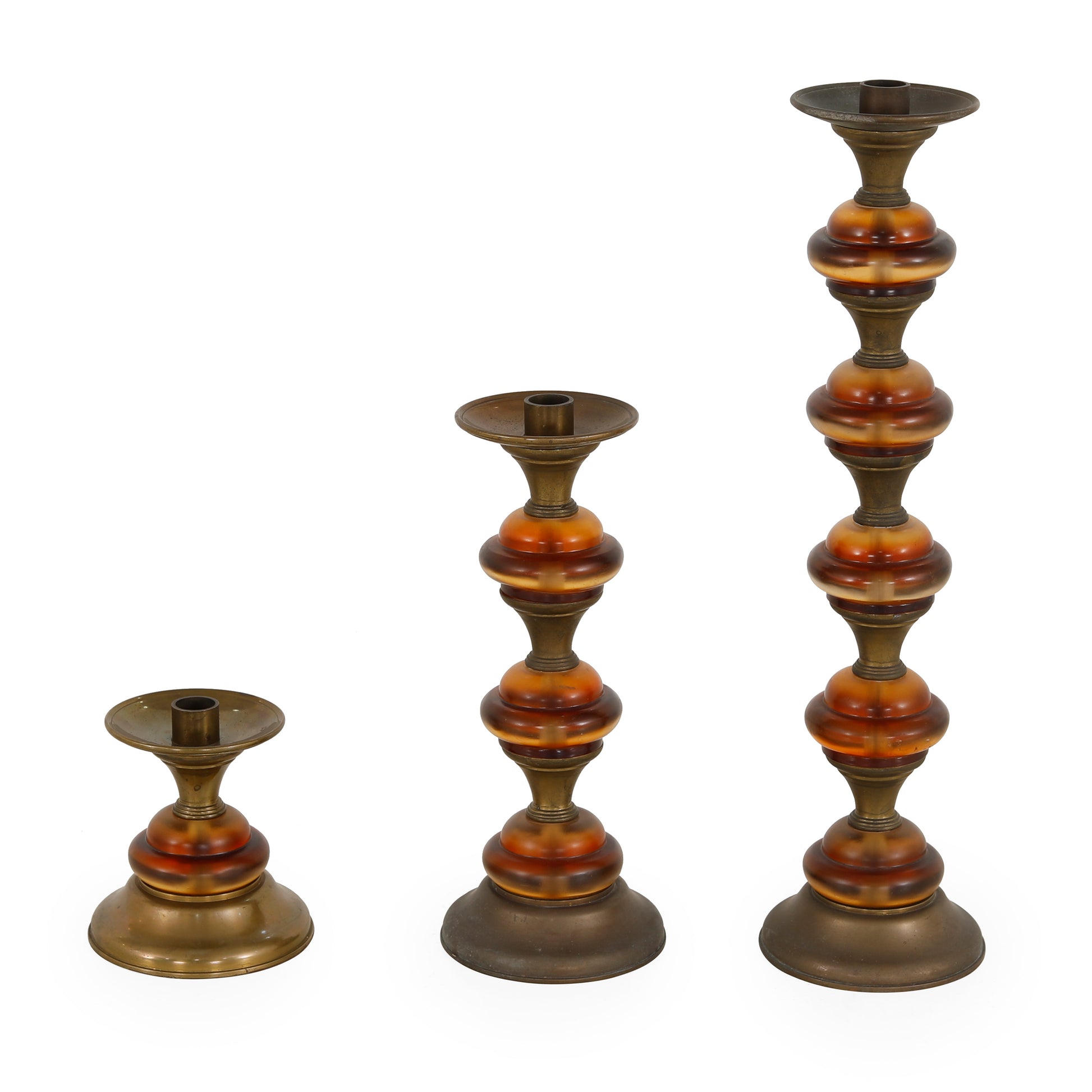 3 حوامل شموع، 6-13-20 ارتفاع، لون كهرماني