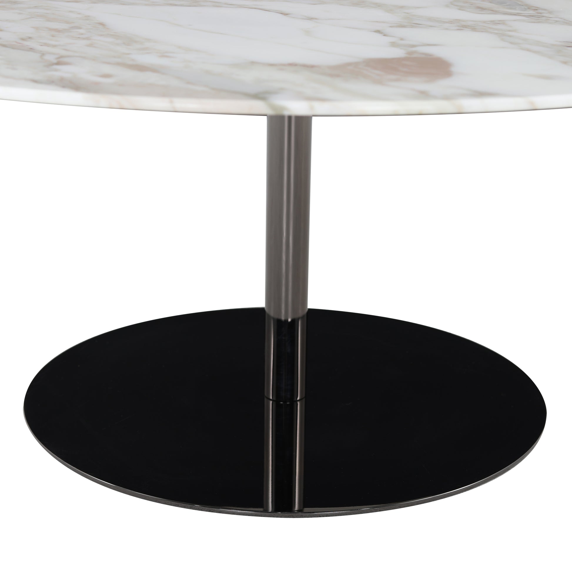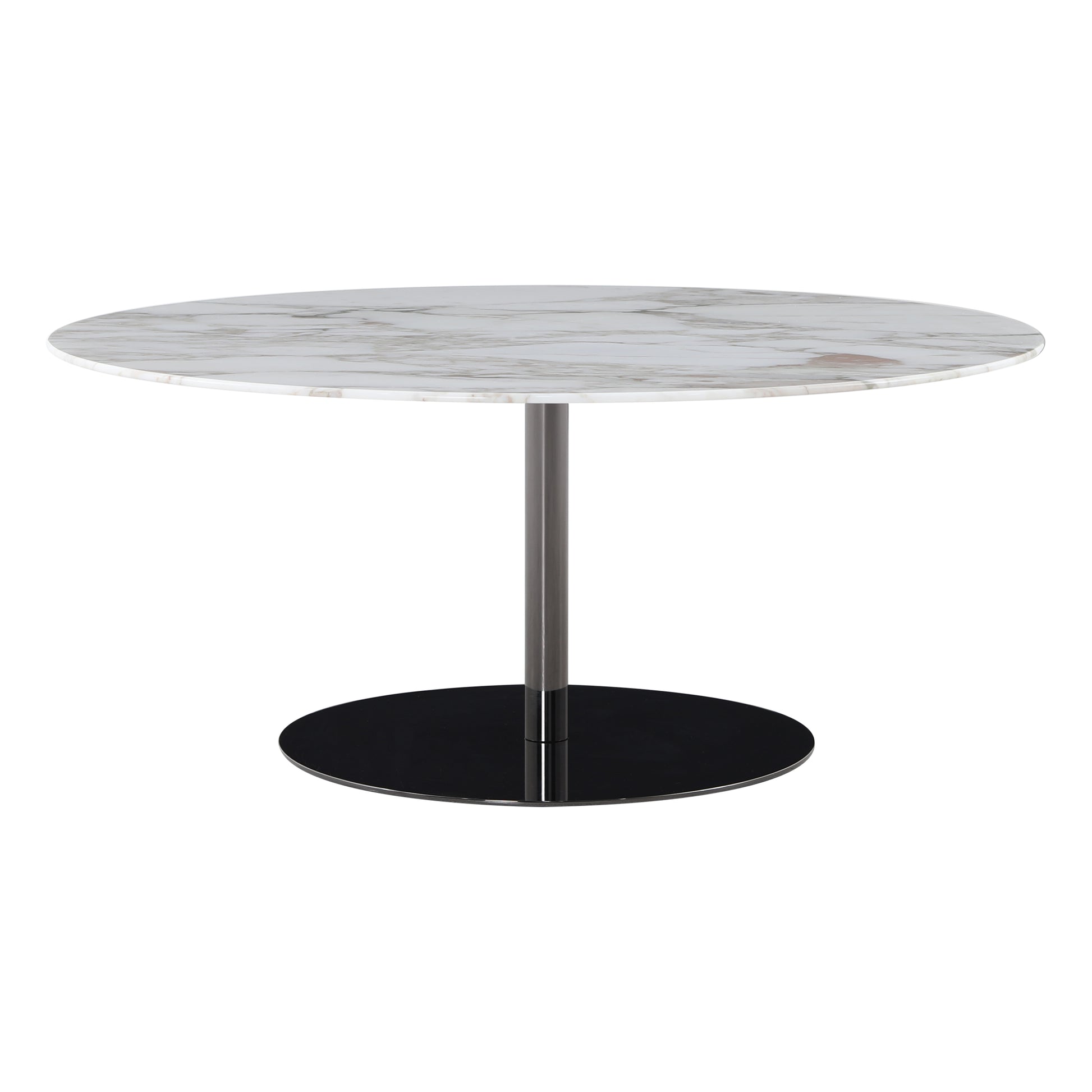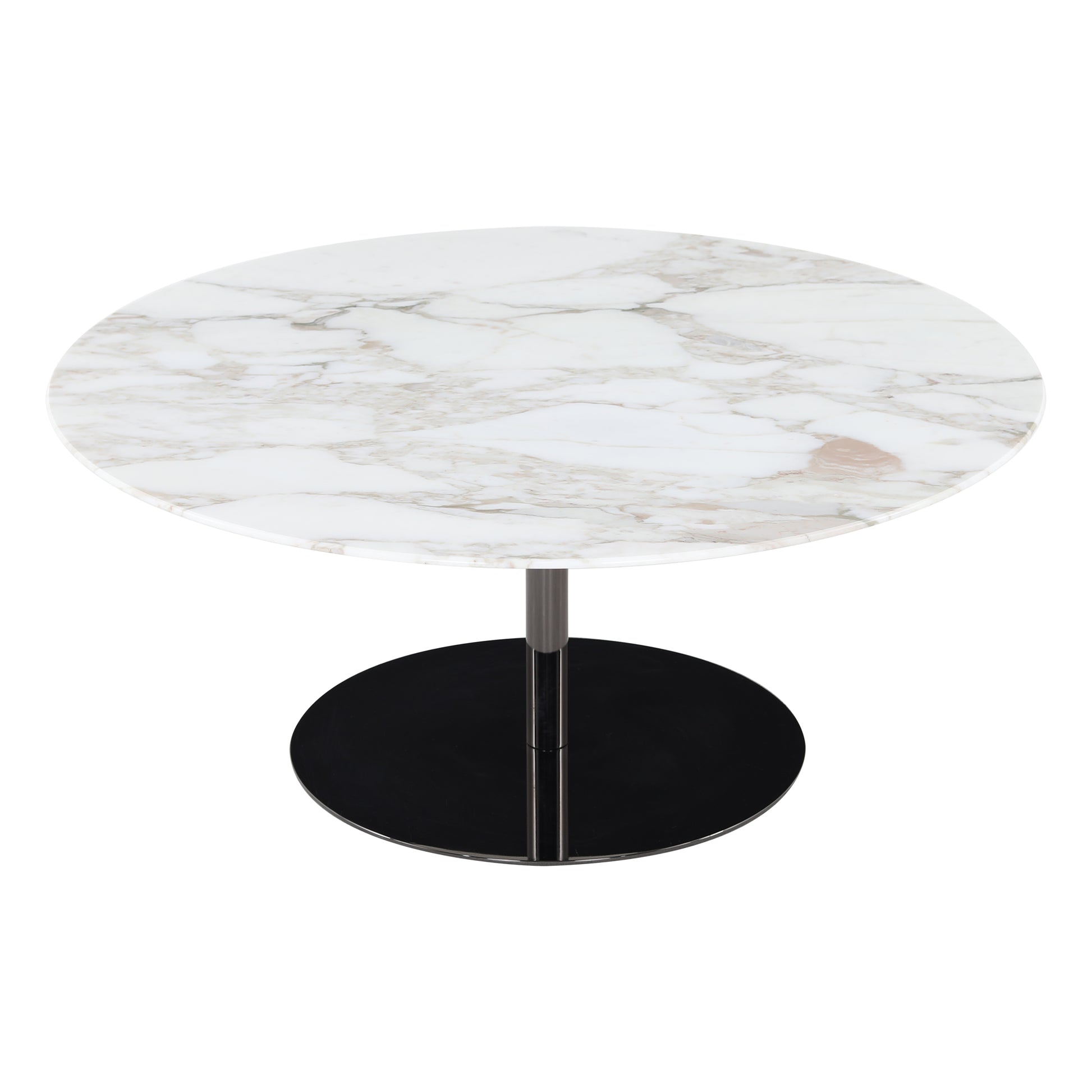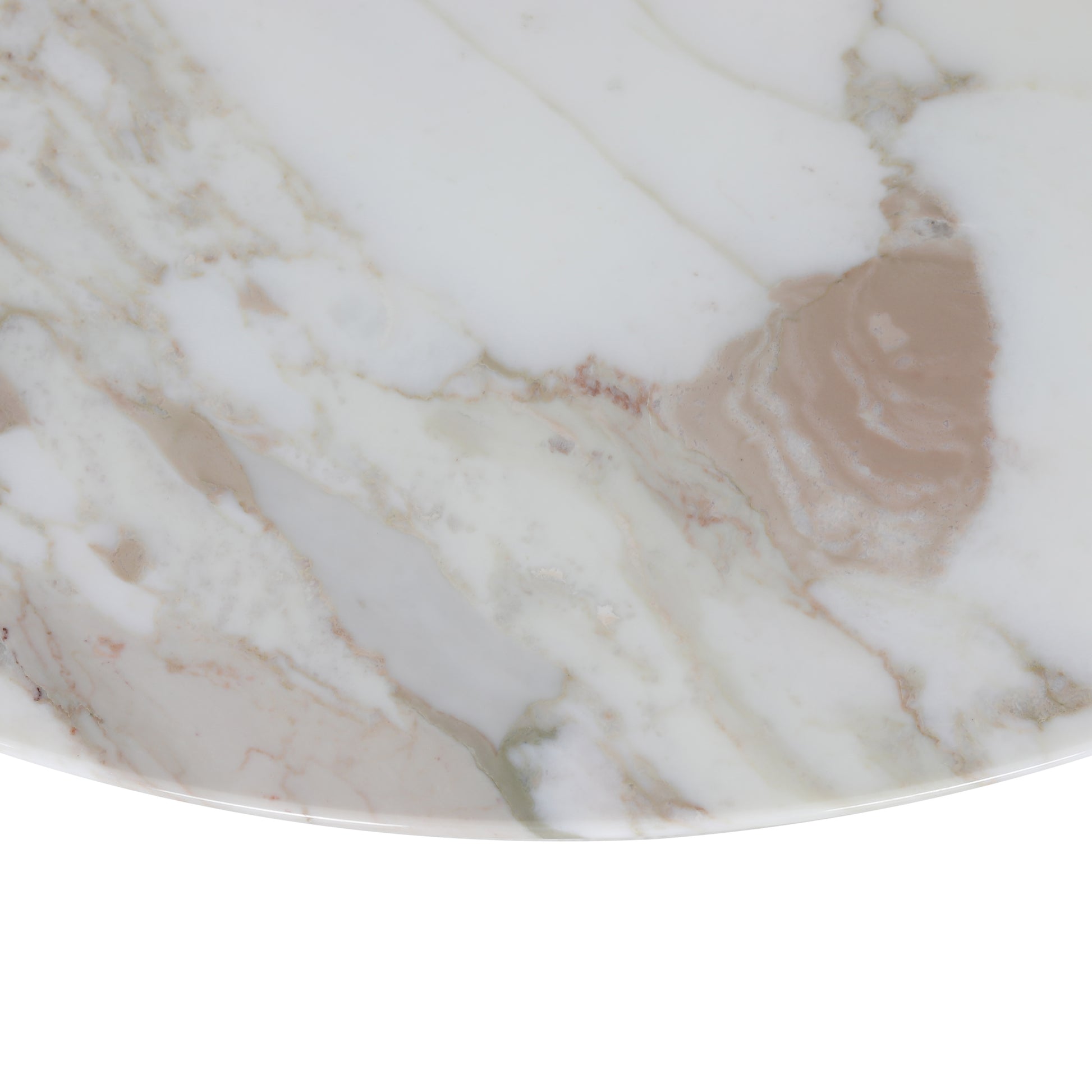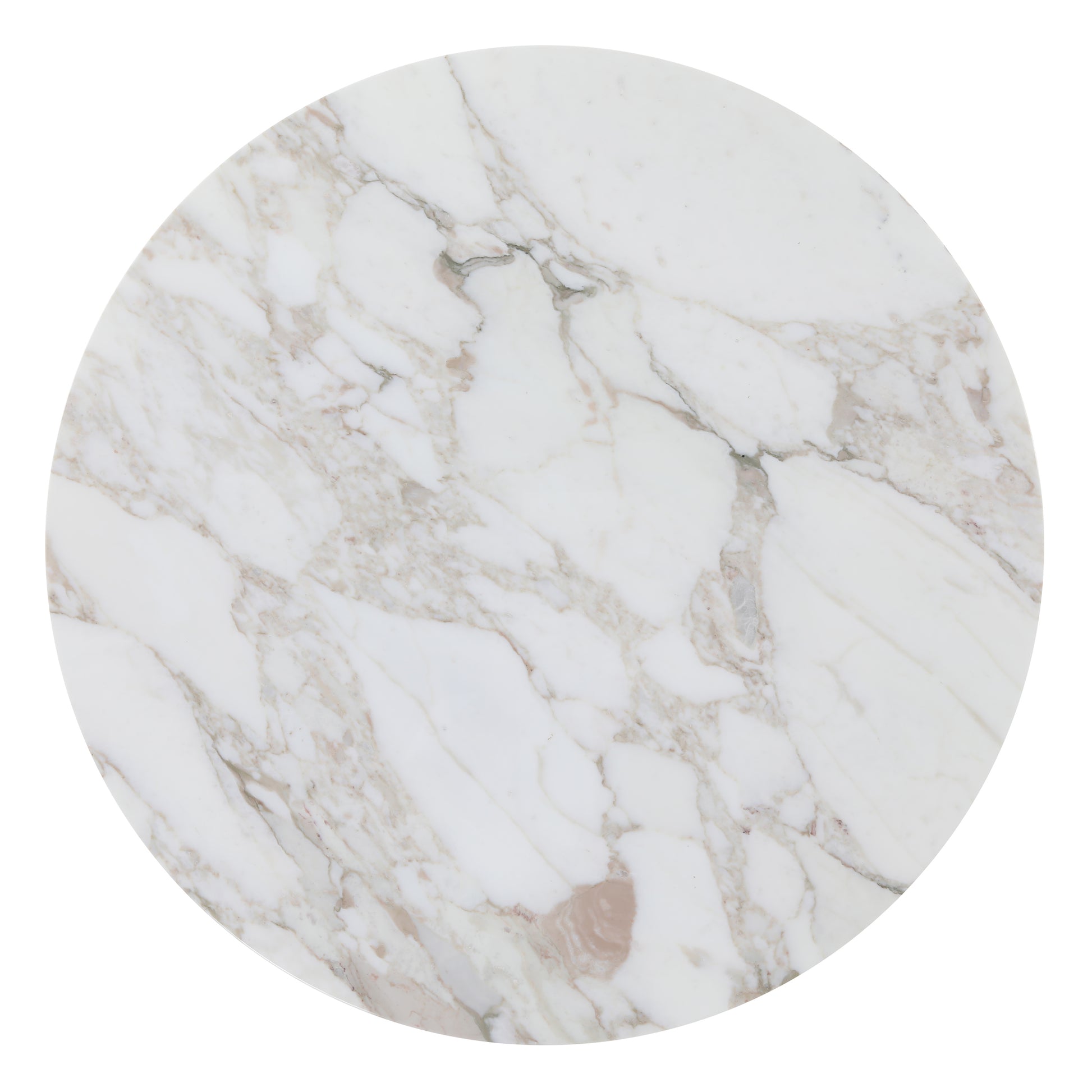 طاولة بيلاجيو بقطر 90 رخام كالكوتا. الجزء العلوي: من رخام كالكوتا بسمك 20 مم، مع تشكيل على حافة المحيط. القاعدة: قاعدة معدنية أنبوبية بقطر 30 مم بلمسة نهائية من النيكل الأسود اللامع.