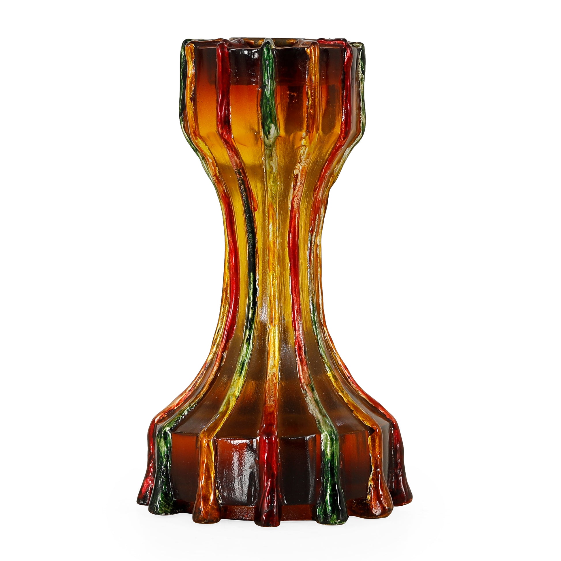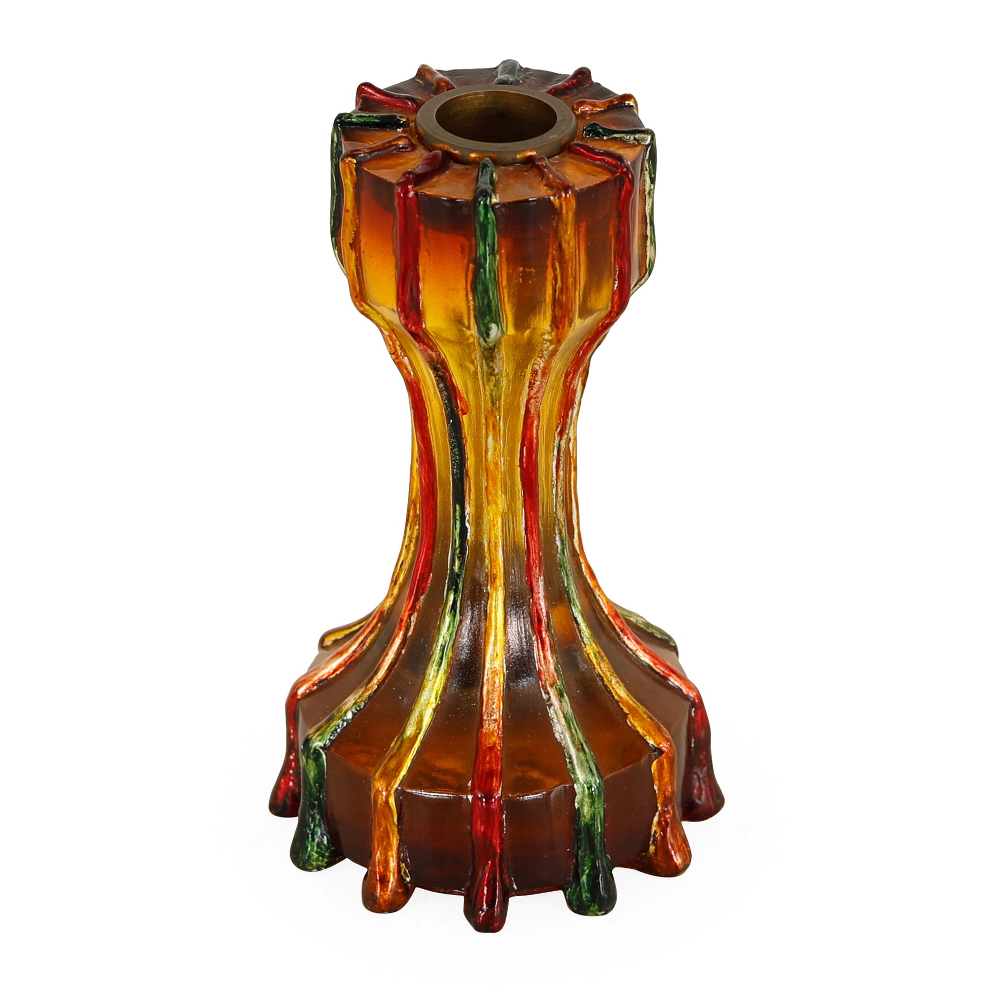 مجموعة مميزة من الشمعدانات بثلاثة أحجام. يتميز كل شمعدان بتصميم فريد يجعله قطعة ديكور جذابة، مستوحى من أنماط الكاليديوسكوب ومصنوع من راتنج عالي الجودة. يتميز بشكل انسيابي يعكس روحًا إبداعية، مع تدرجات متناغمة من الكهرمان والبرتقالي، مع لمسات داكنة تضفي على القطعة حيويةً مميزة. يبرز سطح الشمعدان بتفاصيل طويلة وناعمة تعزز انعكاس الضوء عند إضاءة الشمعة، مما يضفي على المكان جوًا دافئًا وسحرًا فنيًا.