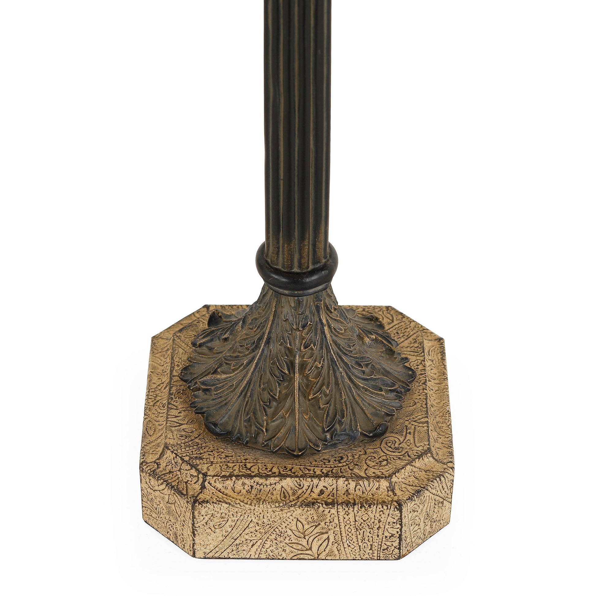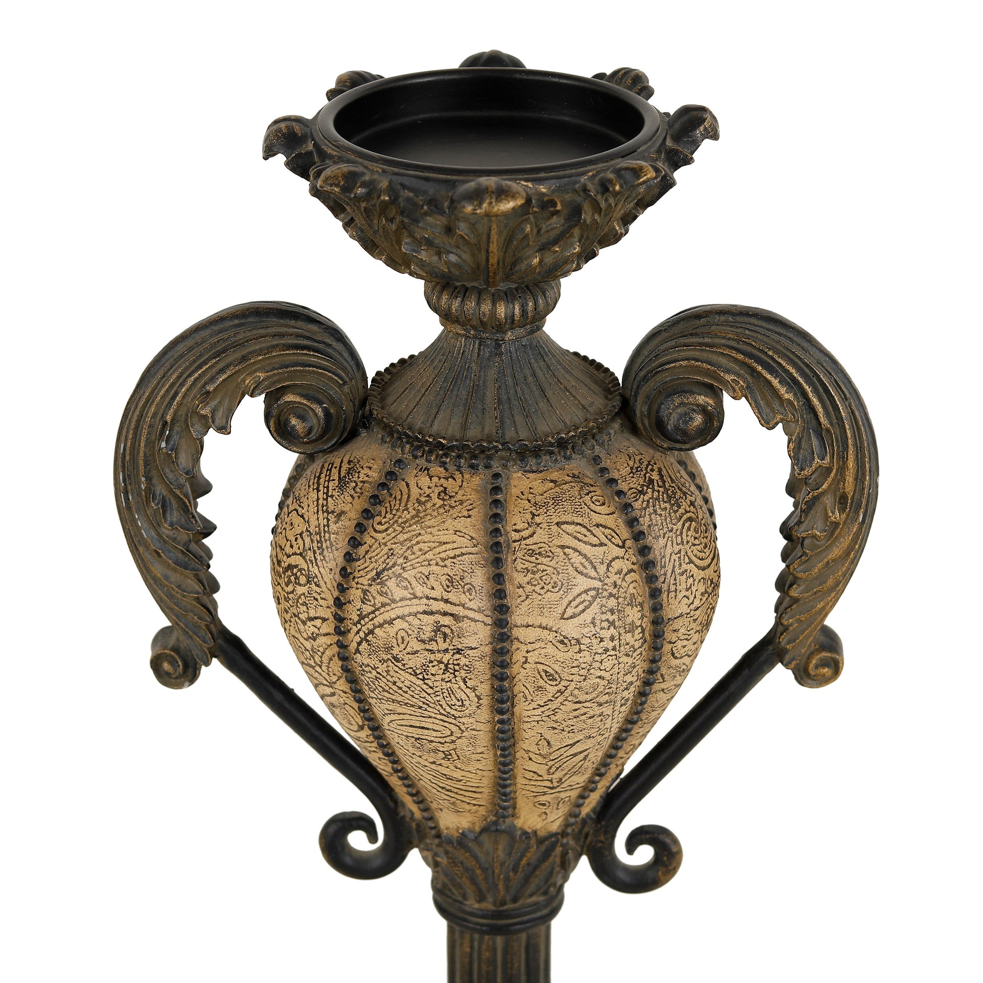 شمعدان فاخر بتصميم كلاسيكي أنيق يضفي فخامةً على أي مكان. يتميز بتصميم عمودي يتوسطه وعاء مزين بتفاصيل كلاسيكية، محاط بمقابض معدنية منحنية تزيد من روعة التصميم. يرتكز الشمعدان على قاعدة هندسية متينة تعزز ثباته وتمنحه حضورًا فريدًا، مزينة بلمسات عتيقة تستحضر إحساسًا بالأصالة والتراث.