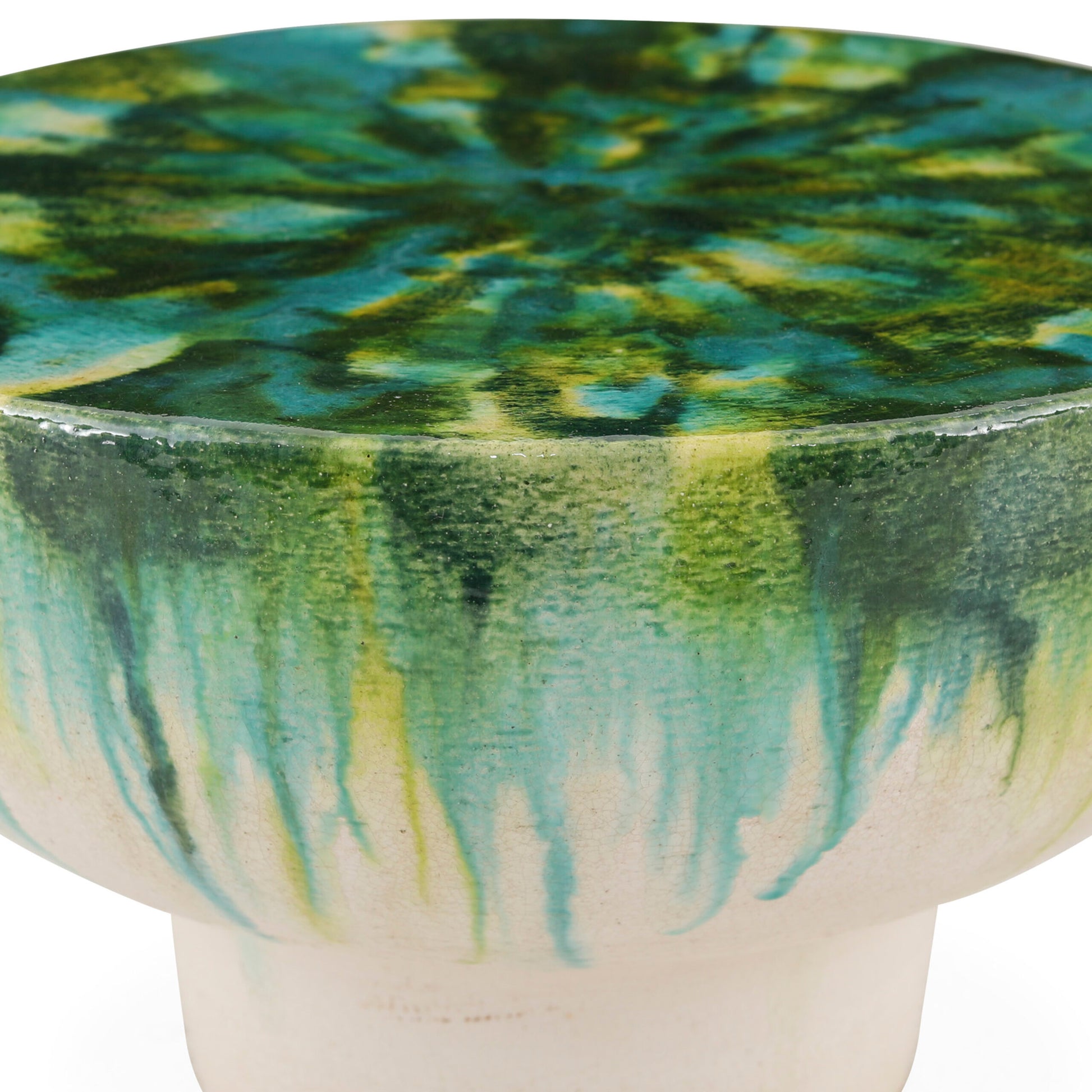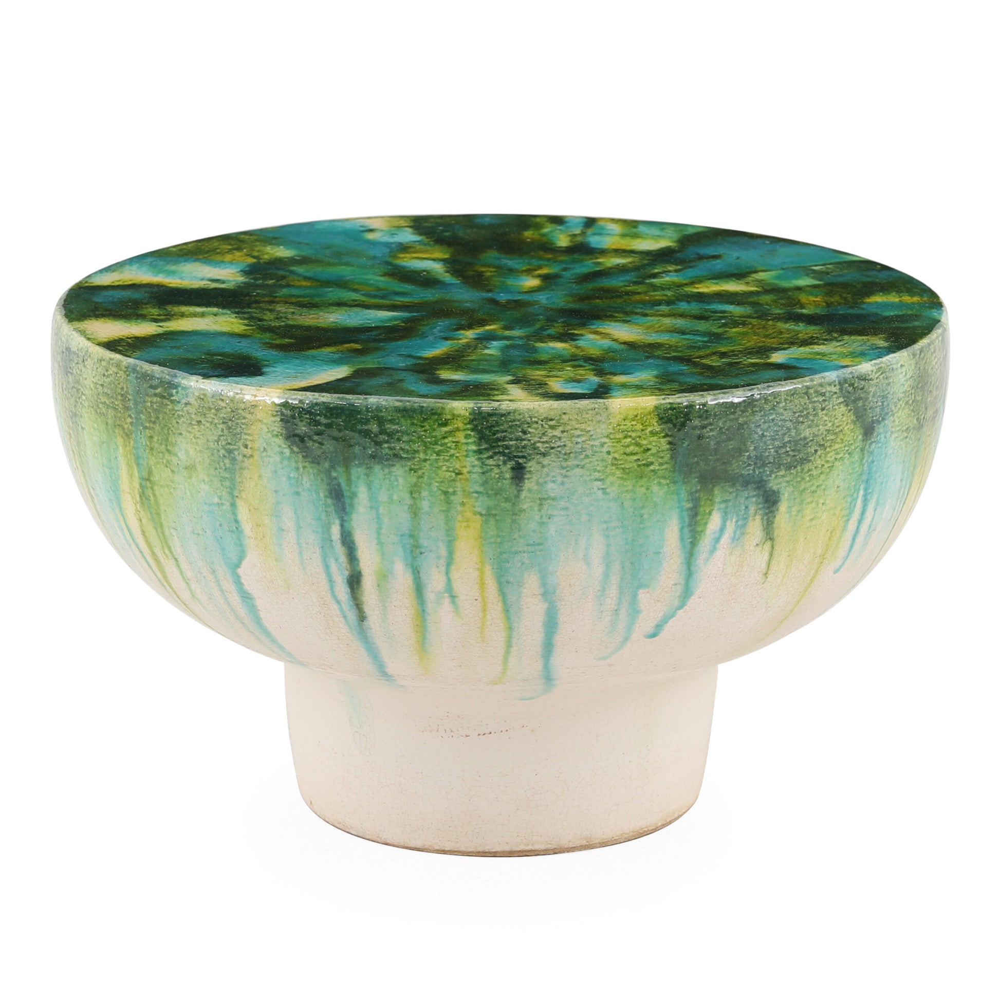 طاولة جانبية من كاتاليني، ديكور ملون CE663، ديكور أخضر، ضياء 41x23. كالاتيني | طاولة جانبية من السيراميك مرسومة باليد باللون الأخضر من Paola Lenti