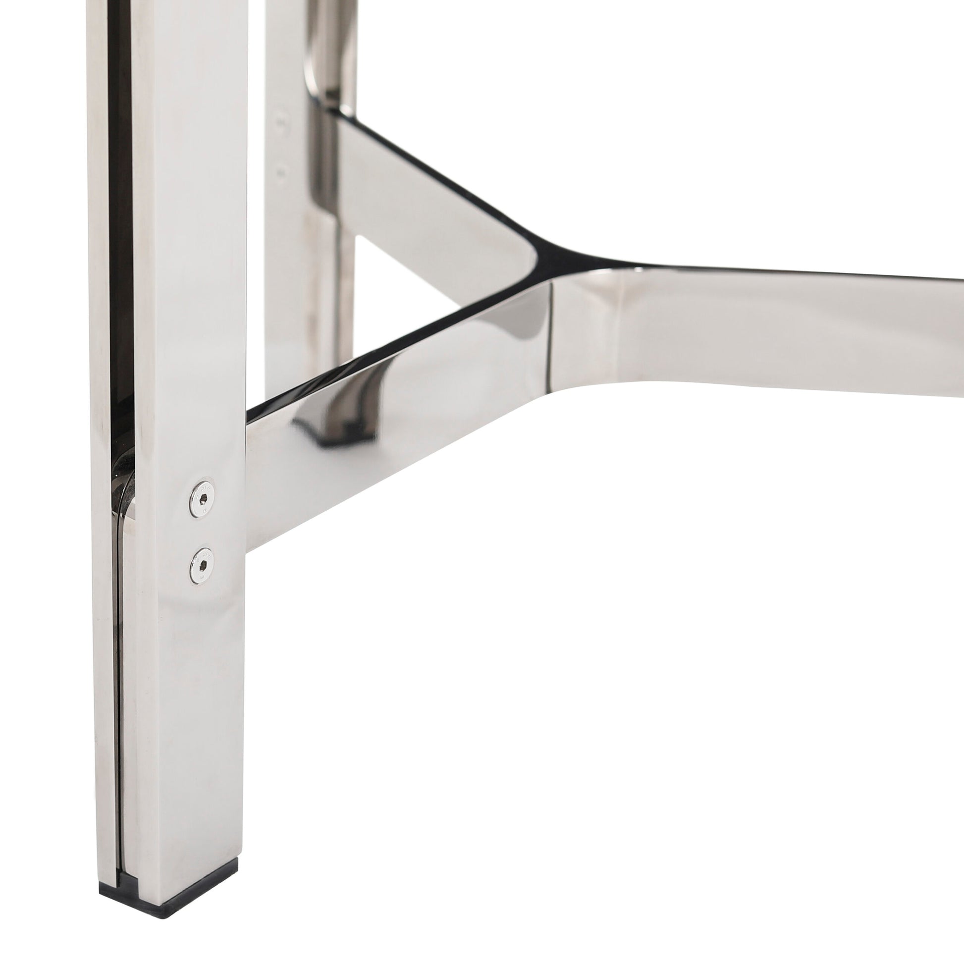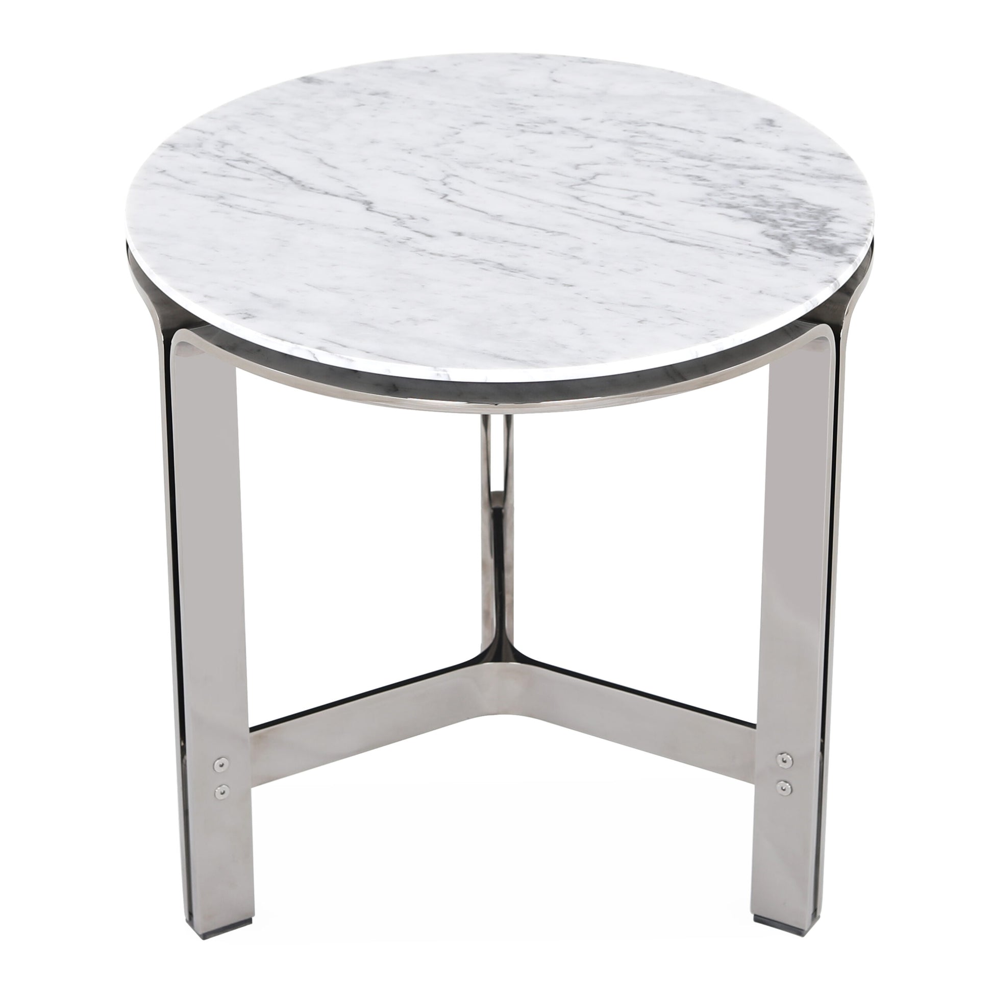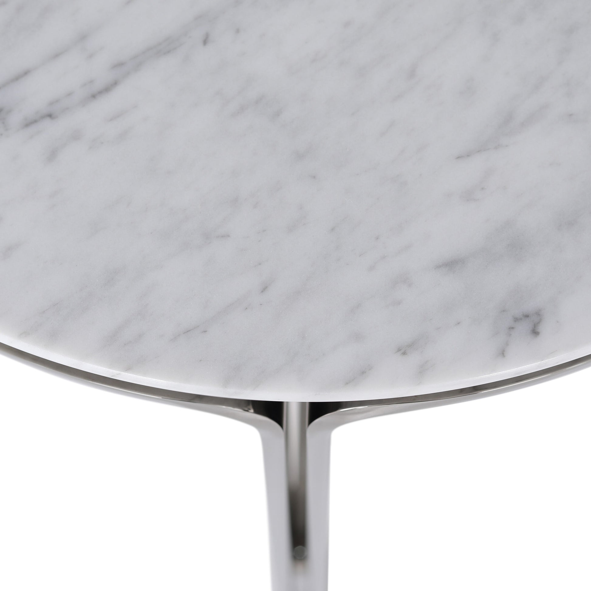 طاولة كلارك: الجزء العلوي: رخام كرارا أبيض. تتميز CLARKE بهيكلها المعدني الذي يمتد من الساق ليمتد أسفل الجزء العلوي من الرخام. يؤكد الجزء العلوي من رخام كالكوتا، جنبًا إلى جنب مع الهيكل المعدني، على دقة القطعة. وبدلاً من ذلك، فإن استخدام الجزء العلوي من مادة دافئة مثل الطبيعية على القاعدة المعدنية يضفي نعومة على الصورة الصارمة.