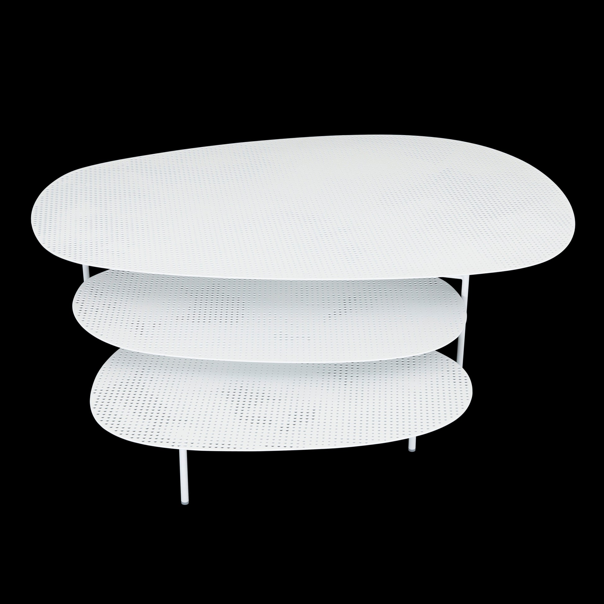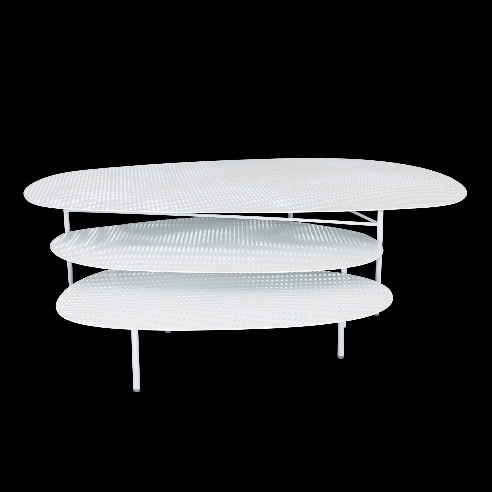 Cloud by Nendo for Moroso عبارة عن مجموعة من طاولات القهوة. الإلهام يُستمد من الغيوم، من طريقة مطاردتها وتجاوزها لبعضها البعض، وظلالها تتبع الواحدة تلو الأخرى على الأرض. ثلاث طاولات يمكن ترتيبها حسب رغبتك، بجانب أو فوق بعضها البعض. فولاذ مثقب مطلي باللون الأبيض، وأقدام فولاذية مطلية باللون الأبيض. ينزلق في مادة البولي بروبيلين.