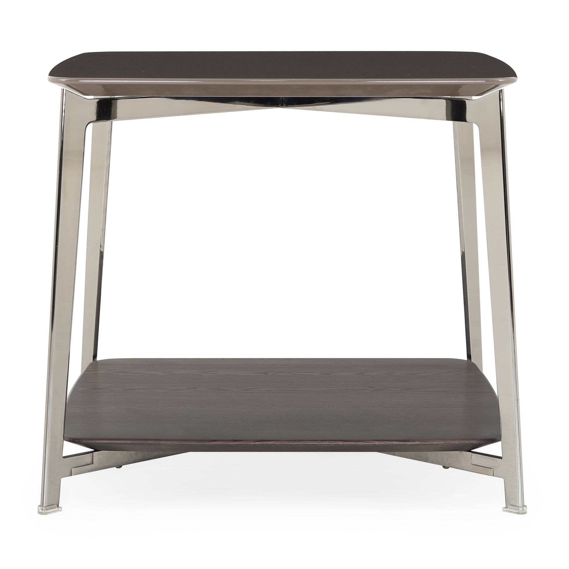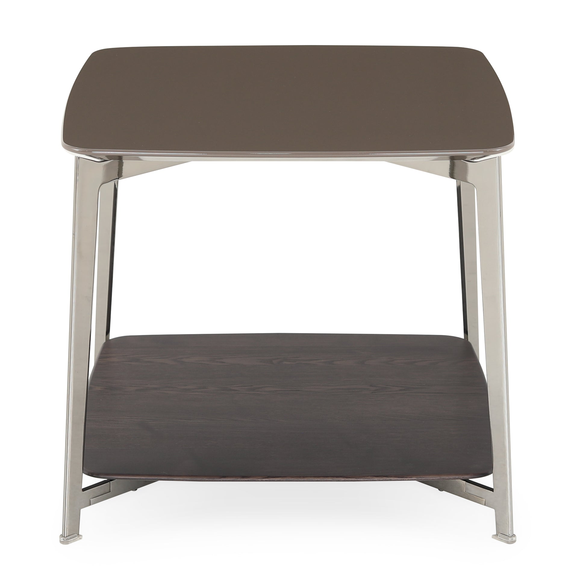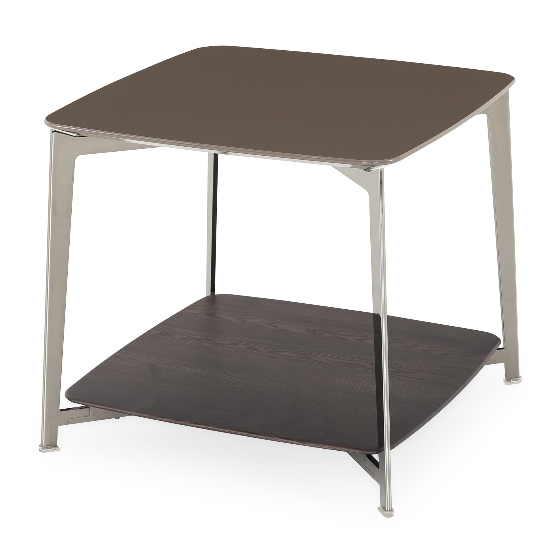 طاولة مزدوجة 60 × 60 ارتفاع 53 سم الجزء العلوي: مطلي باللون البني الفاتح الفئة ب الجزء العلوي السفلي: مطلي باللون البني الداكن الإطار: أسود لامع
