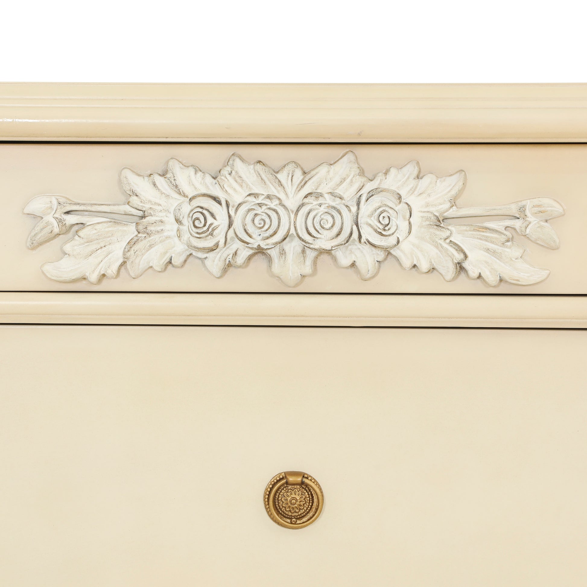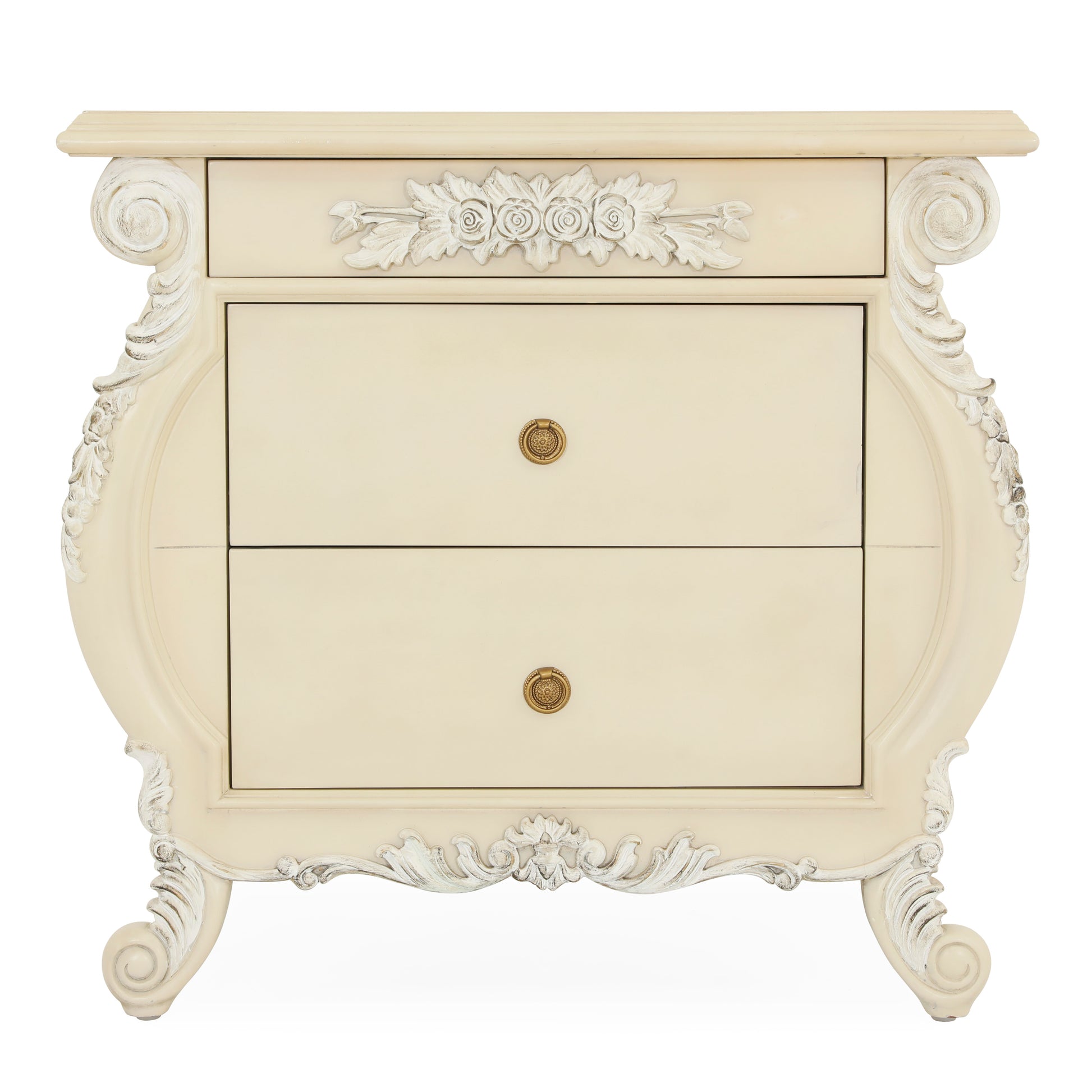 EMILE KING BED ROOM WHITE DISTRESSED ON CARVING