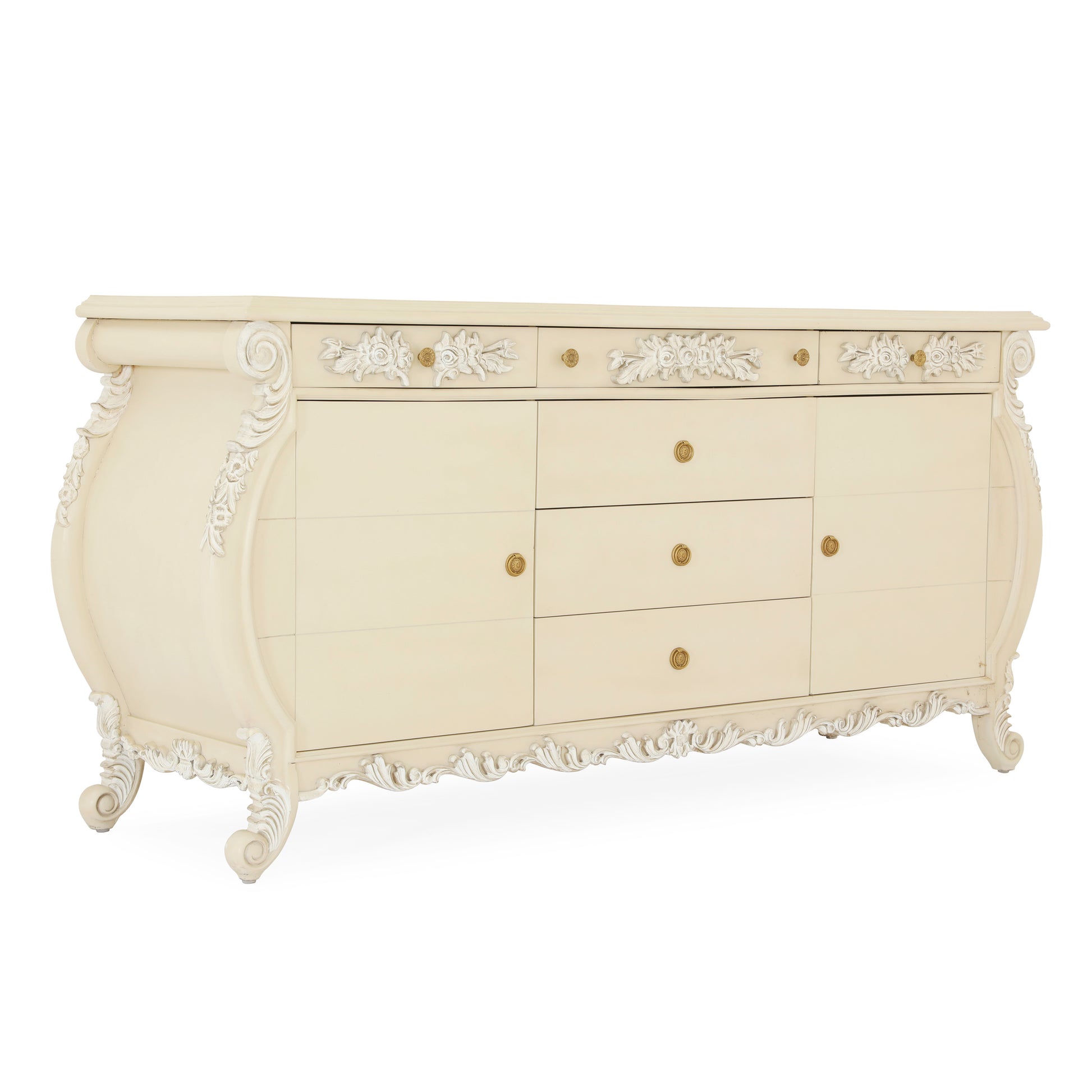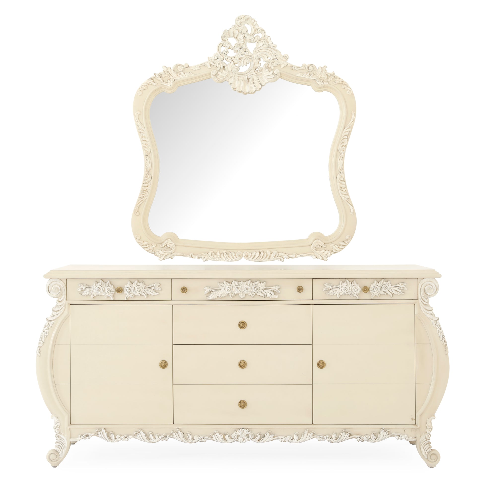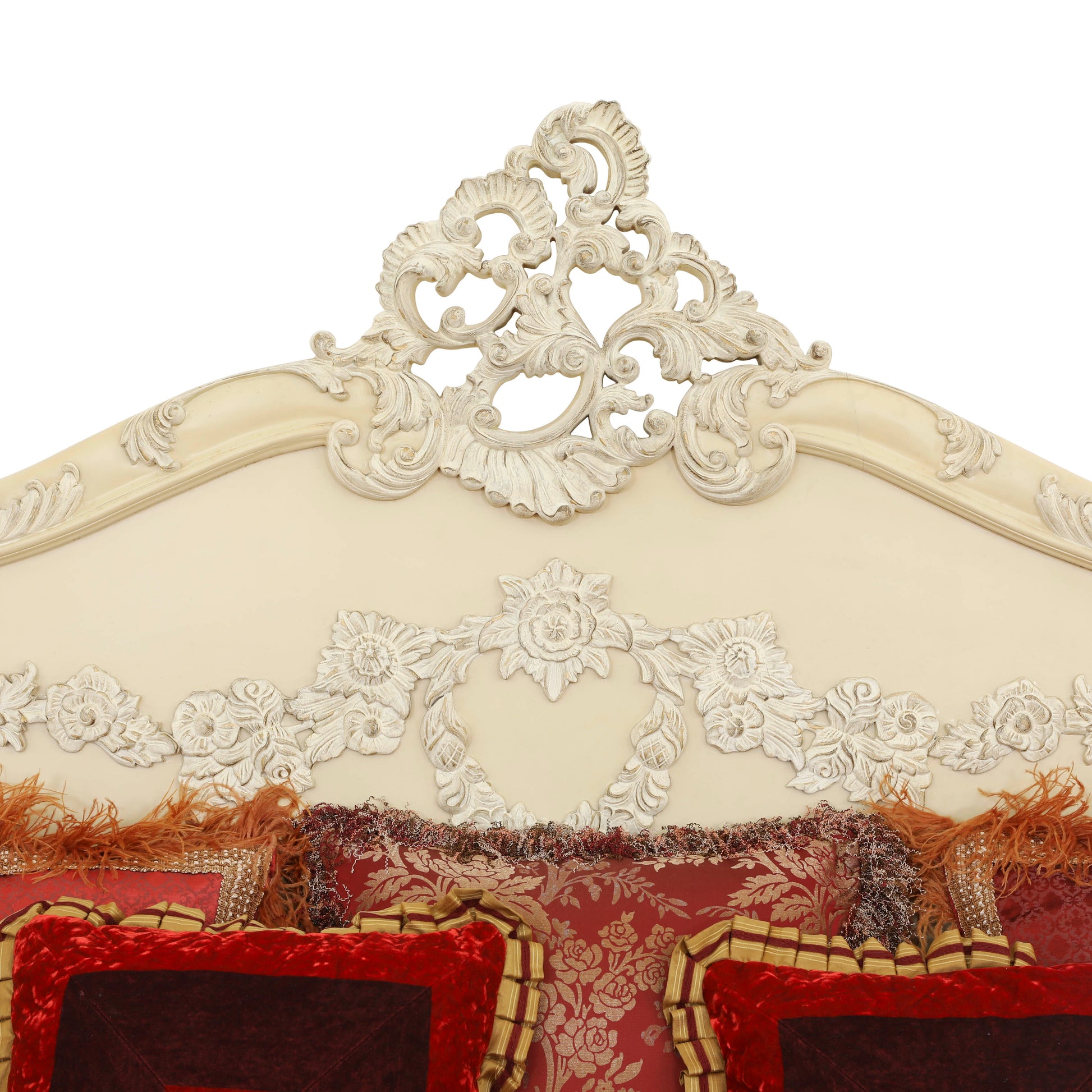 Emile King bed room. Made by mahogany wood. Hand carving. Antique white finish with distress on carvings.