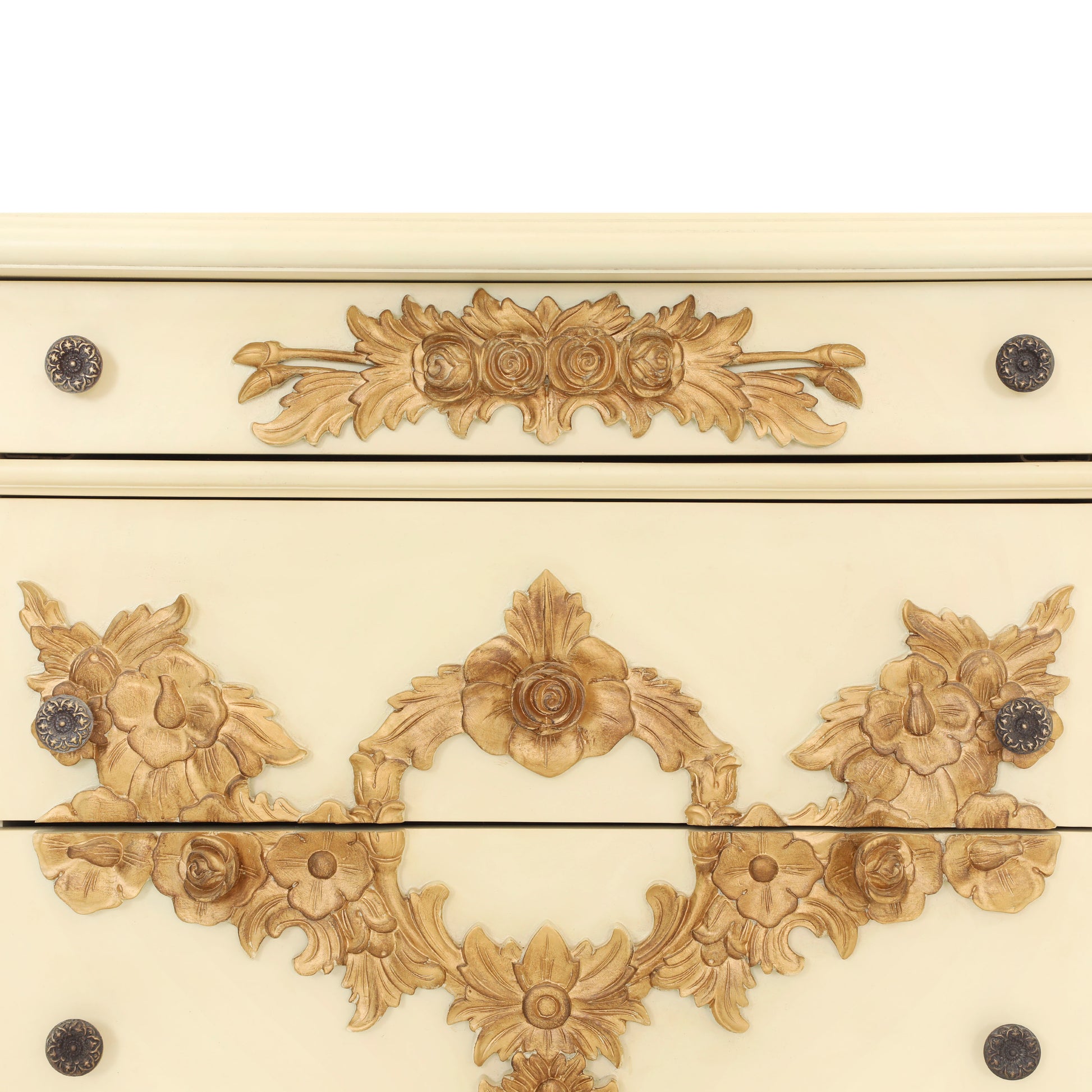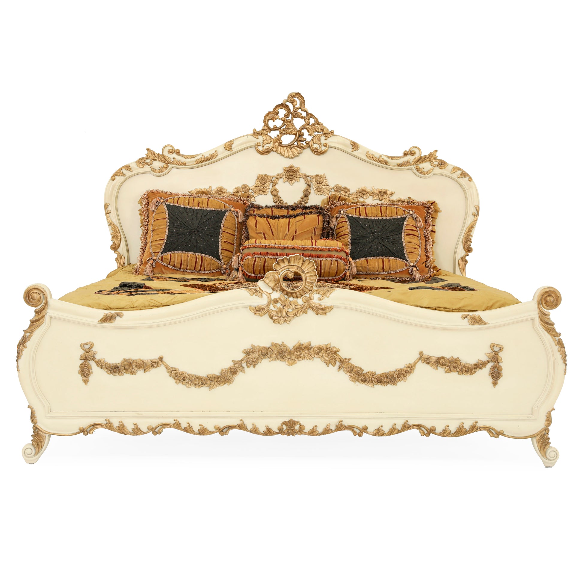 EMILE KING BED ROOM WITH ANTIQUE IVORY AND GOLD FINISH