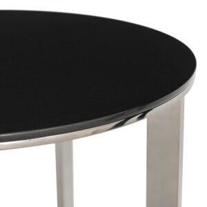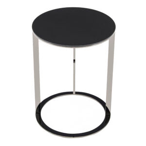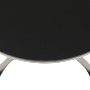 طاولة بلمسة نهائية صغيرة من بي آند بي فرانك 0178C مطلية بالكروم الأسود. إنها مصنوعة من الفولاذ المطلي، وهي ترافق أي أريكة، وتقدم ظلالاً مختلفة بألوان محايدة أو لامعة. يتيح الوضع غير المتماثل للعناصر الرأسية إمكانية رسم القاعدة بالقرب من المقاعد قدر الإمكانيشارك