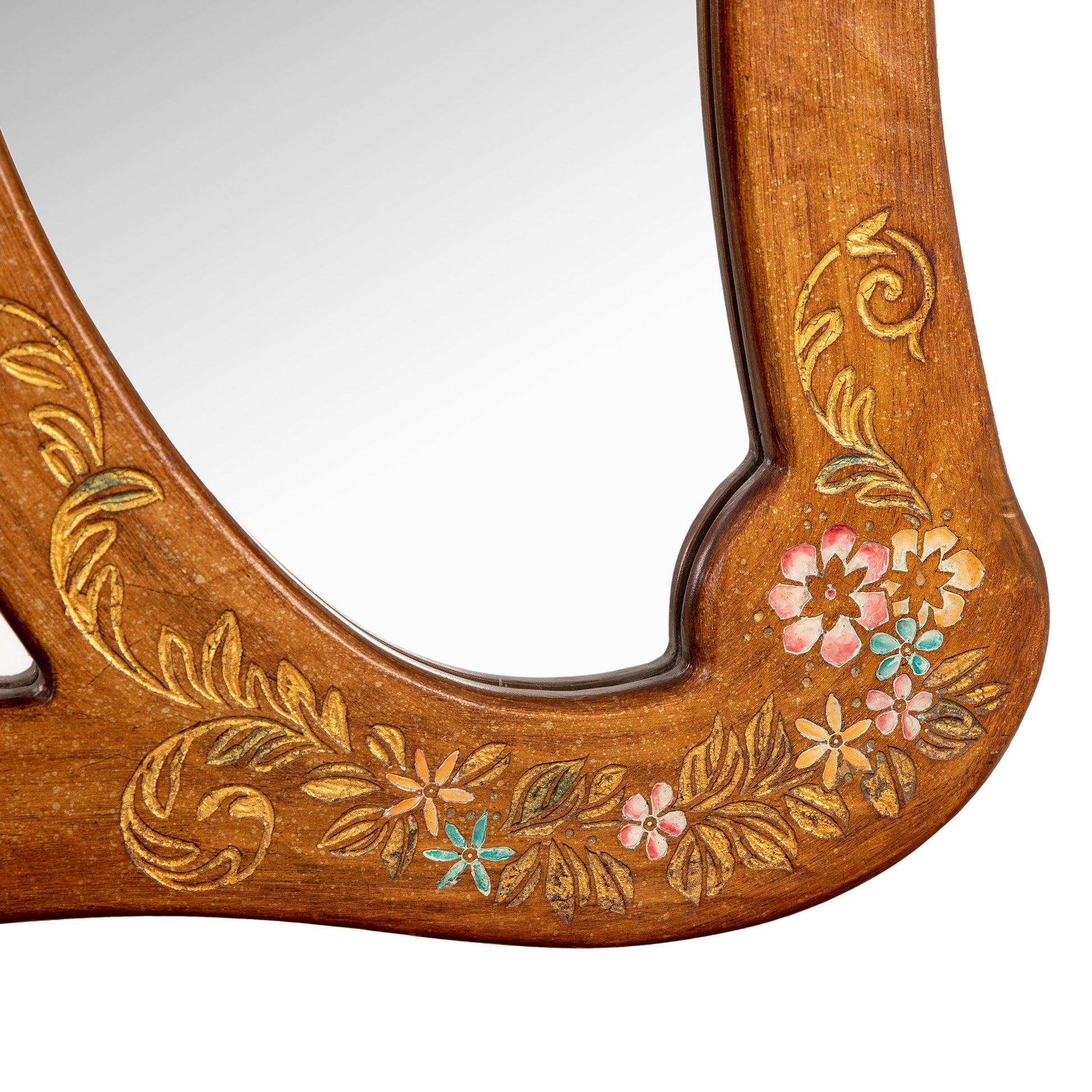 كرسي تزيين فاخر بتصميم كلاسيكي أنيق يجمع بين الحرفية العالية والتفاصيل الفنية الراقية. الكرسي الدائري مصنوع من الخشب الصلب بلون بني عتيق، ومُزين برسومات يدوية لأزهار إبرة الراعي الصغيرة بألوان زاهية، مما يضفي عليه لمسة فنية مميزة. يرتكز الكرسي على أربع أرجل منحوتة يدويًا، وسطحه مغطى بقماش مخملي ذهبي فاخر، مزين بحواف بارزة وأزرار خضراء مدمجة، مما يوفر راحة مثالية ويتناغم مع جمالية التصميم. يُعد هذا الكرسي جزءًا من طقم غرفة نوم متكامل يشمل لوحًا أماميًا أنيقًا، وطاولتين جانبيتين، وطاولة تزيين مع مرآة، ليُضفي تناغمًا مثاليًا ولمسة كلاسيكية فاخرة.