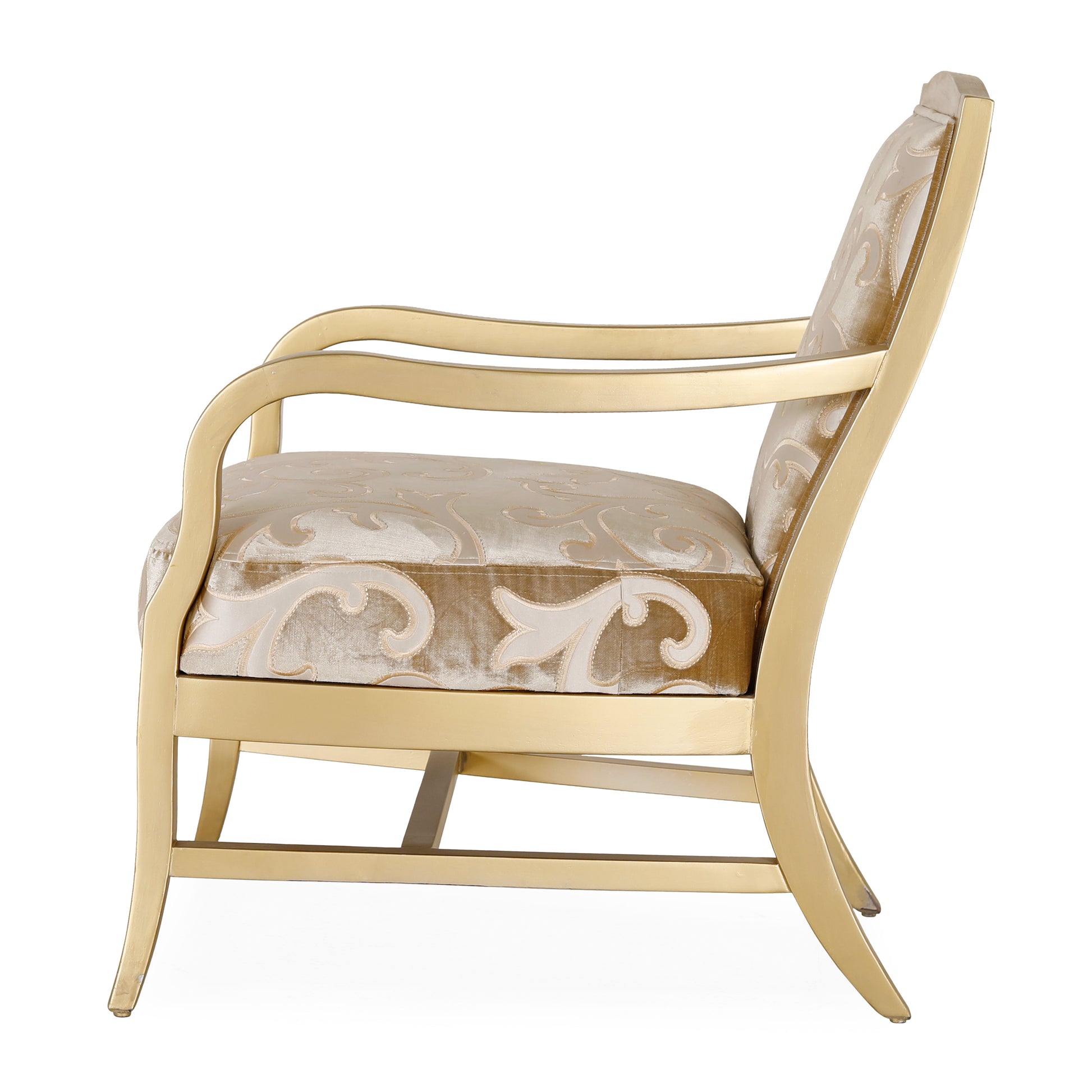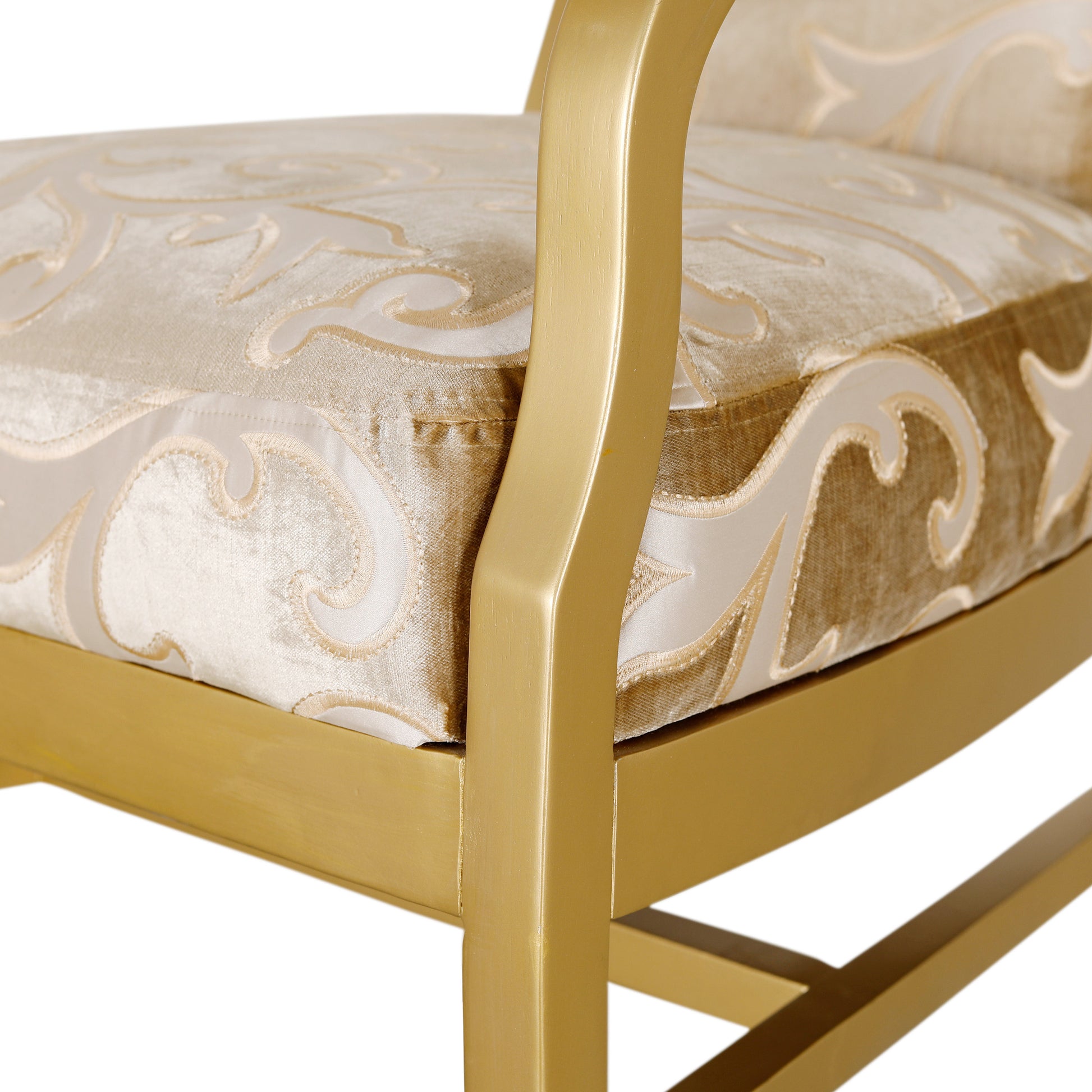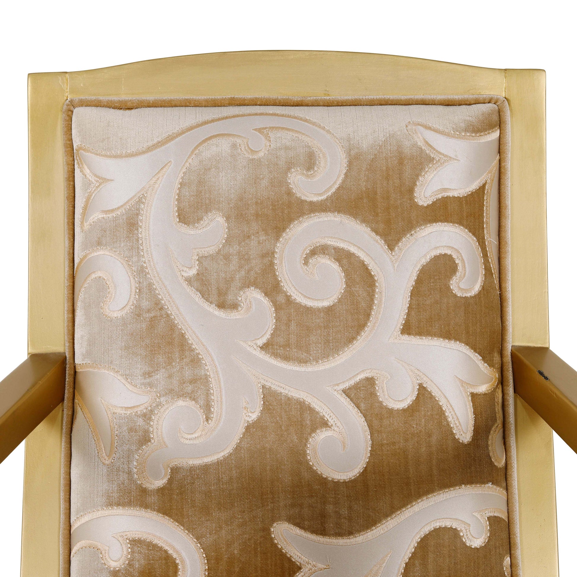 كرسي استرخاء خشبي فاخر بتصميم كلاسيكي أنيق يعكس ذوقًا رفيعًا وفخامةً راقية. مصنوع من خشب الماهوجني المتين، ومطلي بلون ذهبي أنيق يُبرز جمال خطوطه المنحنية ويمنحه مظهرًا ملكيًا. يتميز الكرسي بتنجيد فاخر من الساتان مزين بنقوش ناعمة من زخارف زهرية مخملية كبيرة، مما يضفي عليه لمسةً من الأناقة. يُعد هذا الكرسي قطعة مثالية لغرف المعيشة الراقية أو زوايا الجلوس المميزة.
