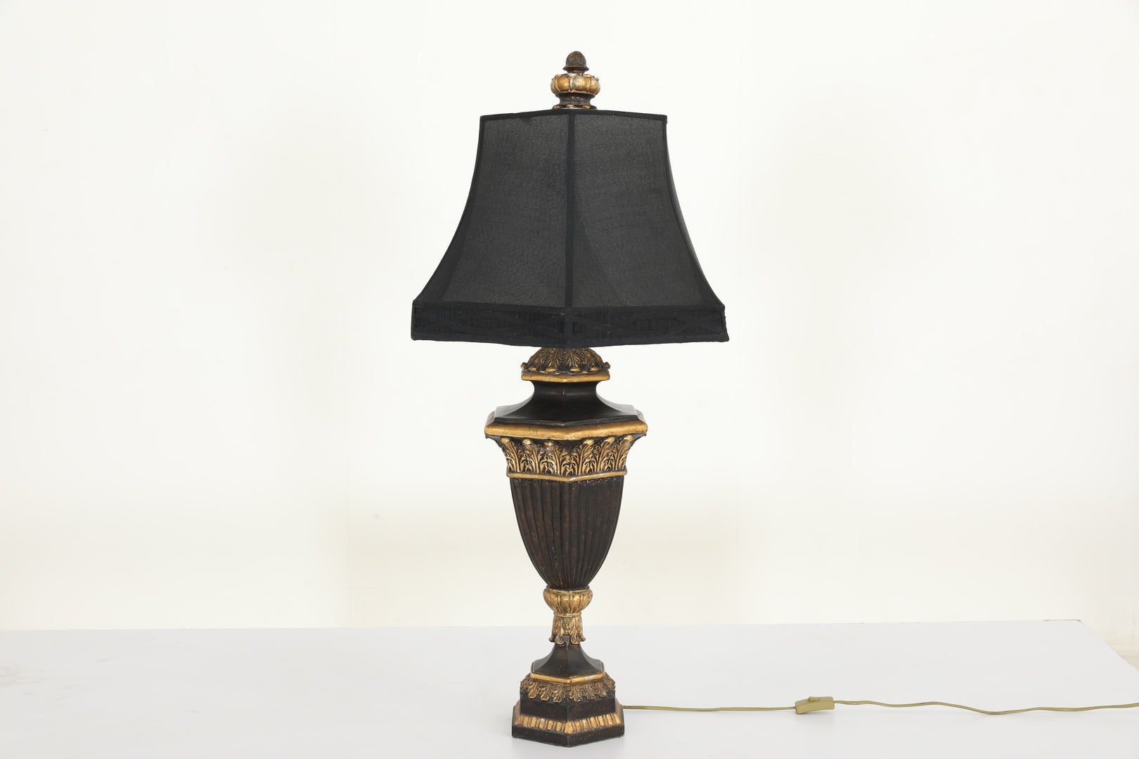 مصباح طاولة خشبي أنيق بتصميم مميز وأسلوب كلاسيكي فاخر. صُنع المصباح من خشب متين بلون بني داكن مع لمسات ذهبية تضفي عليه طابعًا راقيًا. يرتكز على قاعدة مزخرفة تُعزز جمالية التصميم، ويعلوه غطاء من الحرير الأسود الفاخر يوفر إضاءة ناعمة وأنيقة لخلق جو دافئ ومريح. تُعد هذه القطعة إضافة مميزة تناسب الطاولات الجانبية وغرف المعيشة والأماكن الراقية.