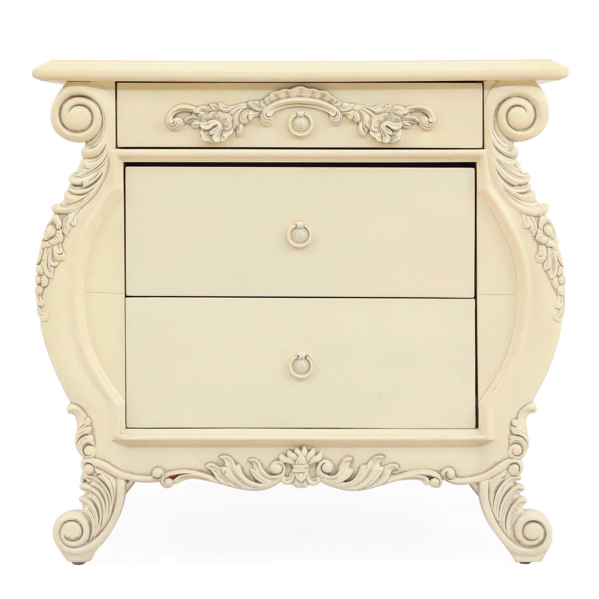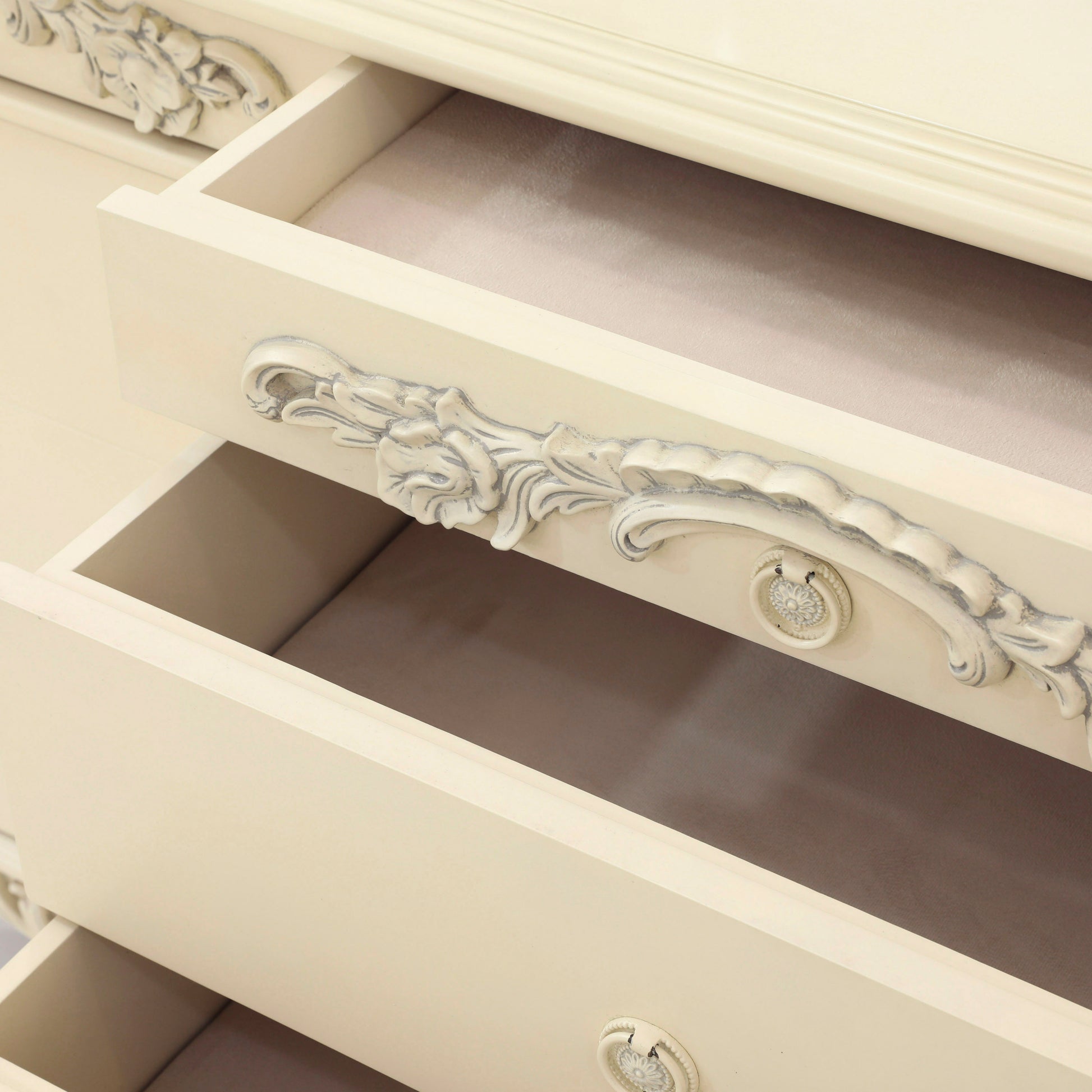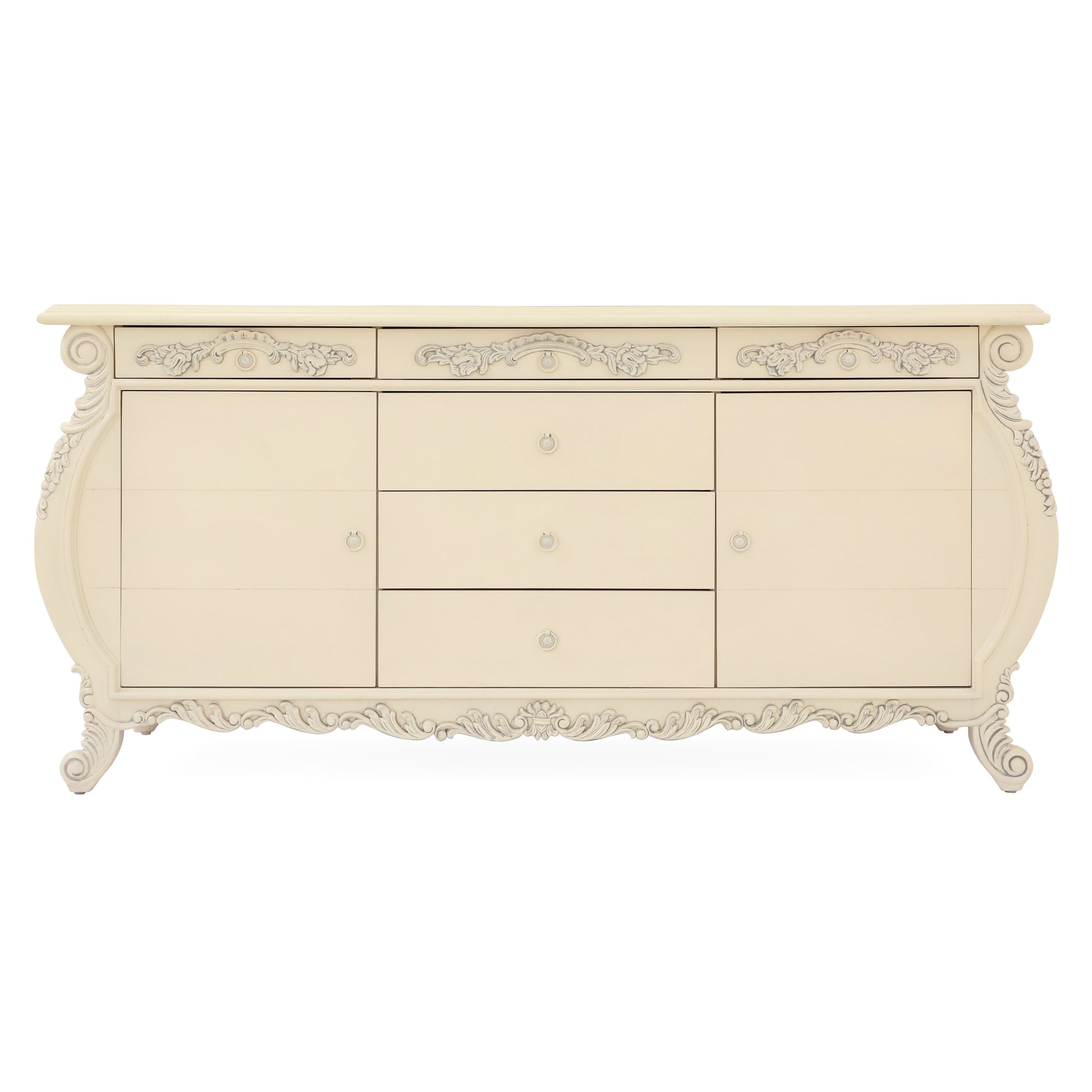 Emile King bed room. Made by mahogany wood. Hand carving. Antique white finish.