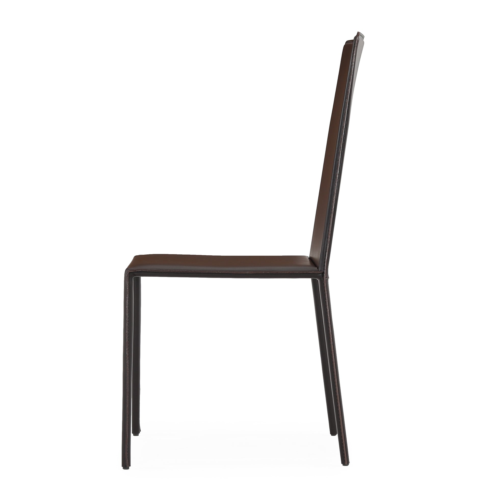 كرسي قابل للتكديس بإطار من الفولاذ وأرجل مبطنة. غلاف من البولي يوريثين مع مسند ظهر متوسط متوفر بتنجيد من القماش أو القماش المغلف أو الجلد أو مادة العميل. ارتفاع مسند الظهر 85 سم.