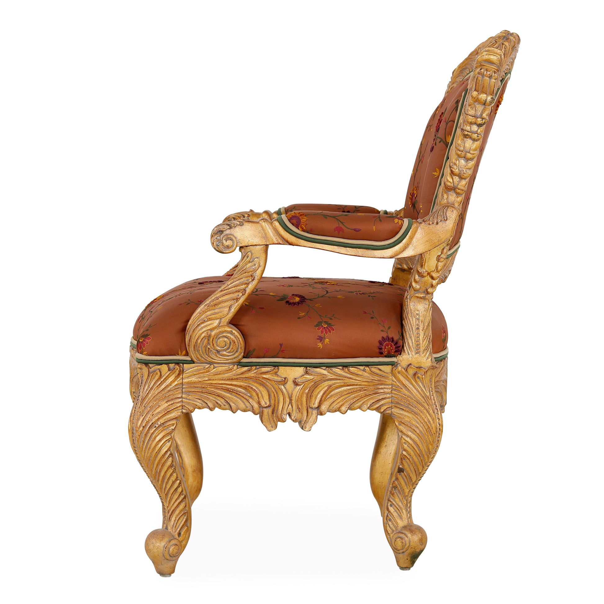 كرسي فاخر للمناسبات بتصميم كلاسيكي أنيق، مصنوع من خشب منحوت يدويًا يُبرز جمال التفاصيل والزخارف الراقية. يتميز بأرجل منحنية ولمسات فنية تضفي عليه طابعًا ملكيًا، مع تنجيد فاخر من قماش منقوش بألوان دافئة تُعزز الشعور بالدفء والفخامة. يُضفي هذا الكرسي الجانبي لمسة من الأناقة الكلاسيكية الراقية، وهو قطعة أثاث استثنائية تُناسب غرف المعيشة الفاخرة أو المداخل.