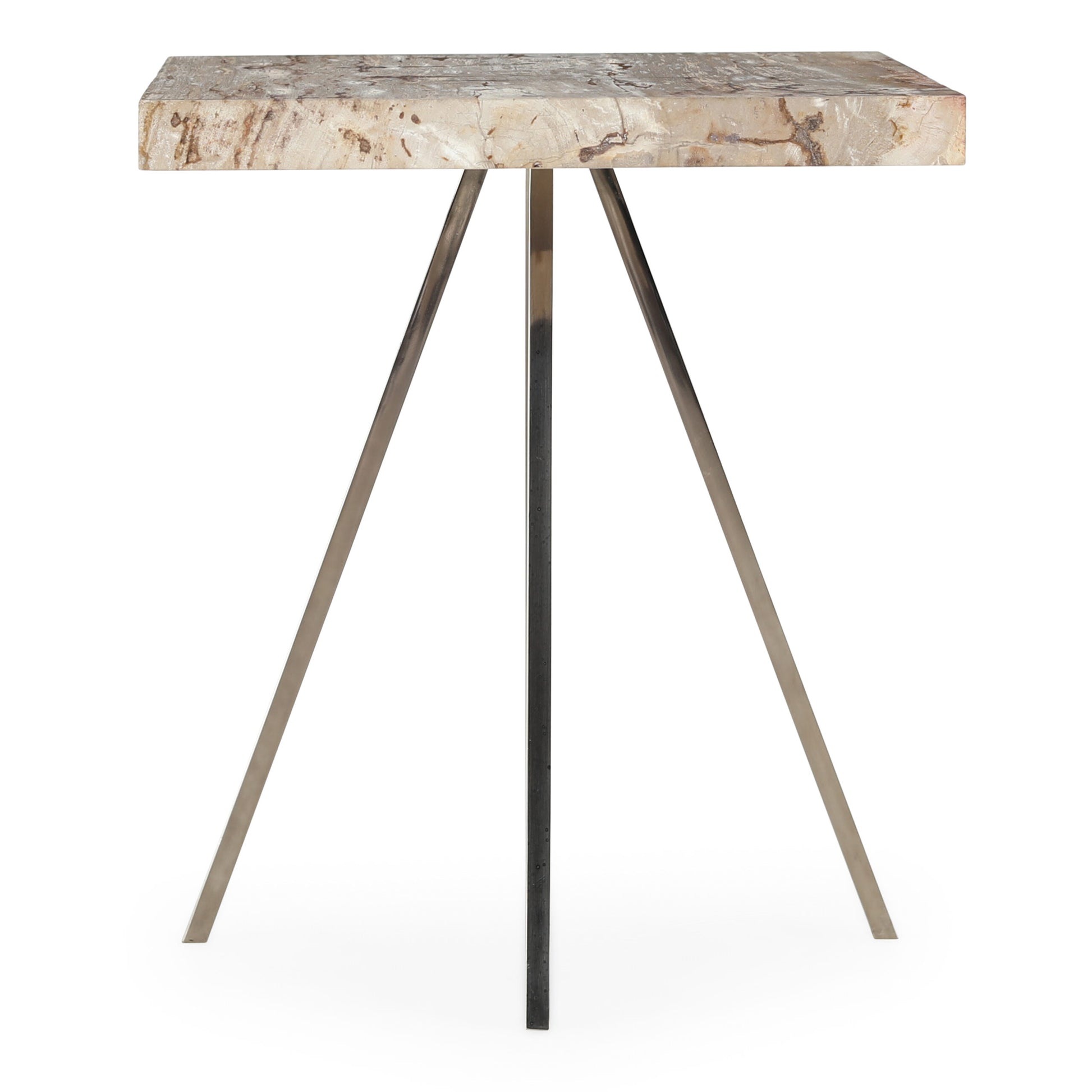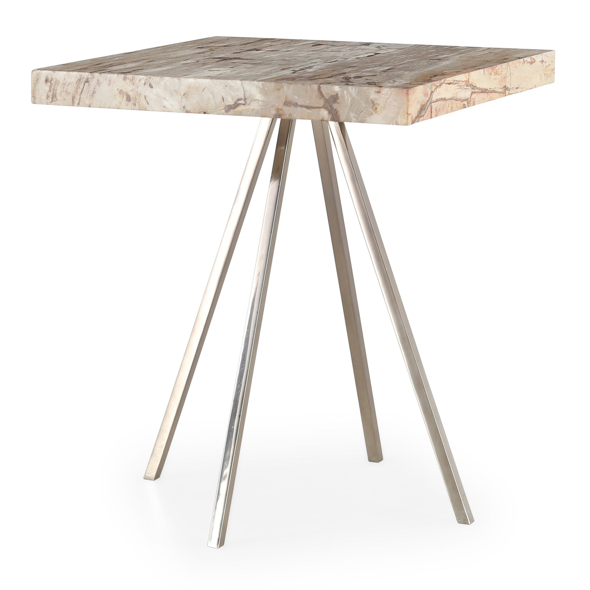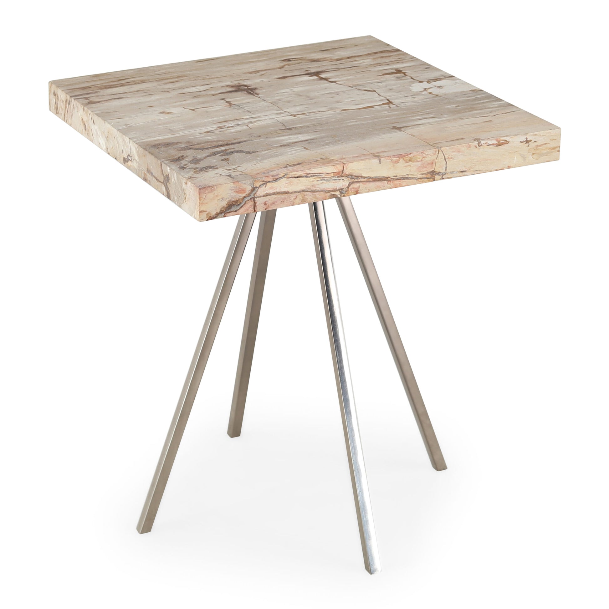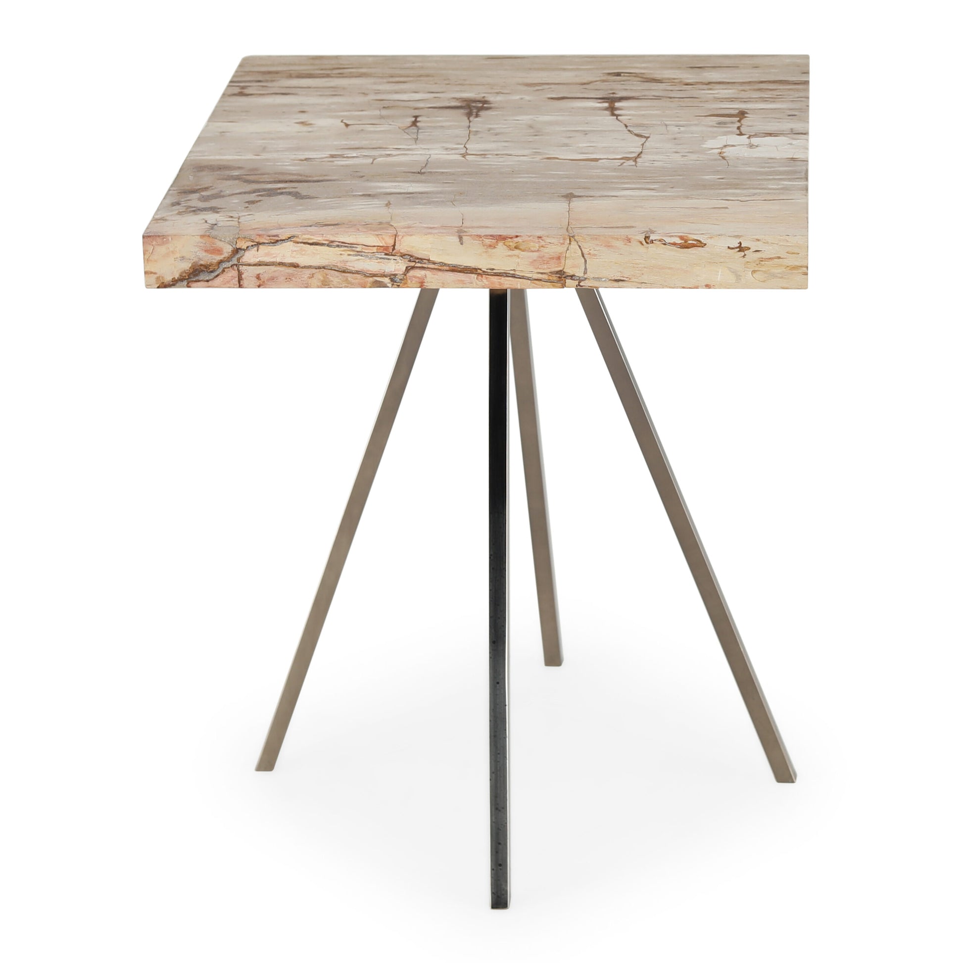 طاولة PIETRA SQUARE من الخشب المتحجر، قاعدة من الفولاذ الصلب، سطح متحجر طبيعي، قاعدة من النيكل الأسود؛ الأبعاد: 480 × 480 × 550 سم.