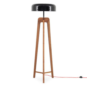 مصباح أرضي من خشب جوز الكاناليتا الصلب وغطاء مطلي بالقصدير.