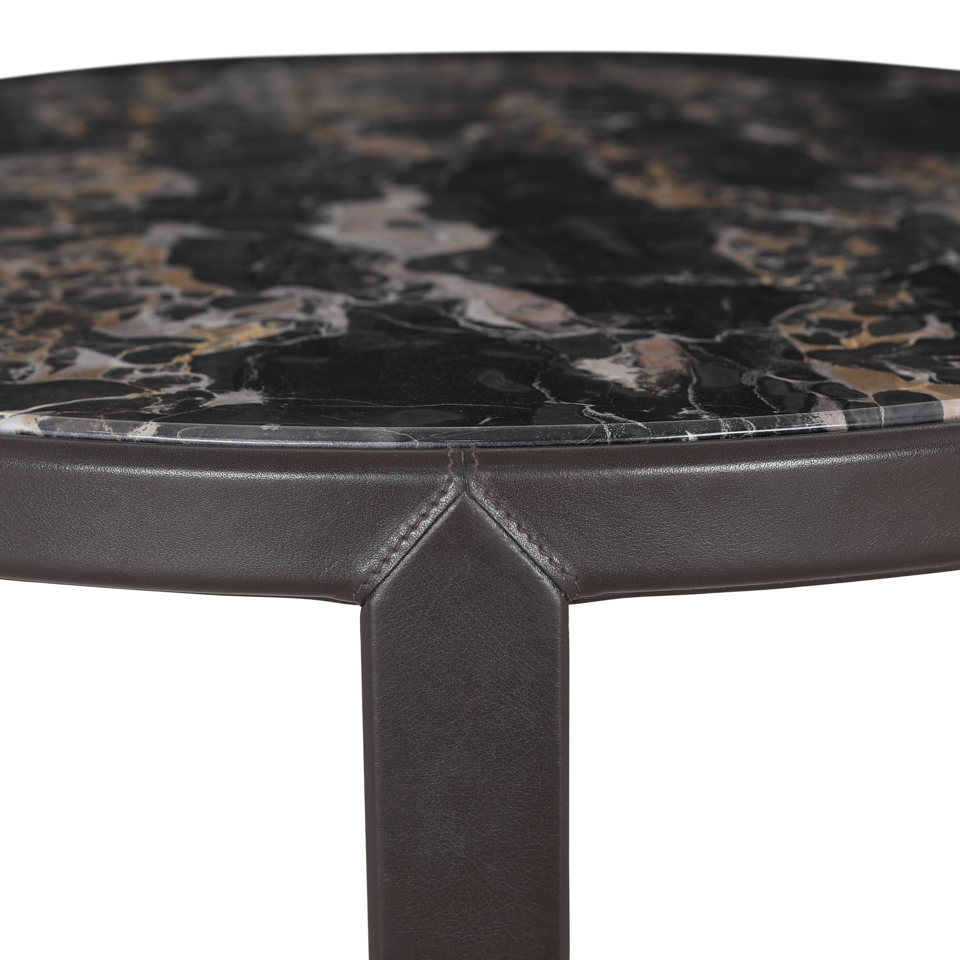 طاولة قهوة رايلي بقطر 70 - هيكل من رخام بورتورو. نقدم لكم رايلي، طاولة القهوة التي تنضح بالأناقة المعاصرة والرقي. هذه القطعة المذهلة هي جزء من مجموعة مينوتي وهي مصممة من قبل المصمم الشهير رودولفو دوردوني. بفضل تنجيدها الجلدي المصنوع يدويًا، تعد قاعدة الطاولة مثالاً للفخامة، وتذكرنا بالتقنيات الحرفية المستخدمة في صناعة الأمتعة. تأتي طاولة القهوة رايلي بمجموعة من الأحجام، مما يجعلها متعددة الاستخدامات ومثالية لأي مساحة معيشة. الأرجل المثلثة بقياس 45 × 45 × 45 ملم مصنوعة من المعدن ومغطاة بجلد بني داكن غني. الحافة العلوية للطاولة مصنوعة من معدن أنبوبي بيضاوي مقاس 30 × 10 مم، مما يضيف لمسة من الأناقة إلى التصميم. تنساب الطاولة المصنوعة من النايلون لتحافظ على ثباتها وأمانها على أي سطح. يتوفر سطح الطاولة بثلاثة ألوان من الطلاء اللامع - الجرانيت والصدأ والرمل - أو من رخام بورتورو بسمك 20 مم. يبلغ سمك مادة MDF المستخدمة لسطح الطاولة 25 مم، مما يزيد من متانة وقوة المنتج. تعتبر طاولة القهوة رايلي إضافة مثالية لأي تصميم داخلي حديث ومتطور. تصميمها المعاصر وحرفيتها عالية الجودة يجعلها قطعة مميزة في أي غرفة. سواء كنت تستخدمها لتقديم المشروبات أو عرض كتب طاولة القهوة المفضلة لديك، فمن المؤكد أن طاولة رايلي ستثير إعجابك. إذا كنت تبحث عن طاولة قهوة تجمع بين الأناقة والعملية، فاطلب سعر رايلي اليوم. إنه استثمار جميل سيضيف قيمة إلى منزلك ويخلق مساحة معيشة راقية وراقية.