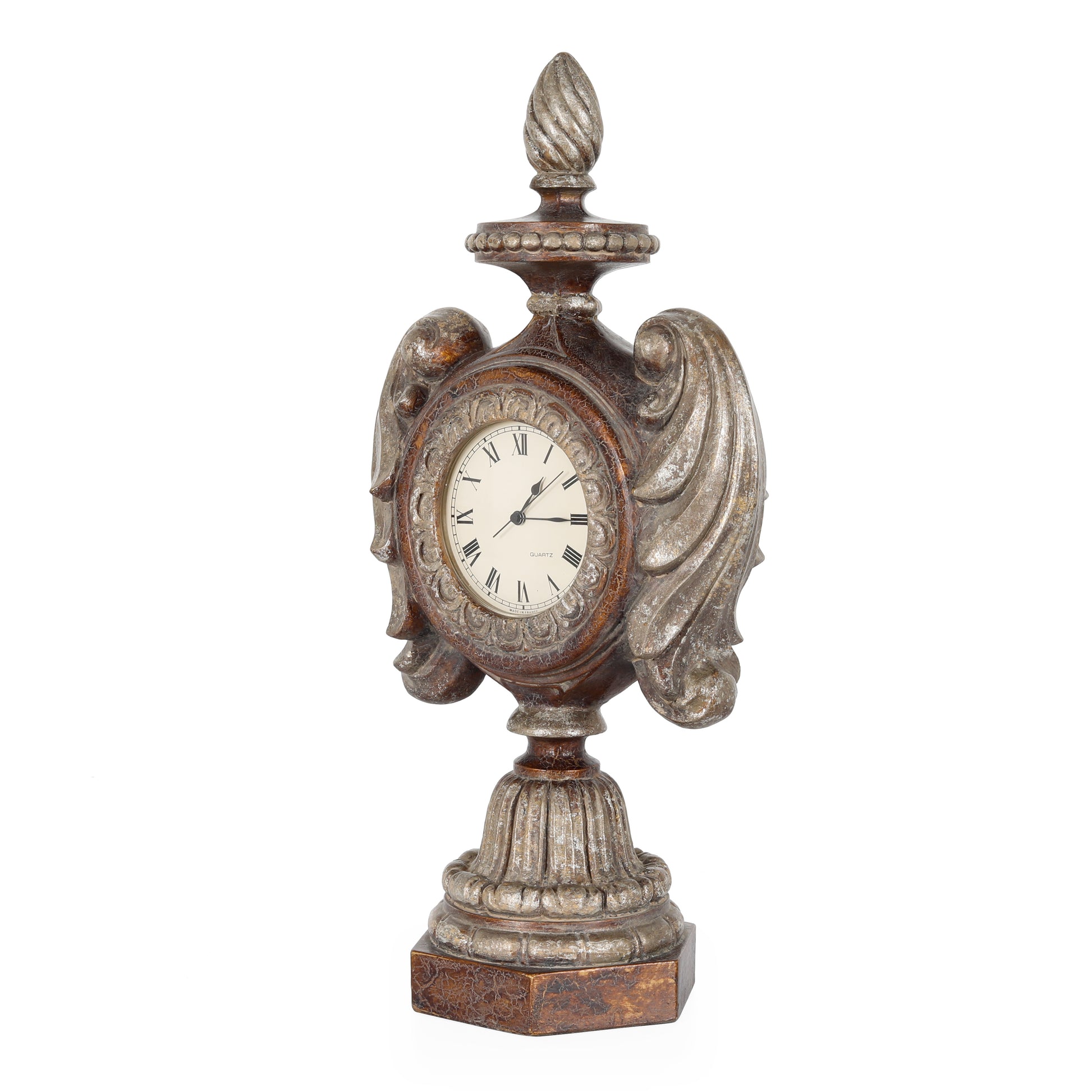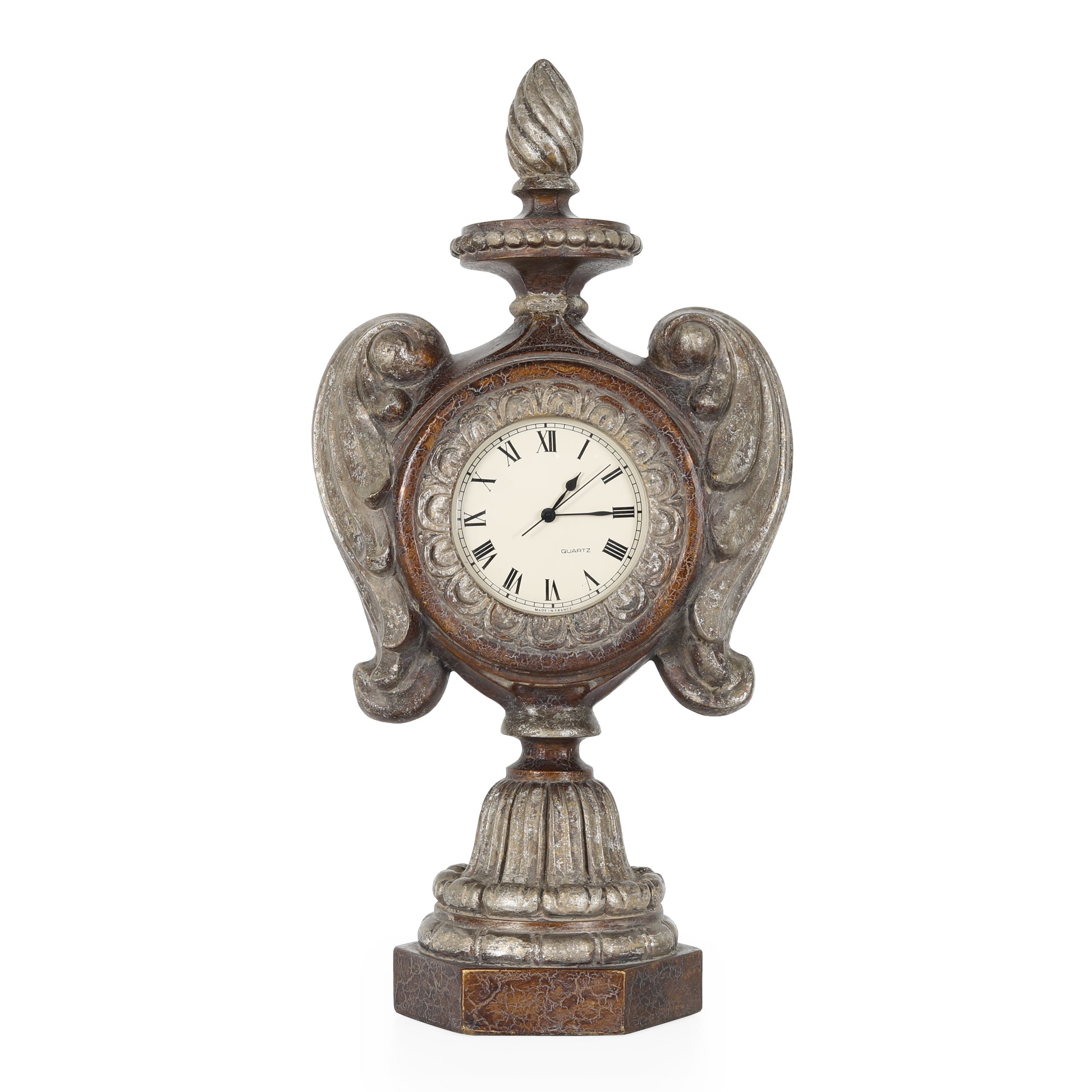 ساعة طاولة خشبية عتيقة على شكل مزهرية. تشطيب خاص