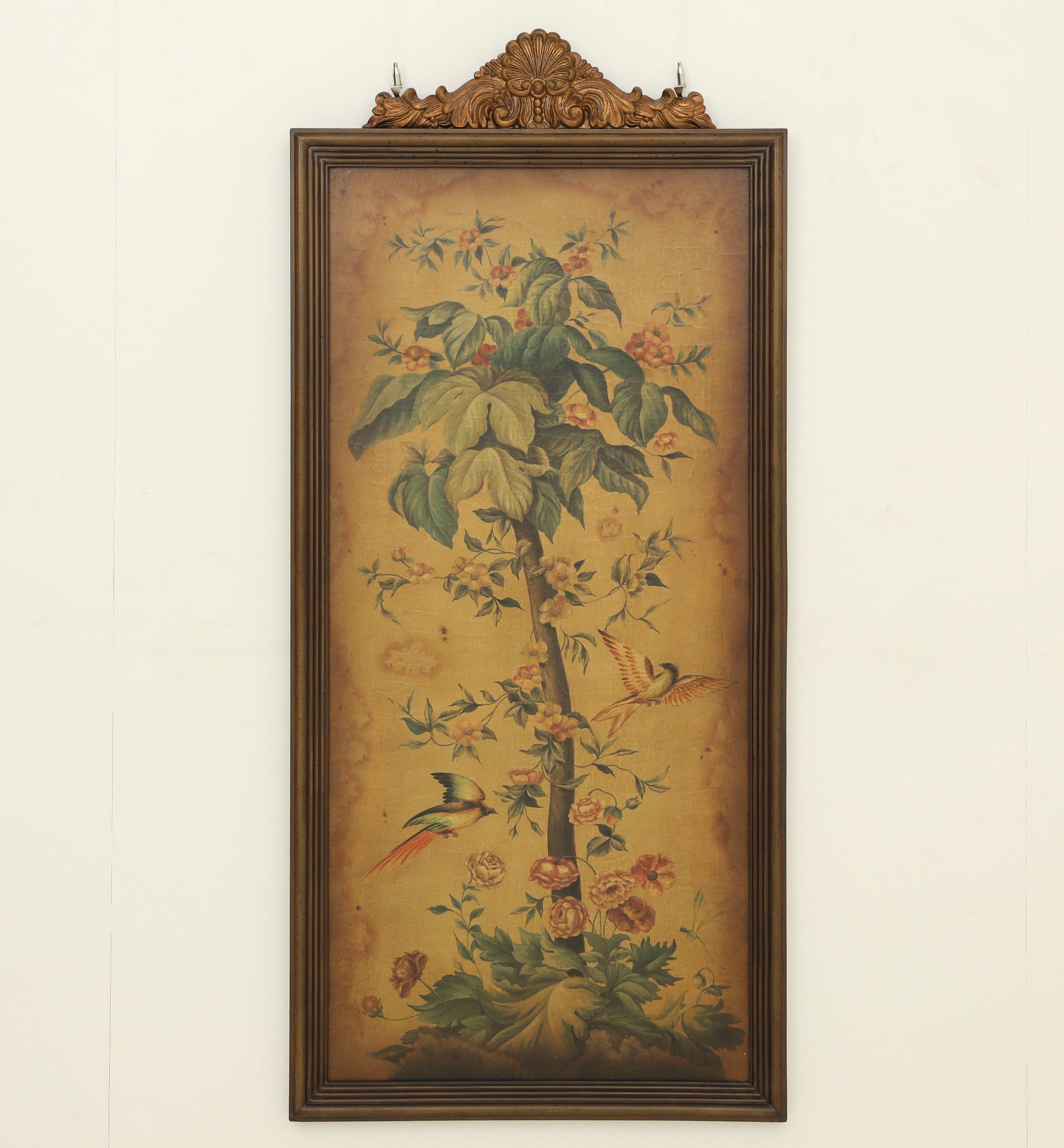 لوحة جدارية خشبية فاخرة برسومات يدوية رائعة تعكس ذوقًا رفيعًا. تتميز بإطار خشبي بني داكن يُبرز جمالها، ويعلوه تاج منحوت ومذهب يضفي عليها طابعًا ملكيًا أنيقًا. تجسد اللوحة صورة شجرة غنية بالتفاصيل والألوان الهادئة، مما يمنحها لمسة كلاسيكية راقية. تُعد هذه اللوحة قطعة فنية مميزة تُضفي فخامة على الديكور.
