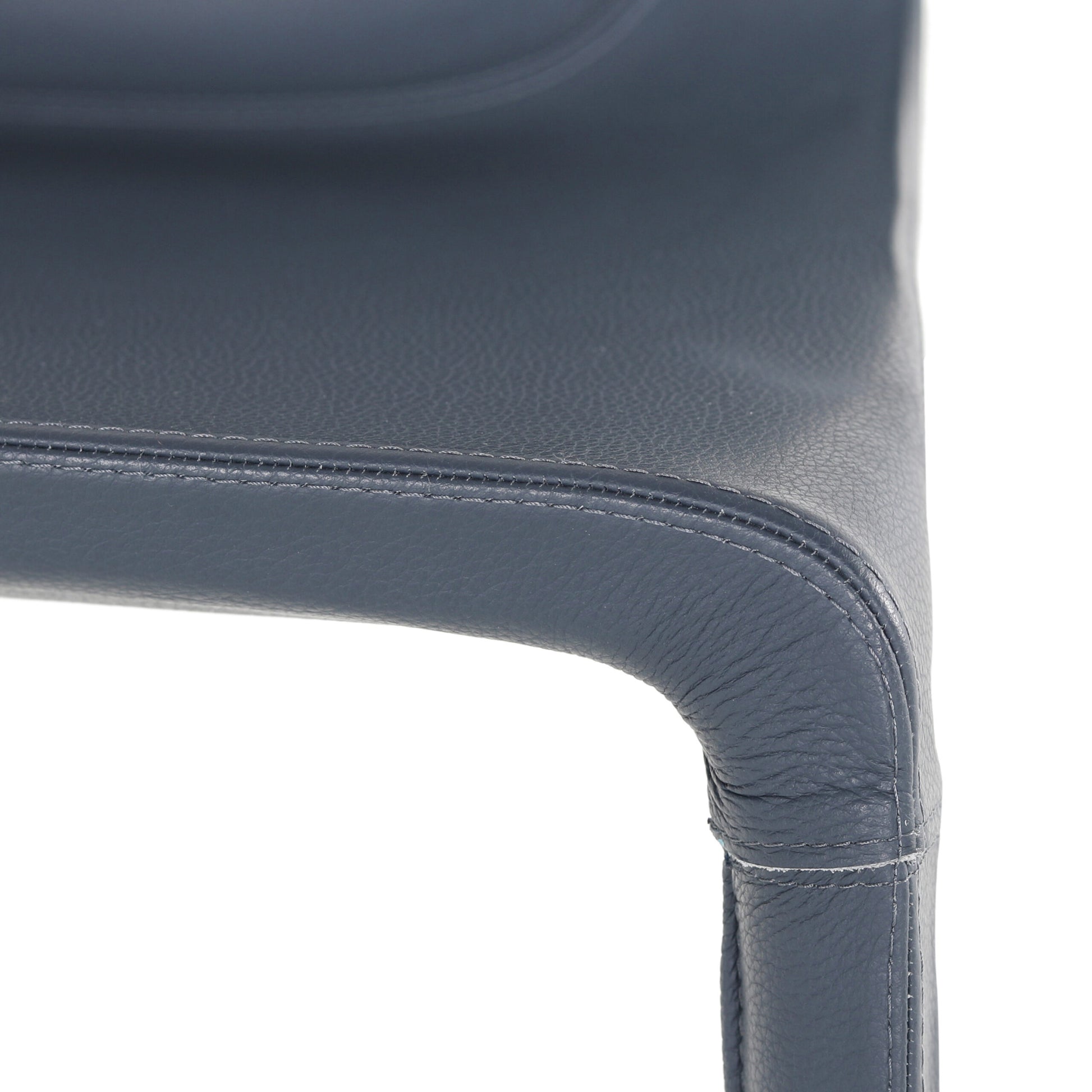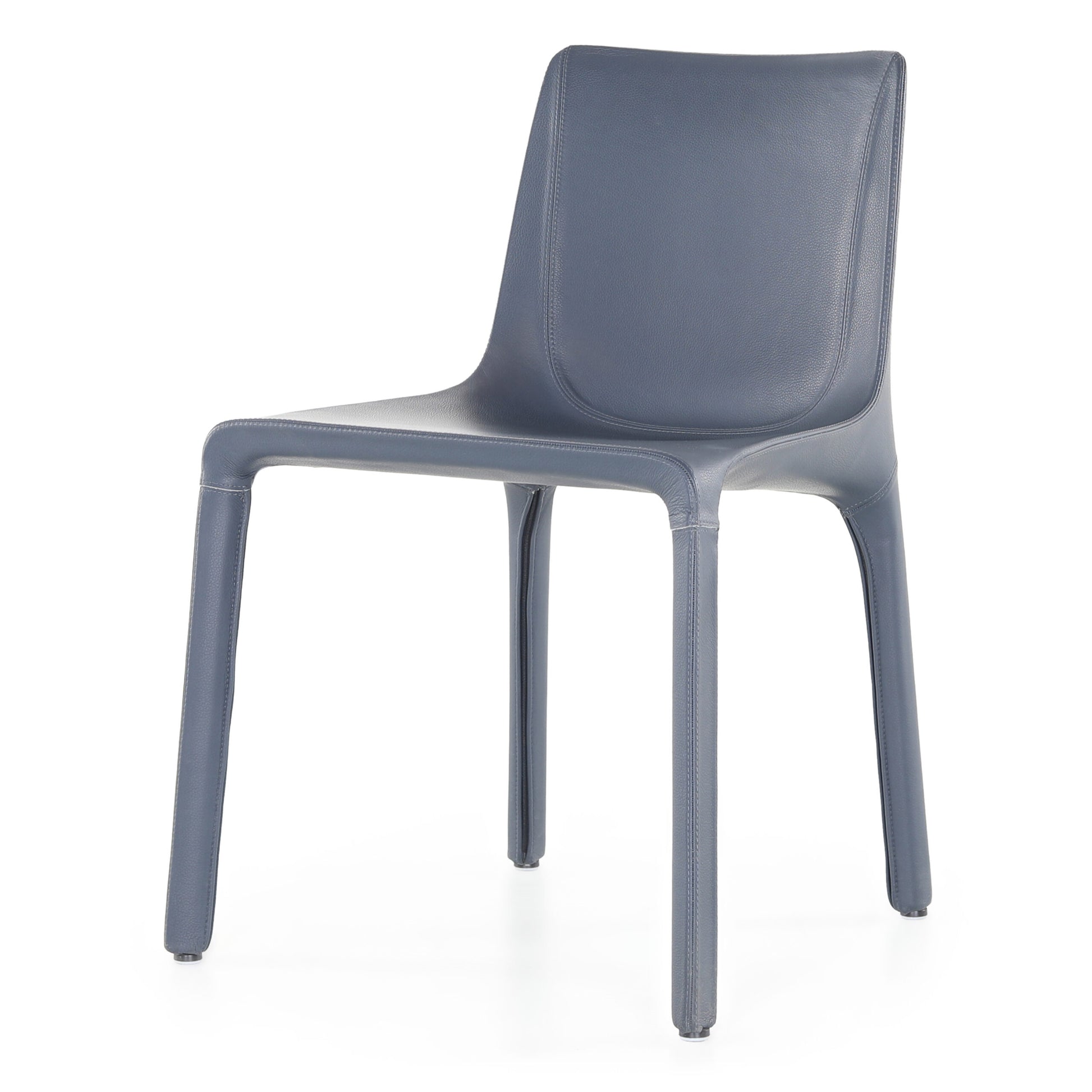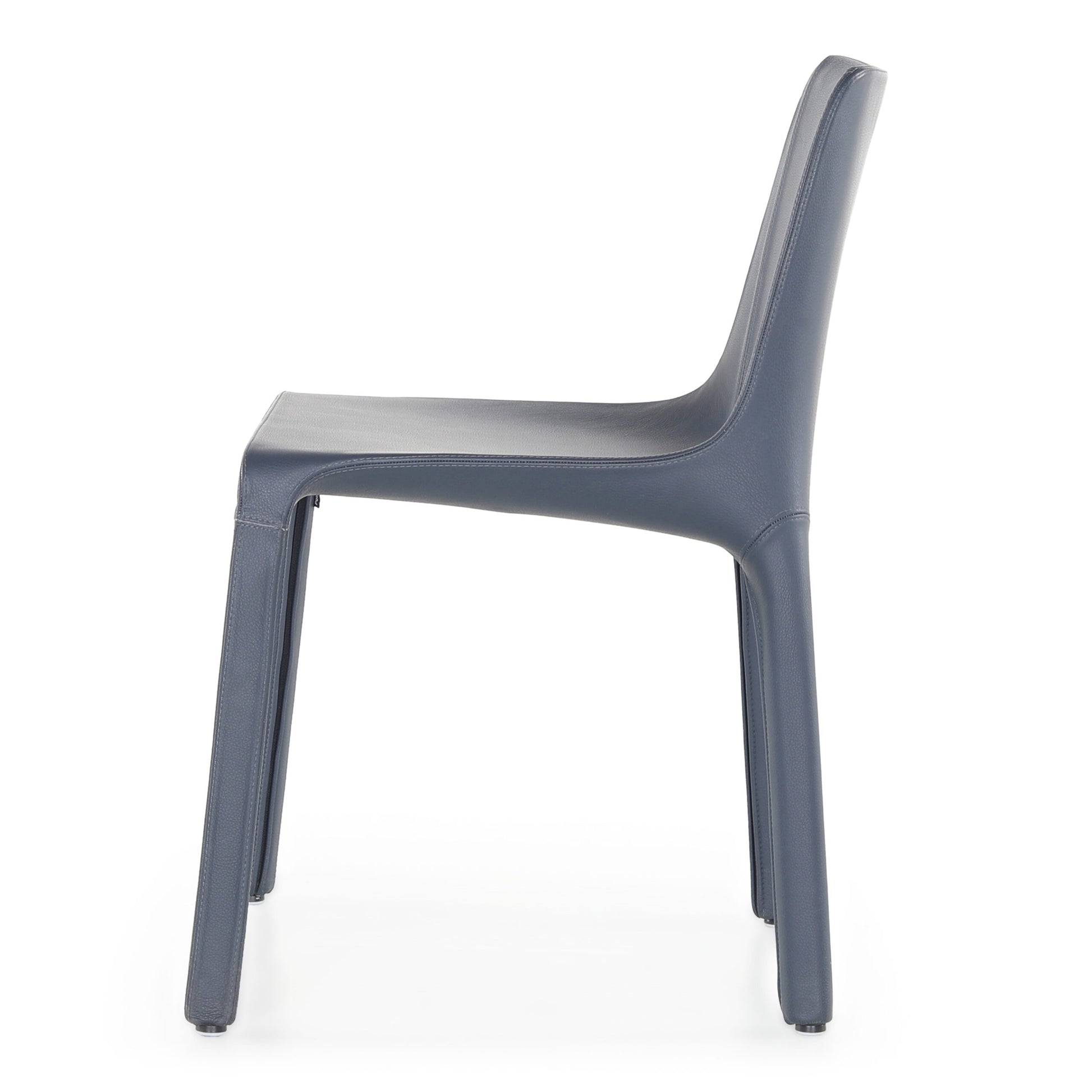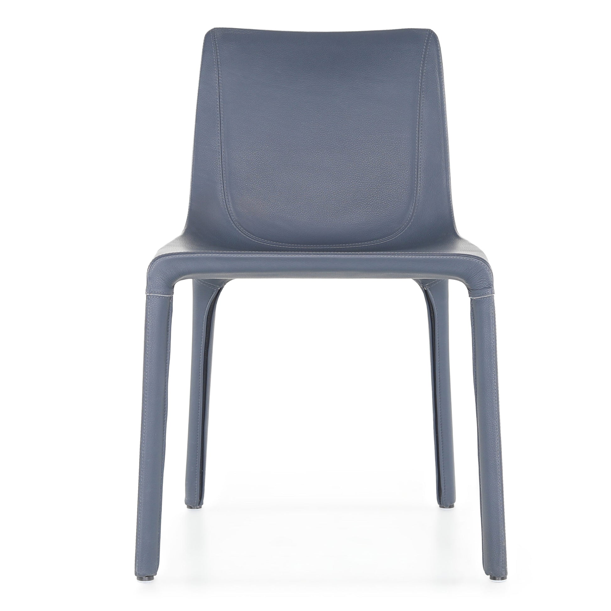 CHAIR MANTA S42P,FABRIC COVER FIN.:PELLE 62 BLU. Essential lines distinguish the inviting and comfortable Manta chair. It is available in two versions, with or without armrests. Completely padded and upholstered in leather, Manta is perfect for complementing imposing tables. However, thanks to its characterful presence, it can also be used on its own as a desk chair.