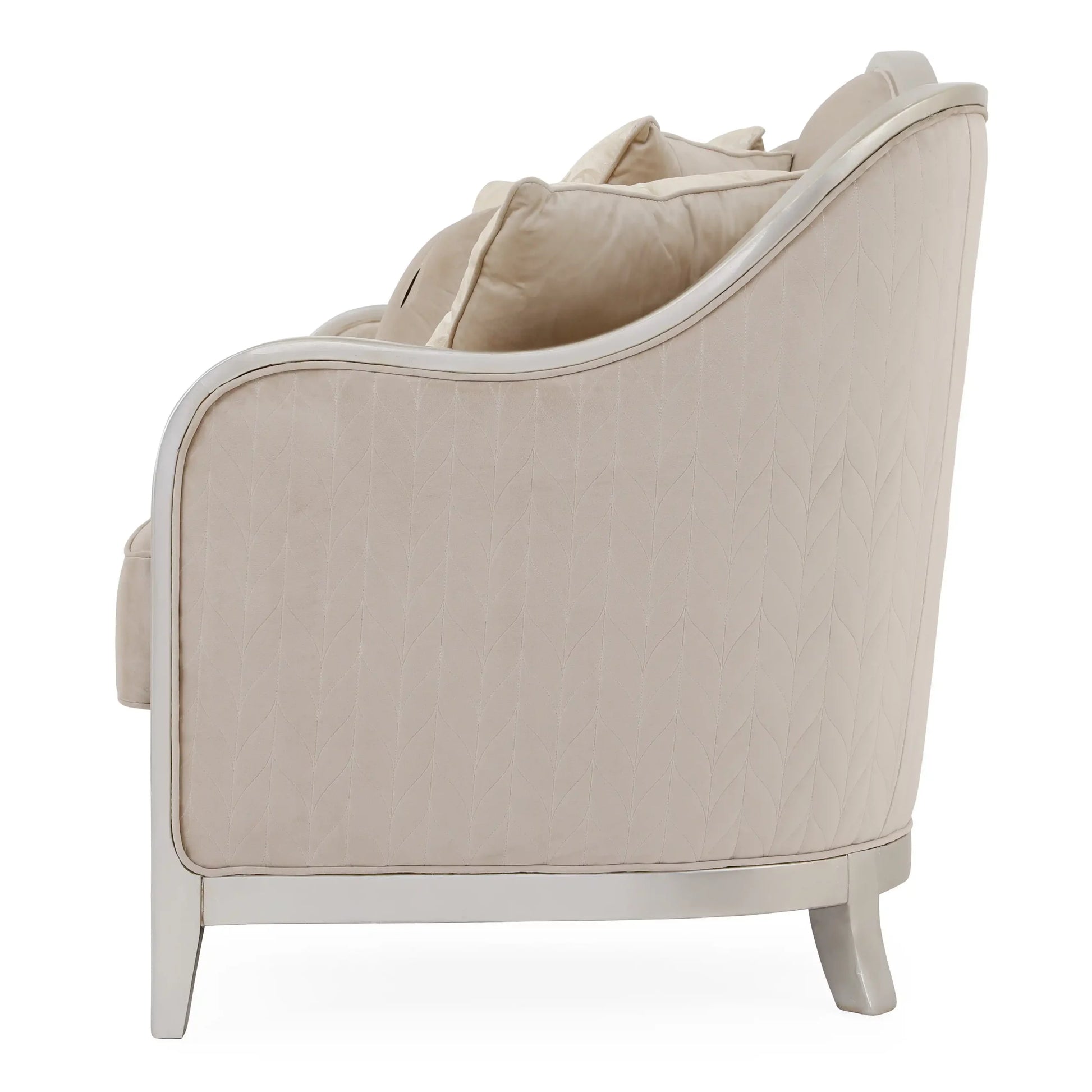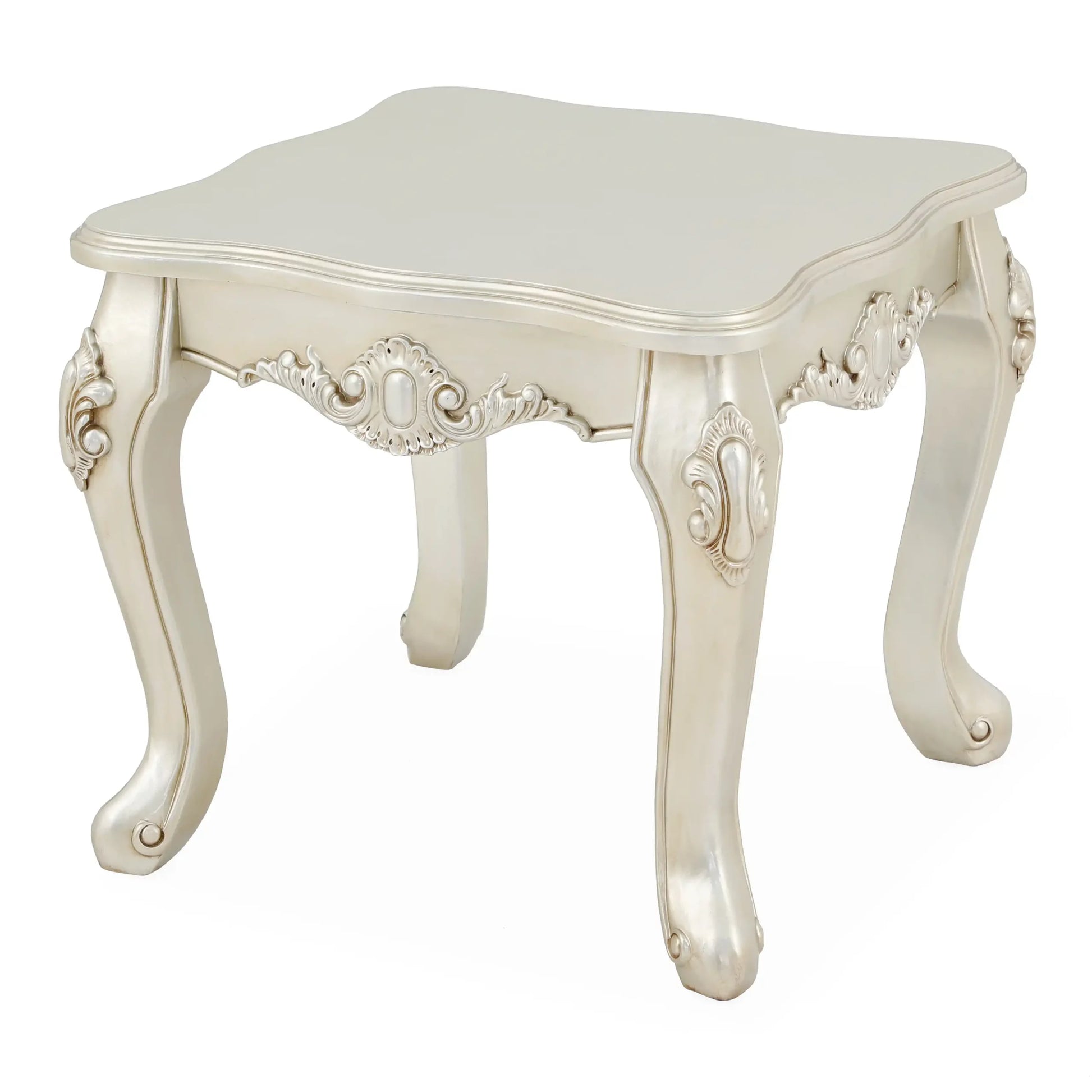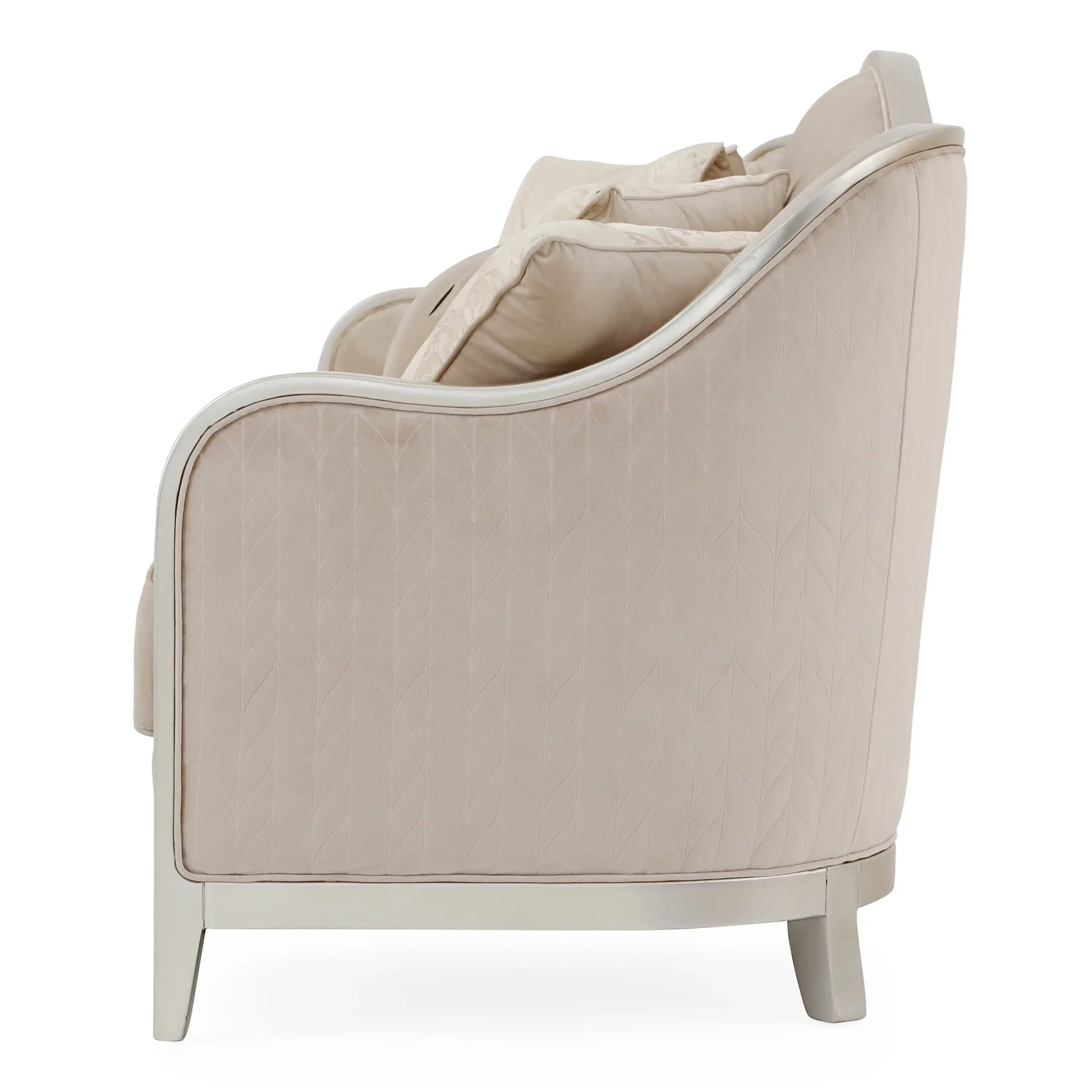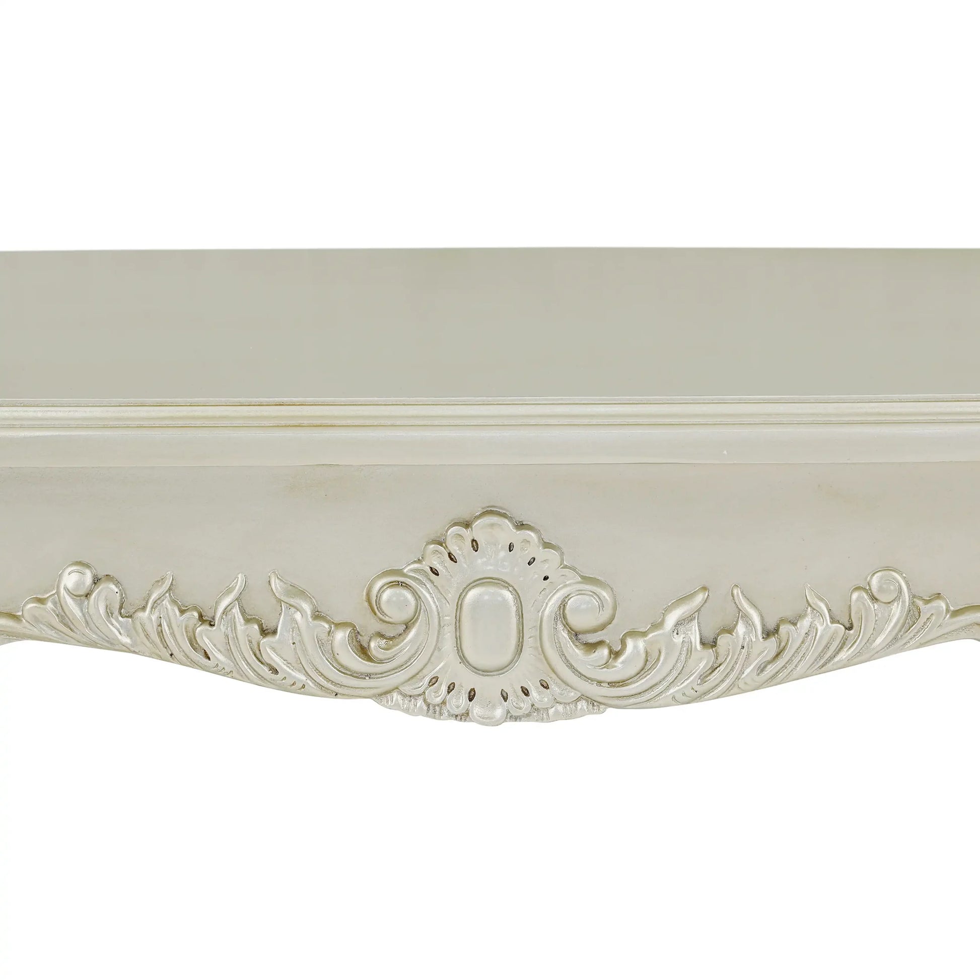 This Cleopatra Wood Sofa Set is masterpiece that can perfectly fit in the living room of every house and hotel. All the pieces of Cleopatra collection entirely handmade by master craftsmen and are characterized by the use of high quality wood solid materials and the meticulous care of all the slightest details and 100% hand carved also handcrafted.Set includes a wooden sofa, a loveseat and two lounge chairs with silver leaf finish. Satin upholstery. Quilted satin on exterior areas. A carved wooden coffee table and two side tables with silver leaf finish also included in this master set.