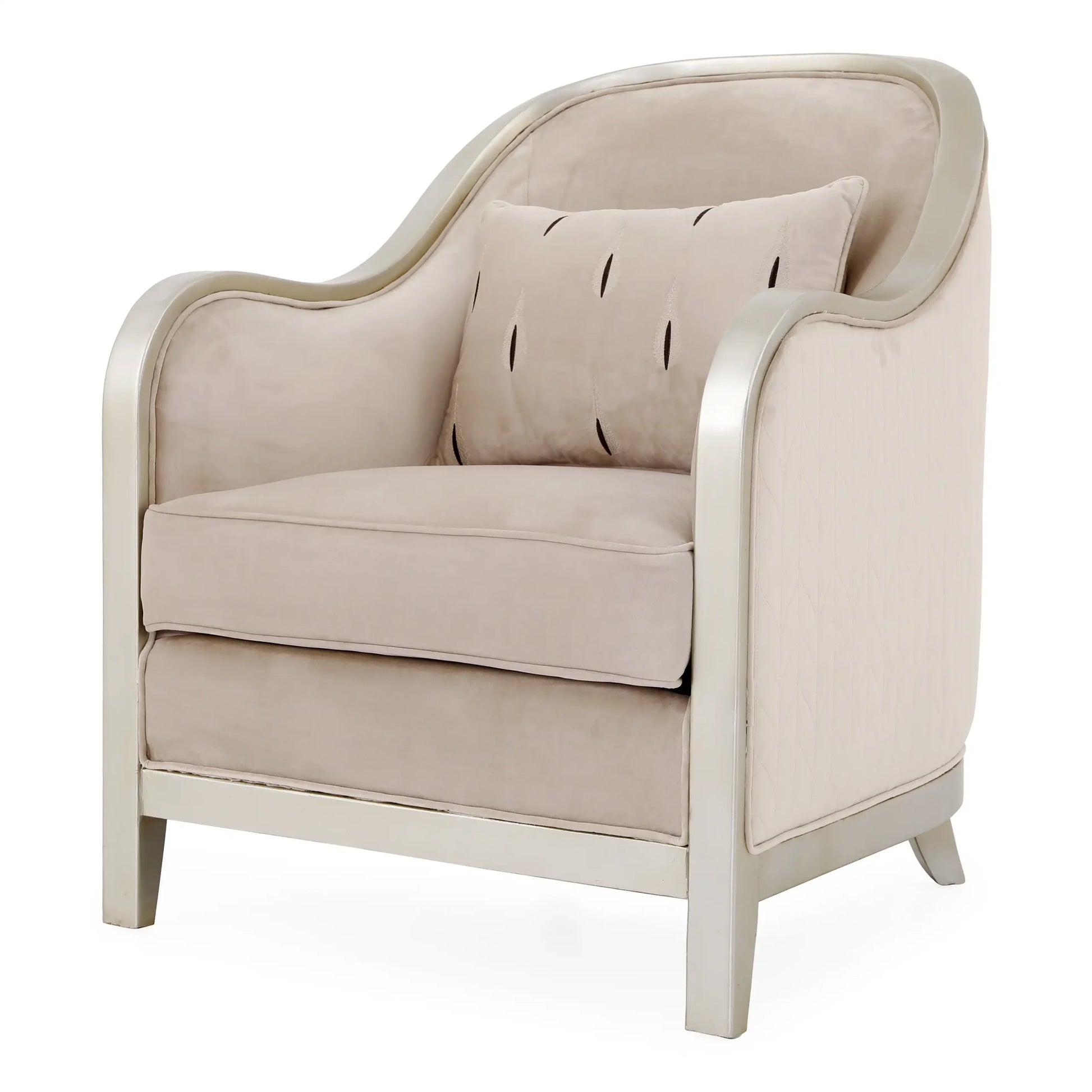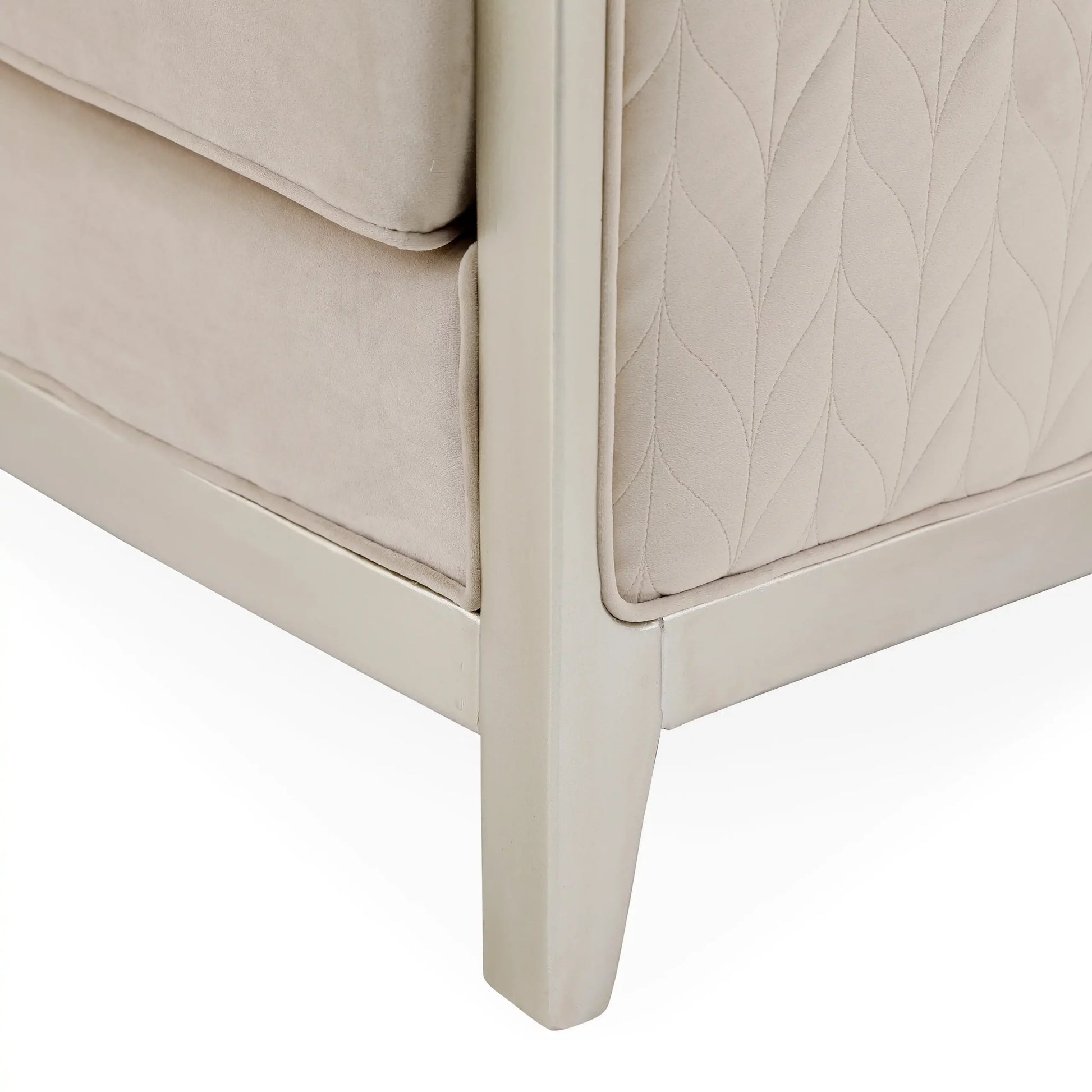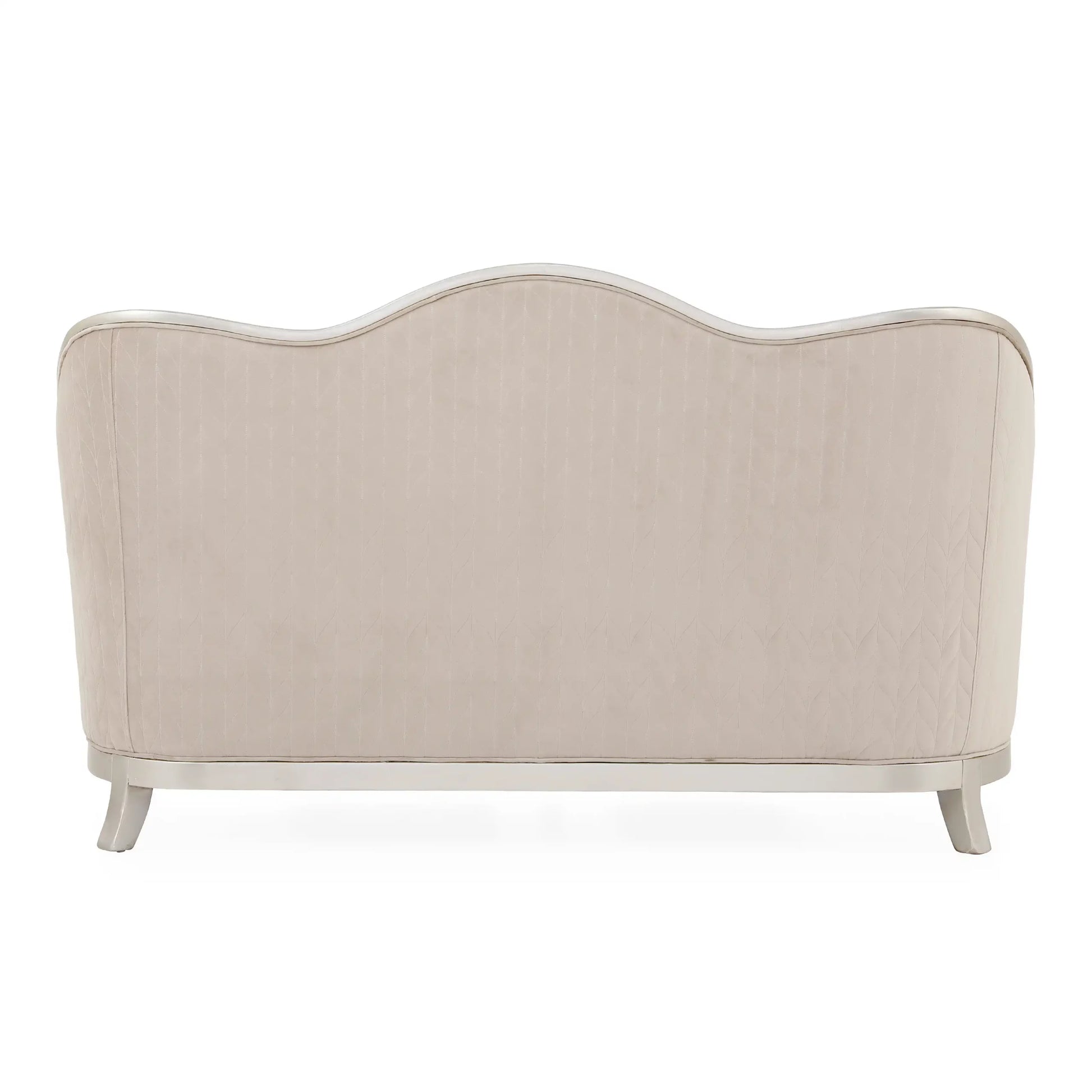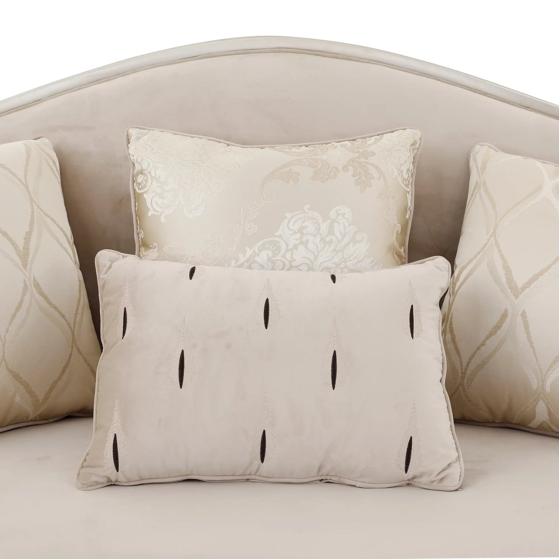 This Cleopatra Wood Sofa Set is masterpiece that can perfectly fit in the living room of every house and hotel. All the pieces of Cleopatra collection entirely handmade by master craftsmen and are characterized by the use of high quality wood solid materials and the meticulous care of all the slightest details and 100% hand carved also handcrafted.Set includes a wooden sofa, a loveseat and two lounge chairs with silver leaf finish. Satin upholstery. Quilted satin on exterior areas. A carved wooden coffee table and two side tables with silver leaf finish also included in this master set.