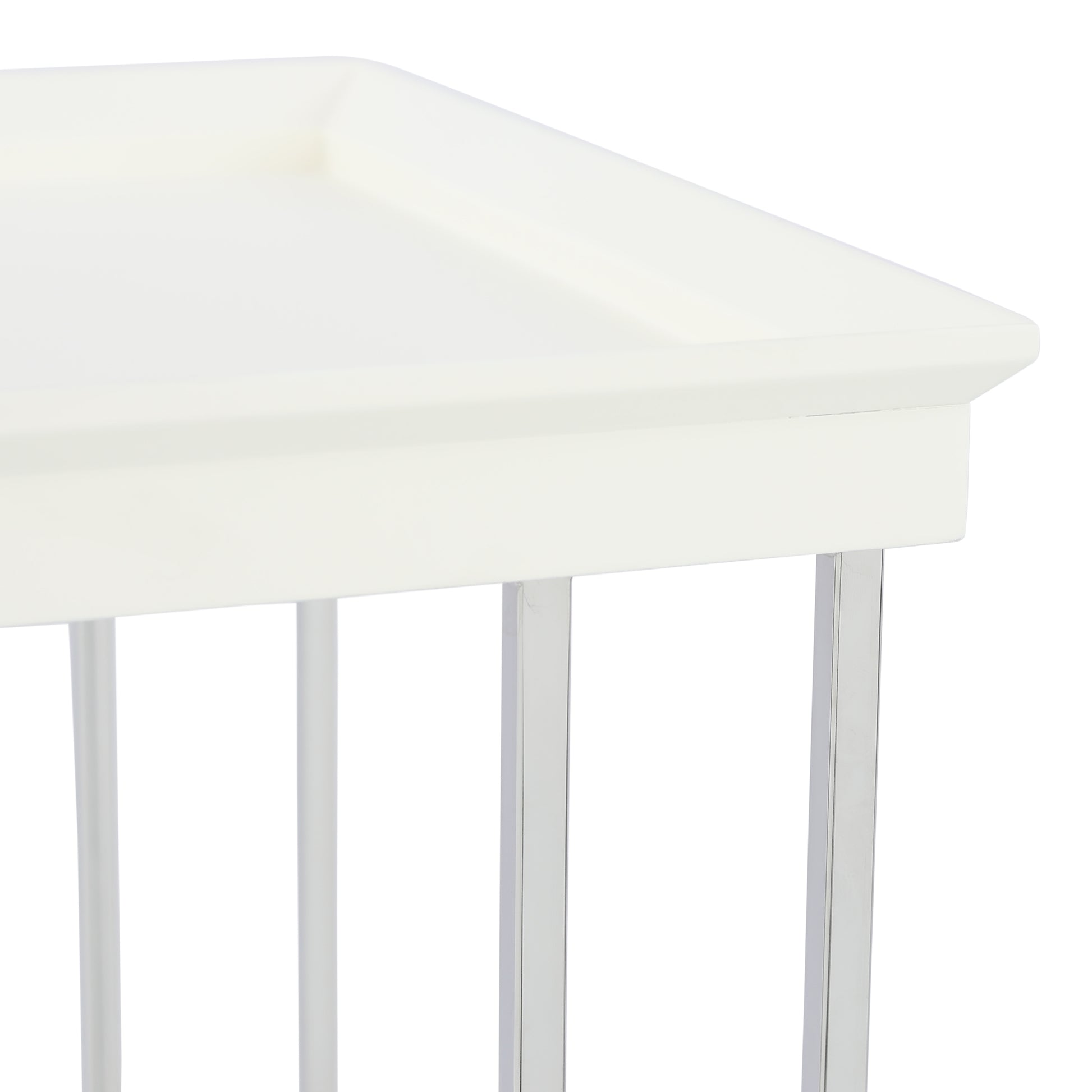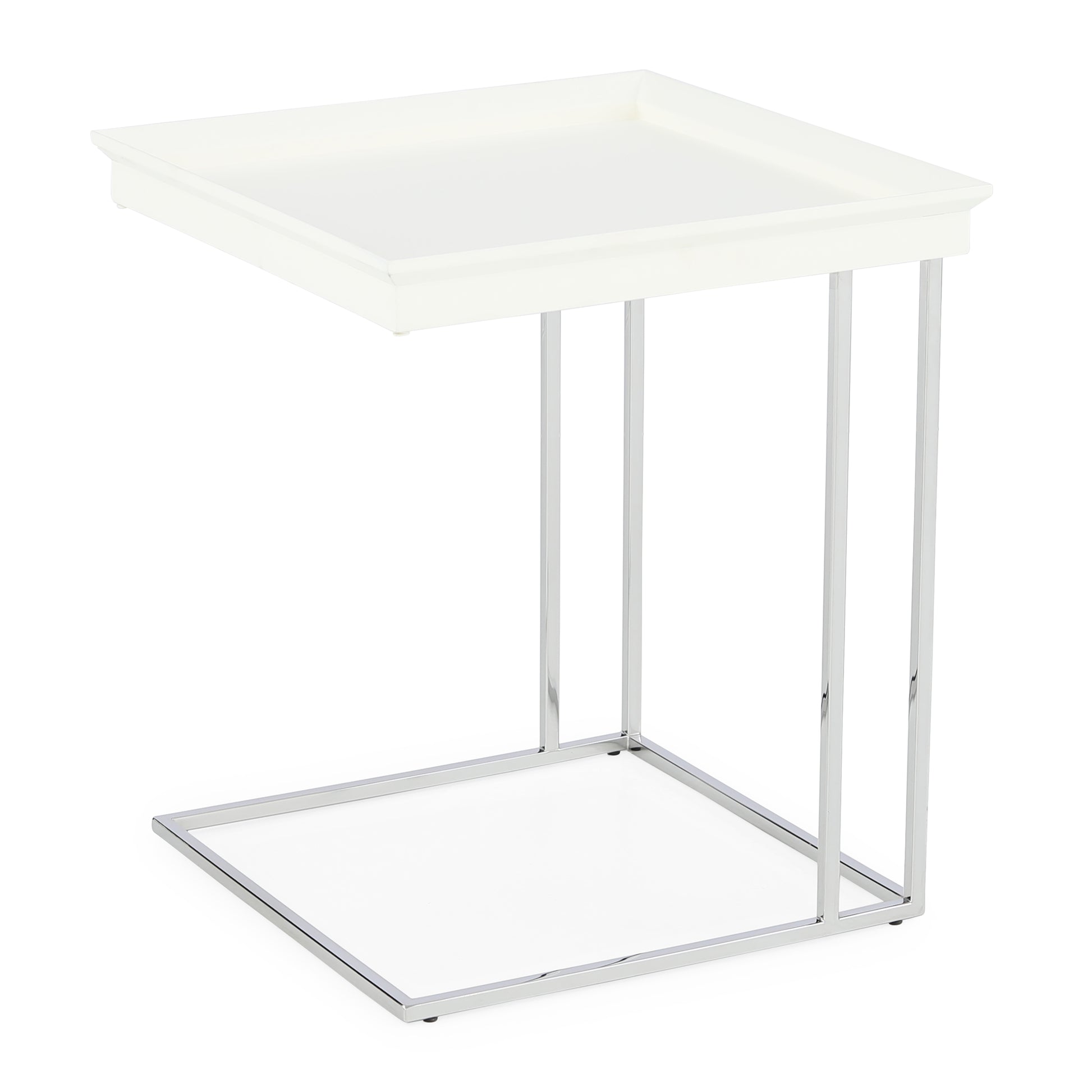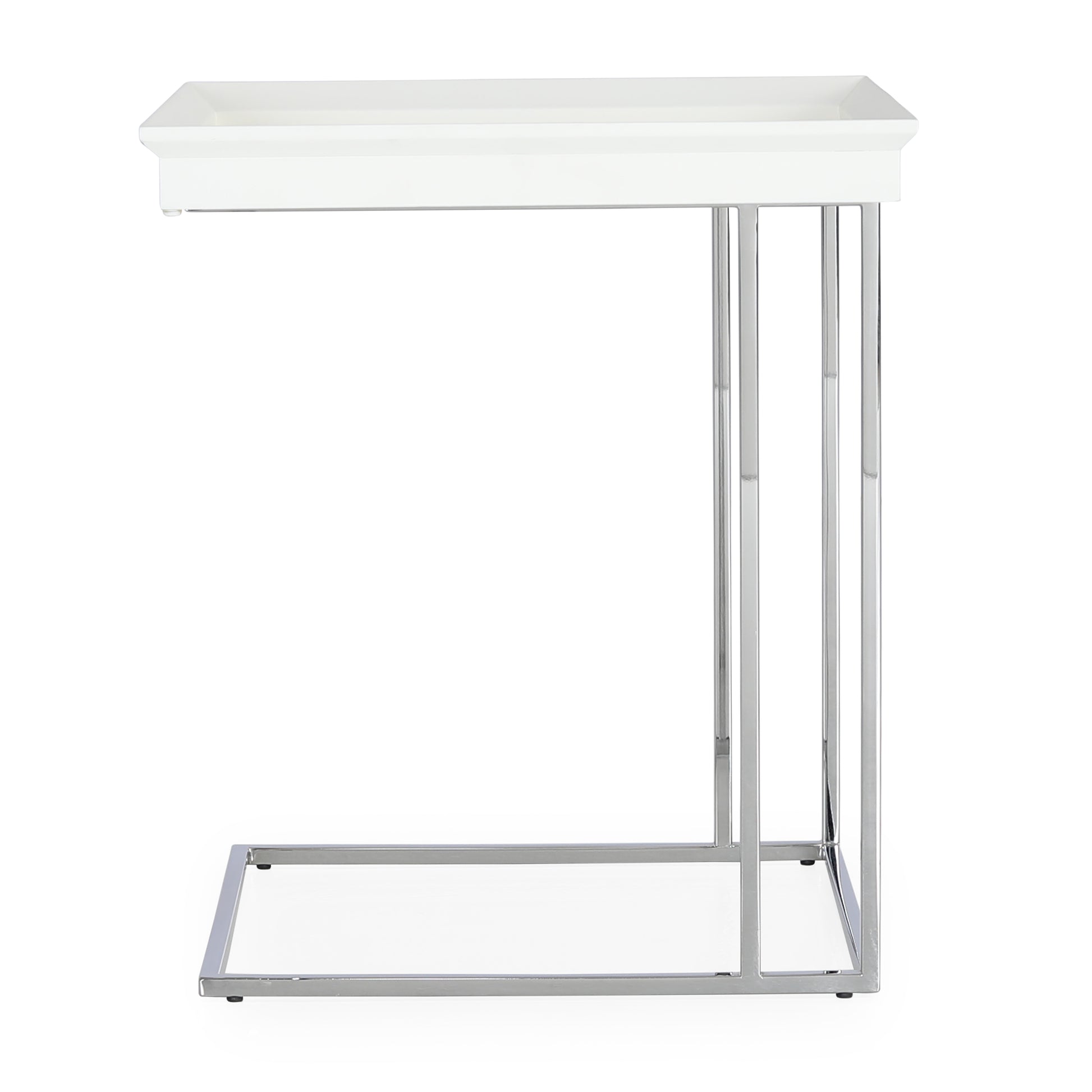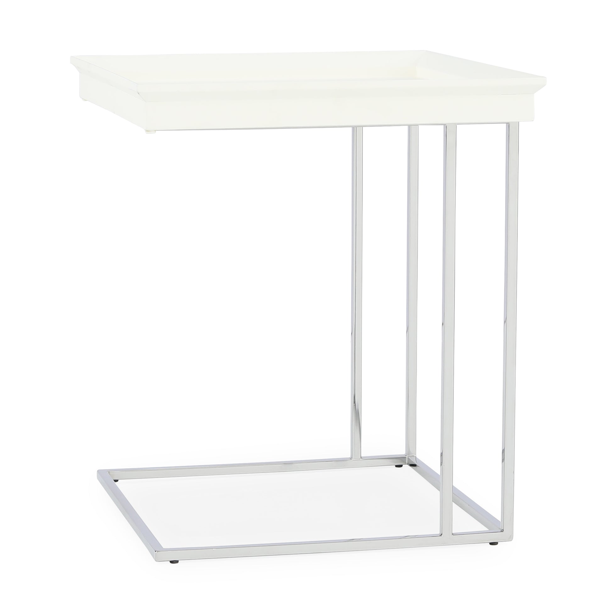 CUCU' SIDE TABLE WOOD Matt White Lacquered METAL Chromed Metal Cucù minimalist side tables are extremely versatile, thanks to the top that can be removed and used as a tray, to comfortably serve drinks and snacks. They are mainly used as side tables for the living room, placed next to a sofa without arms, but they are also suitable for a bedroom with a minimalist style used as practical bedside tables.