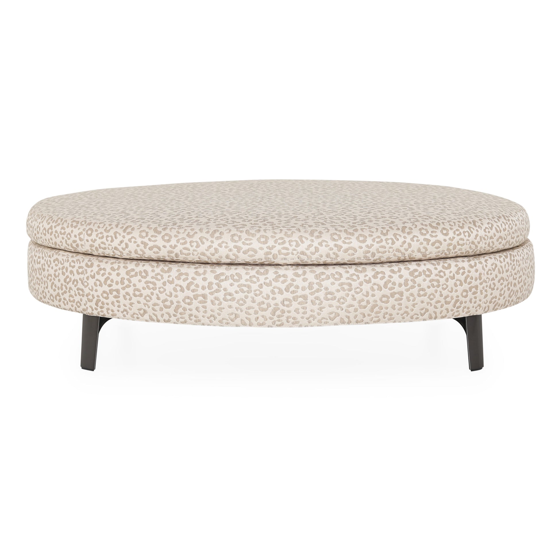 The Denny series includes several ottomans in the round and oval shapes, drawn from the same creative spring and careful study of proportions. The dividing line between the padded base and the seat cushion above it is highlighted by stitching that shows off the fine tailoring expertise the company has achieved.