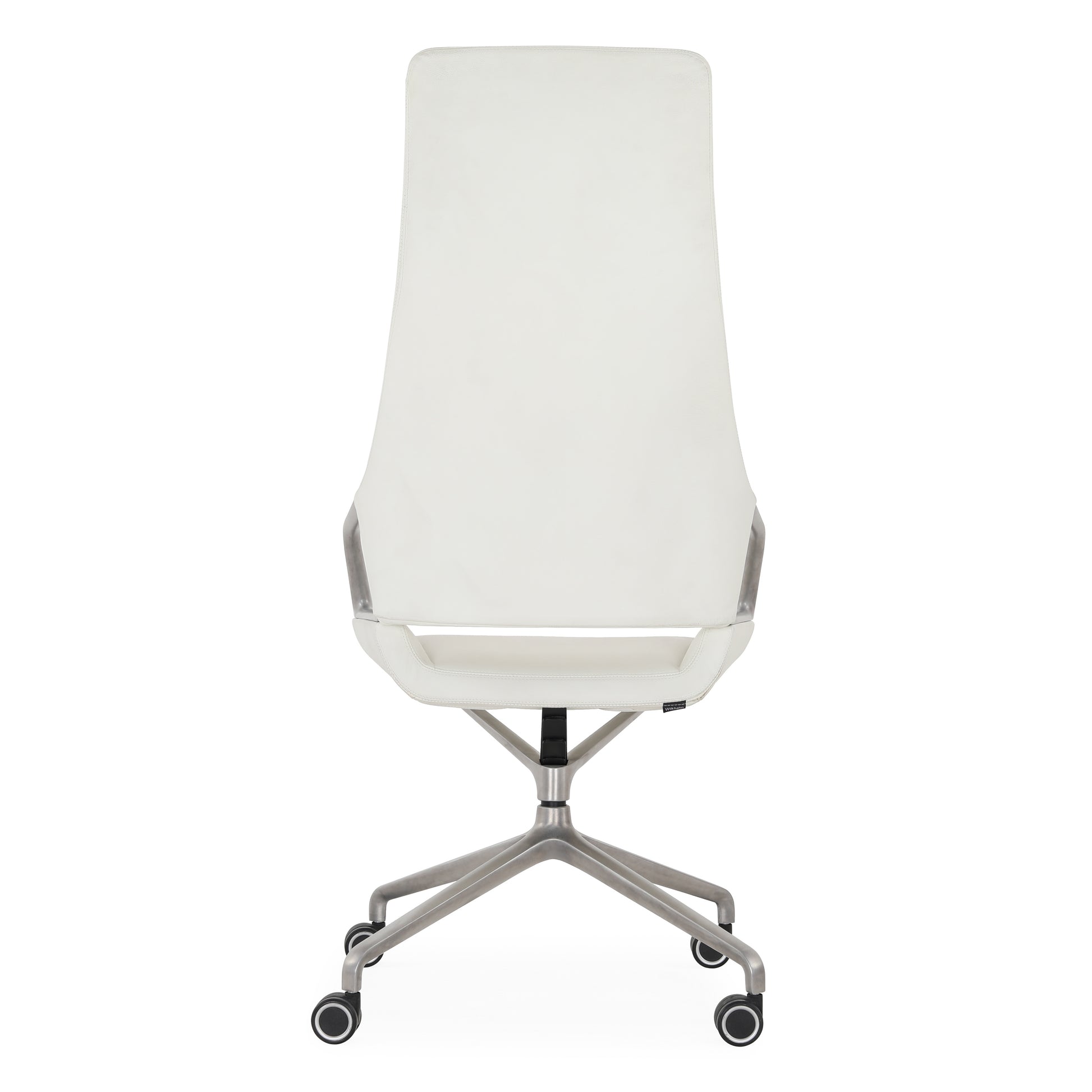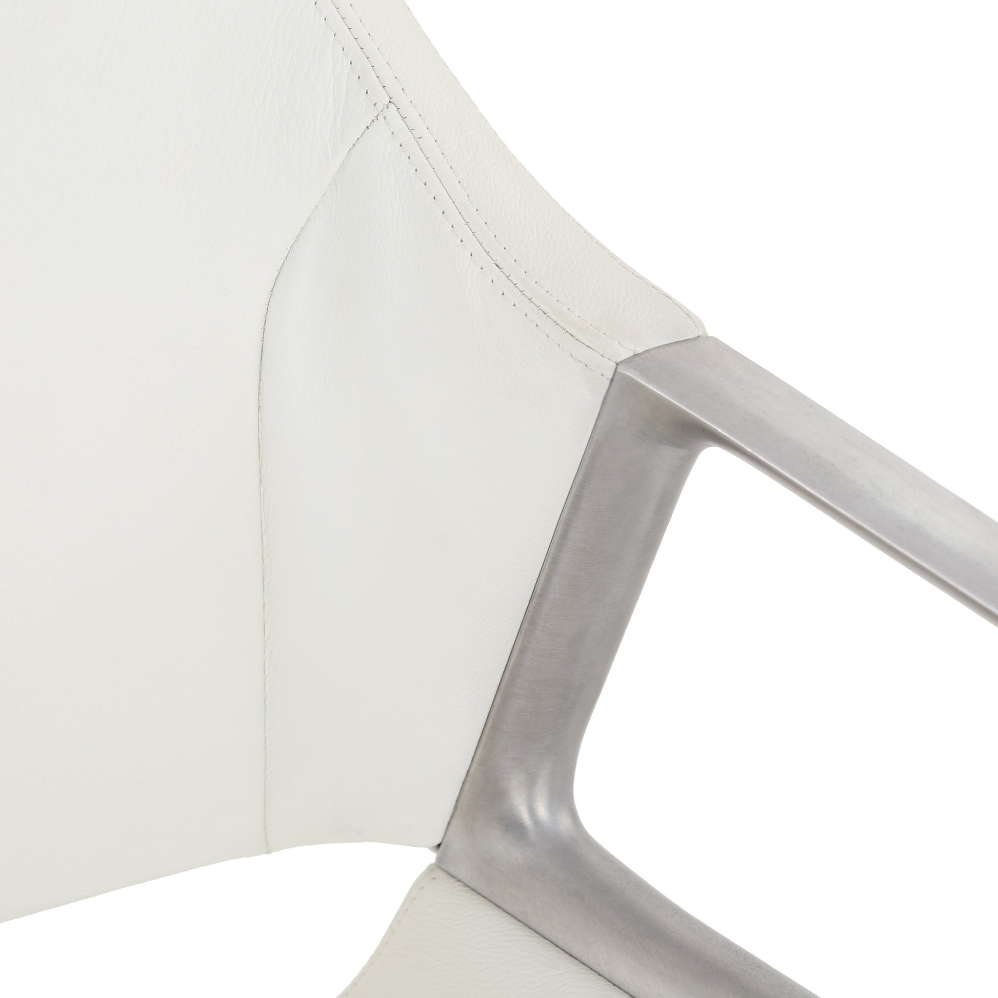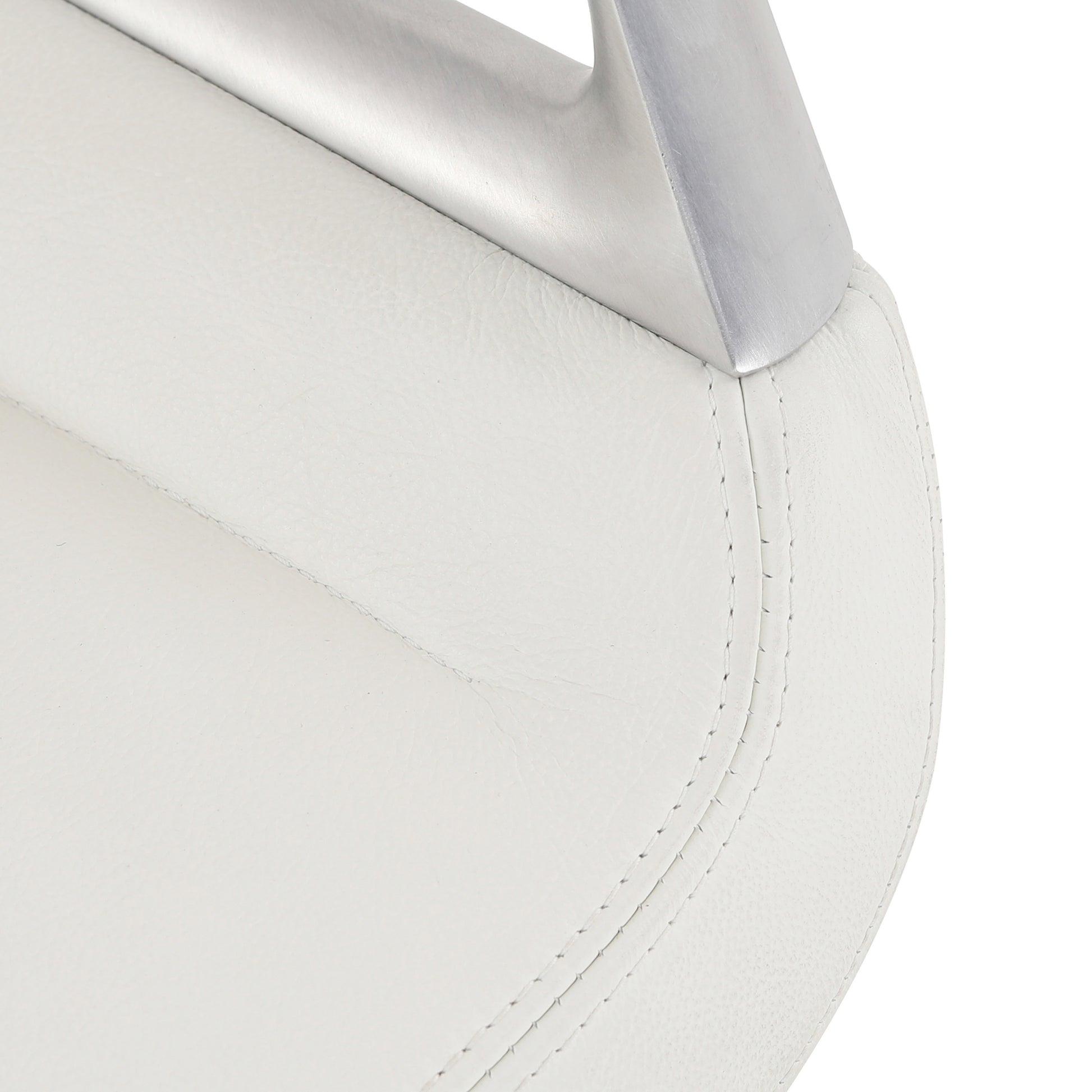 Armrests that connect the seat and back made of die-cast aluminium and coated black or signal white, matt polished, or bright chrome-plated to match the frame. Optionally with integrated, leather-covered armrest pads, only colour matched when a 74 or 87 leather cover is chosen.
