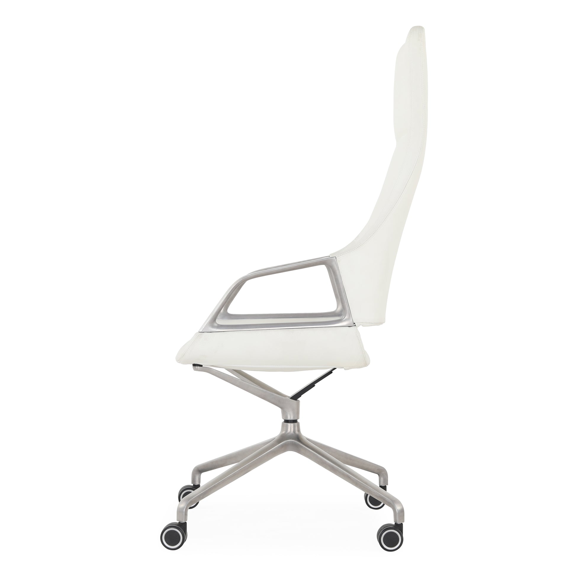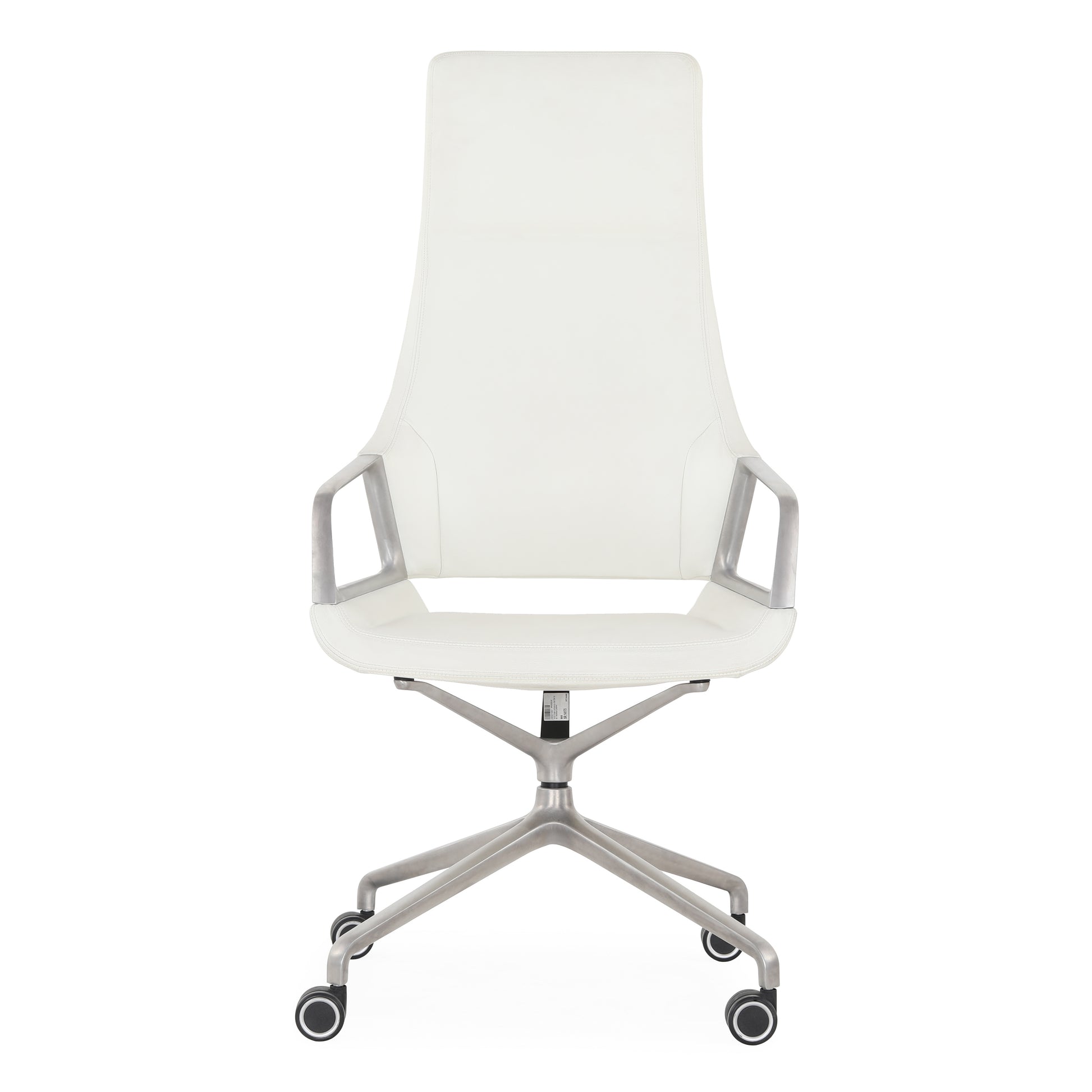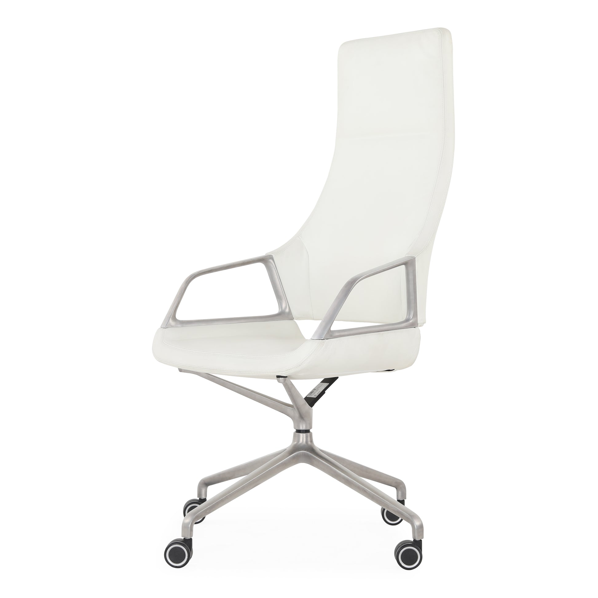 Armrests that connect the seat and back made of die-cast aluminium and coated black or signal white, matt polished, or bright chrome-plated to match the frame. Optionally with integrated, leather-covered armrest pads, only colour matched when a 74 or 87 leather cover is chosen.