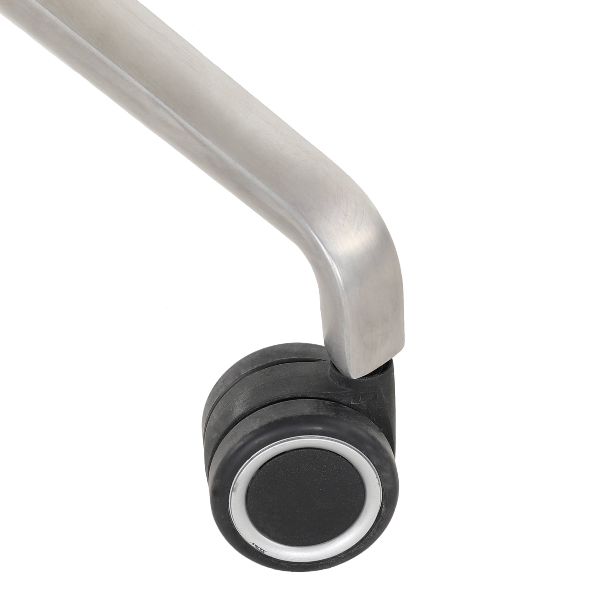 Models 301/5, 302/5: Four-star base made of die-cast aluminium, coated black or signal white, matt polished or bright chrome-plated. Black, multipurpose glides made of plastic for all types of flooring. Optionally with base glides with larger contact area for sensitive floorings, either to match the starbase black or signal white-coated, matt chrome-plated (polished starbase) or bright chrome plated (bright chrome-plated starbase).