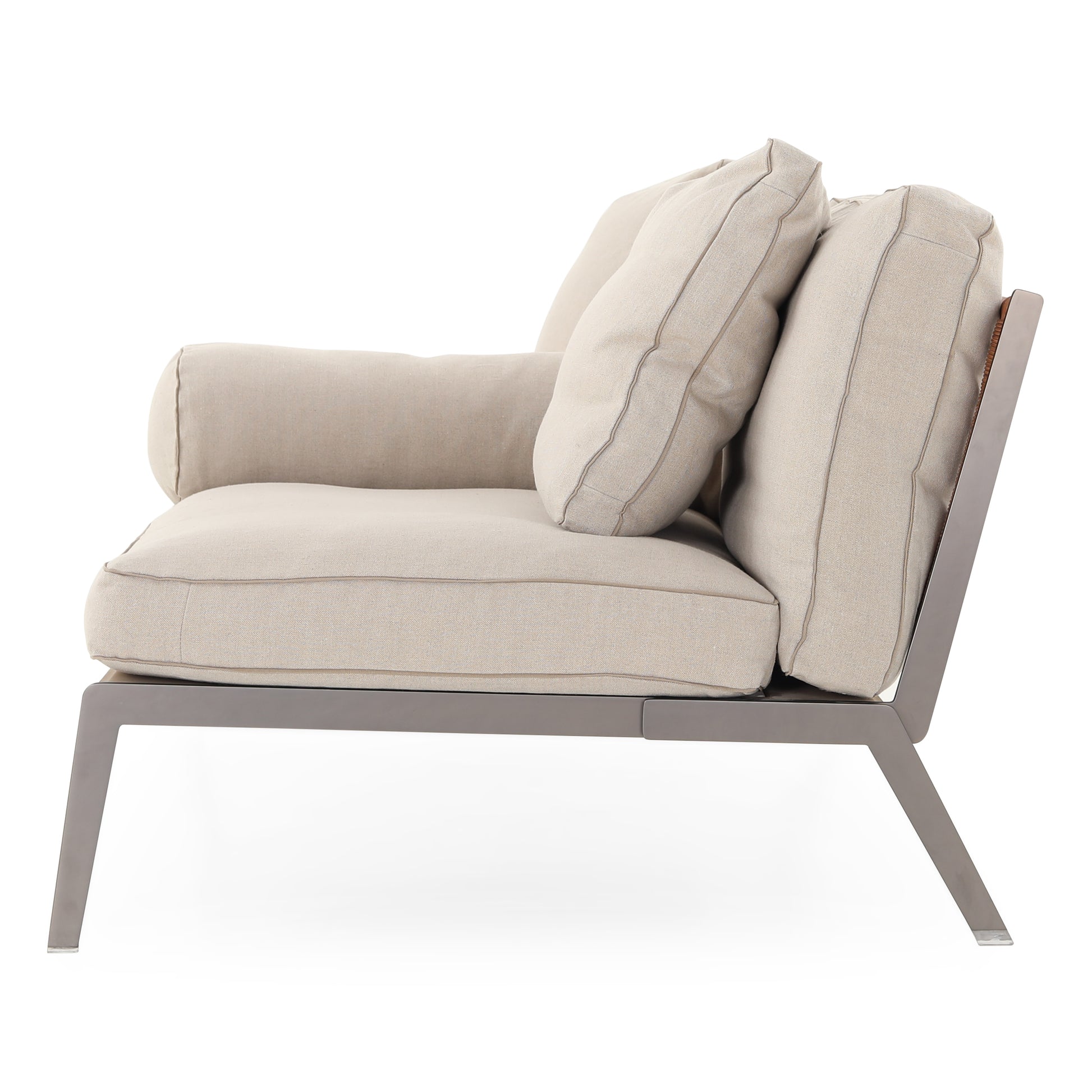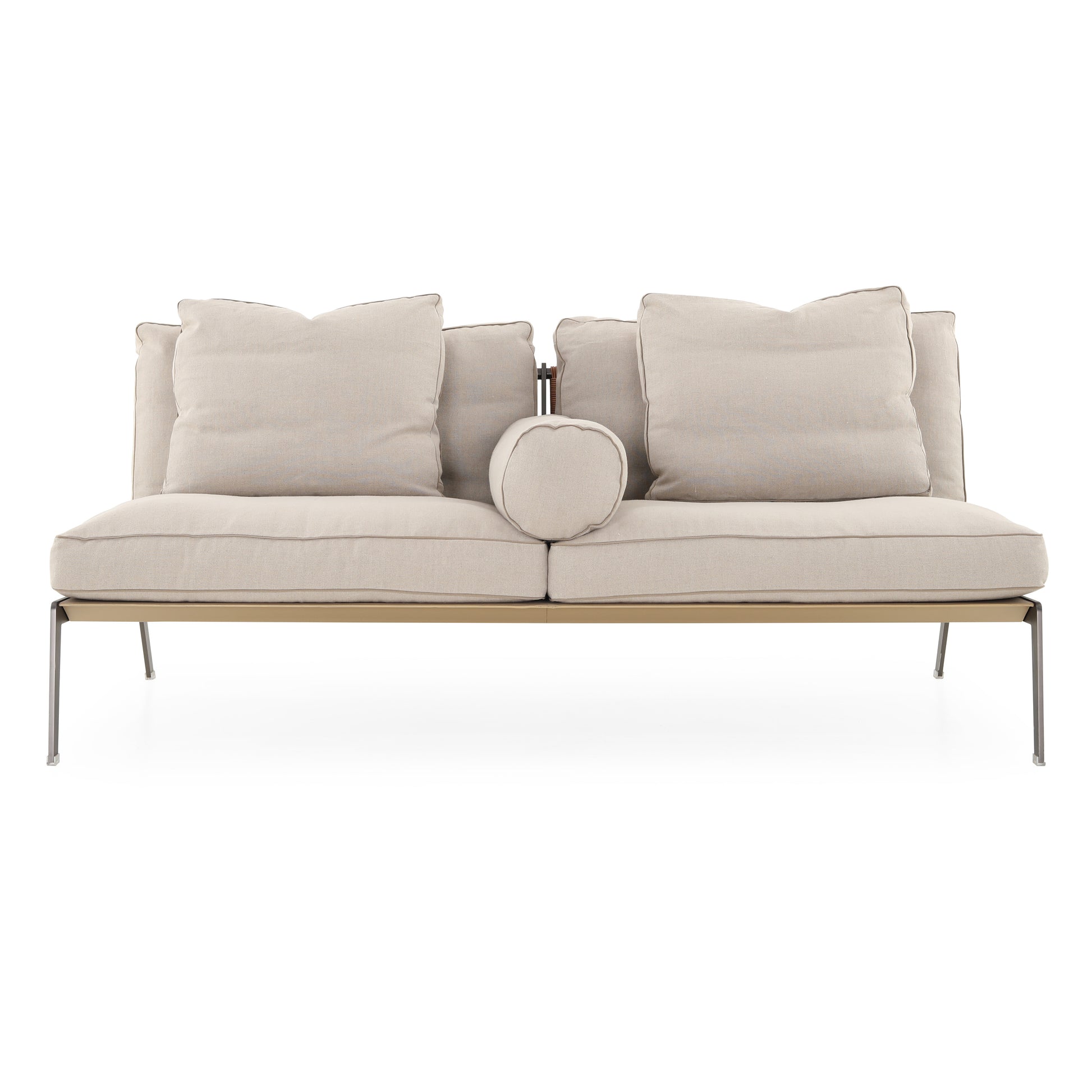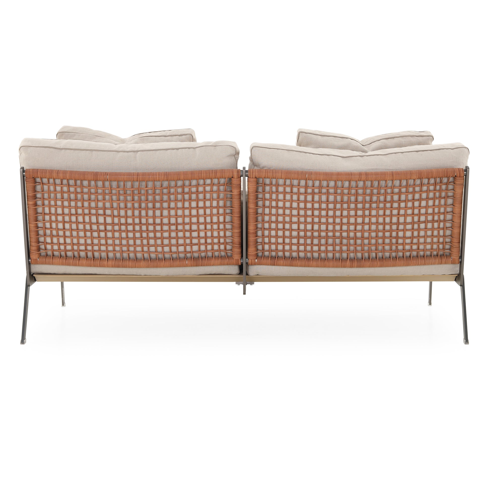 HAPPY - Sofa 162 Frame in metal: burnished, Backrest with hide leather net: 5004 sand colour - Fab: Saio 292