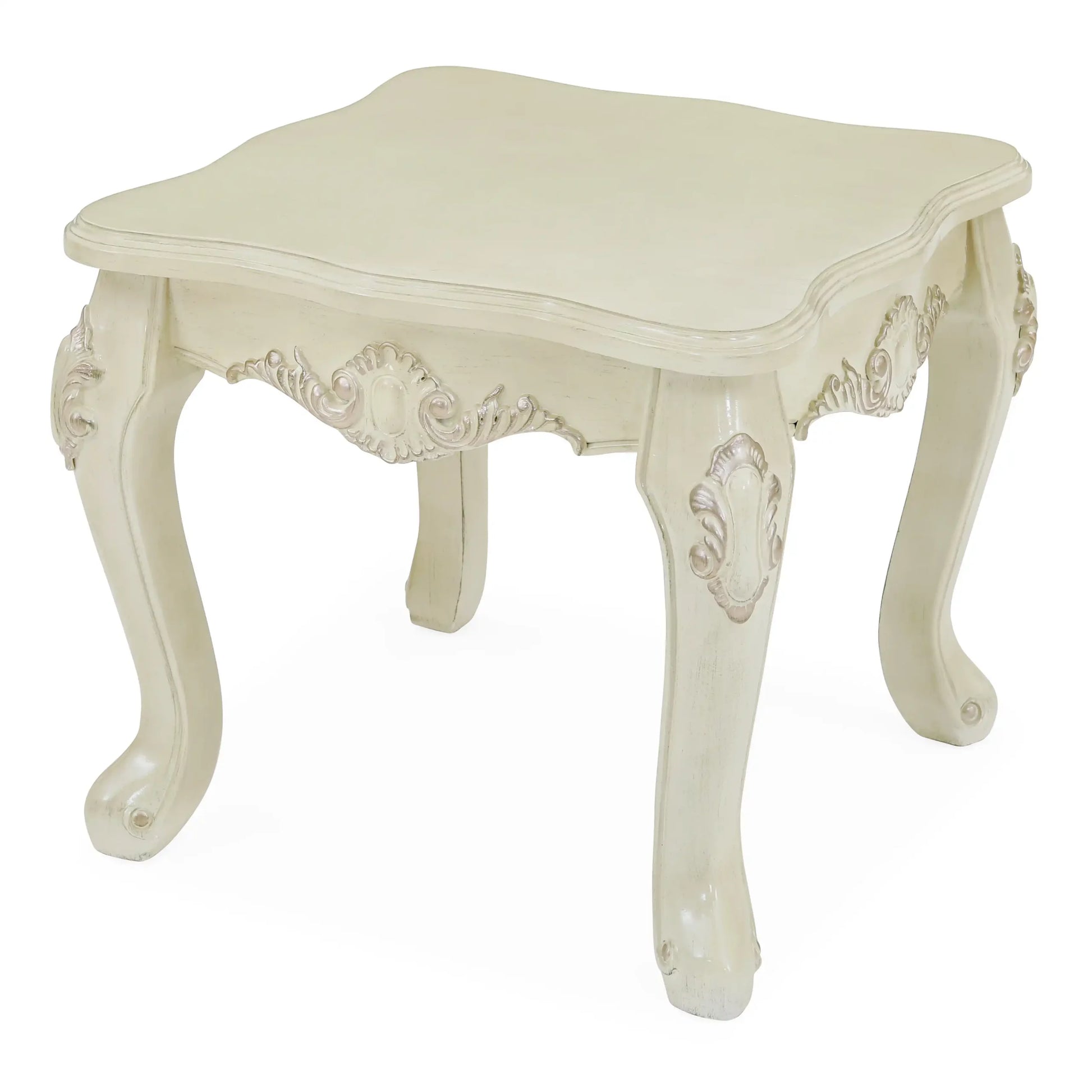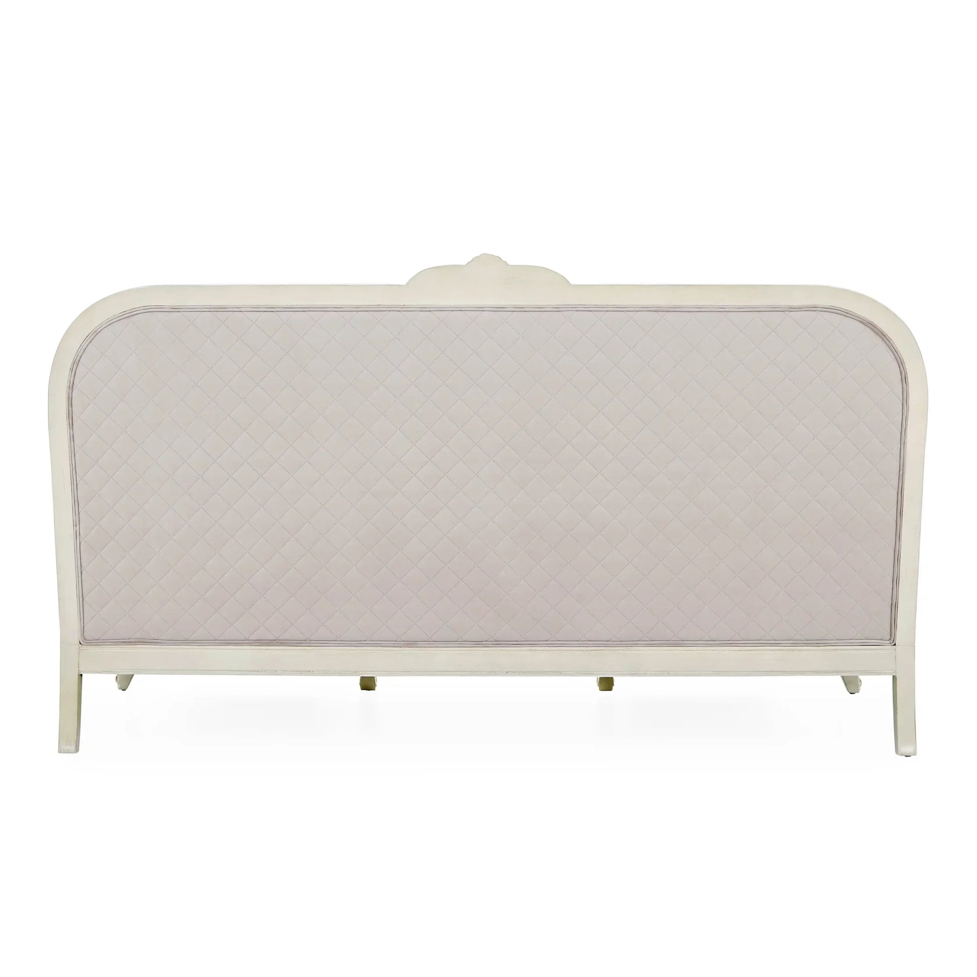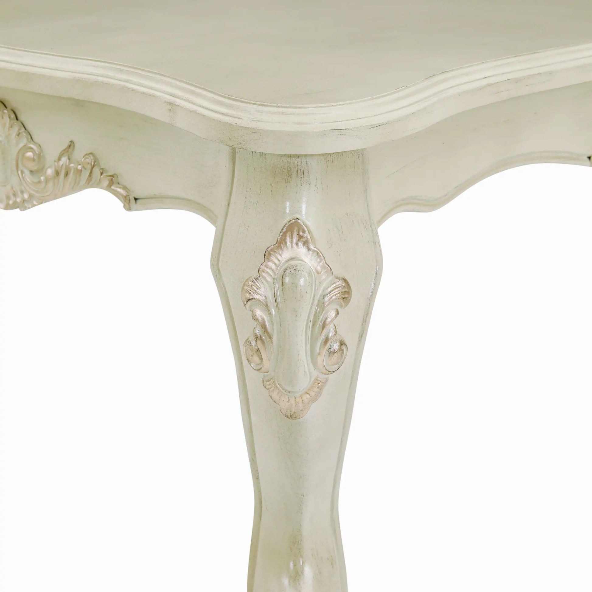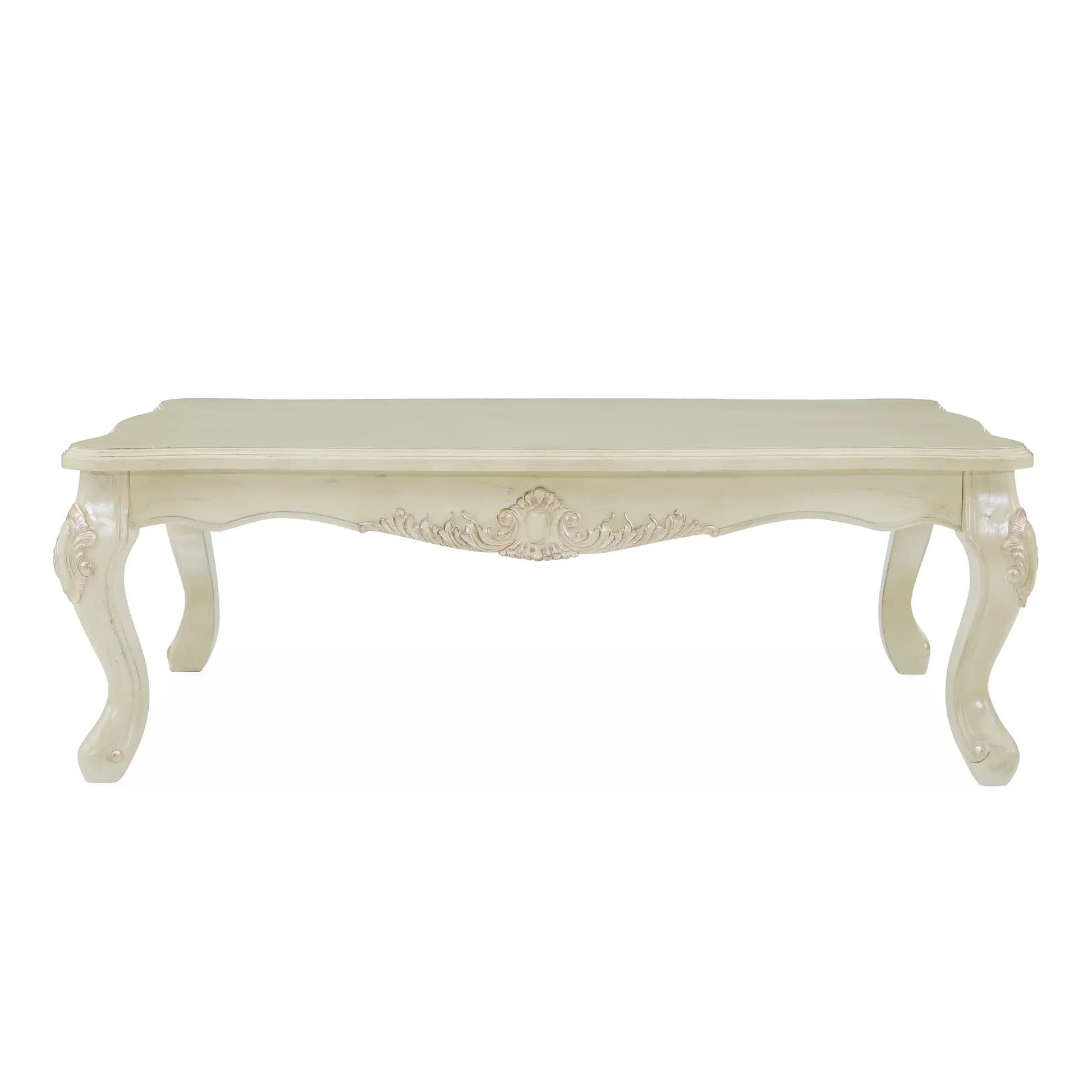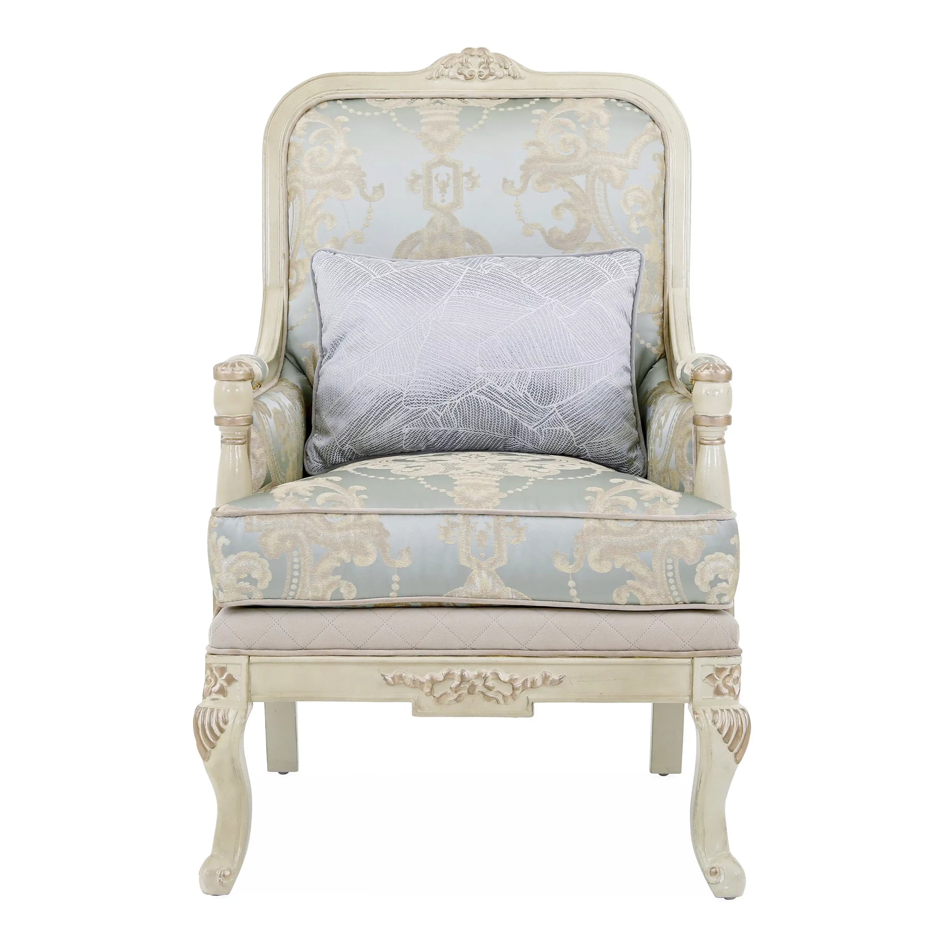 This Haven wood sofa set is a masterpiece that can perfectly fit in the living room of every house and hotel. All the pieces of the Haven collection are entirely hand-made by master craftsmen and are characterized by the use of high-quality wood solid materials and the meticulous care of all the slightest details and 100% hand-carved also handcrafted.Set includes a wooden sofa a loveseat and two lounge chairs with pastel green finish antique silver on carvings. Upholstery: Woven damask inside and matching plain diamond-stitched on external area and deck. A carved wooden coffee table and two side tables with a pastel green finish are also included in this master set.