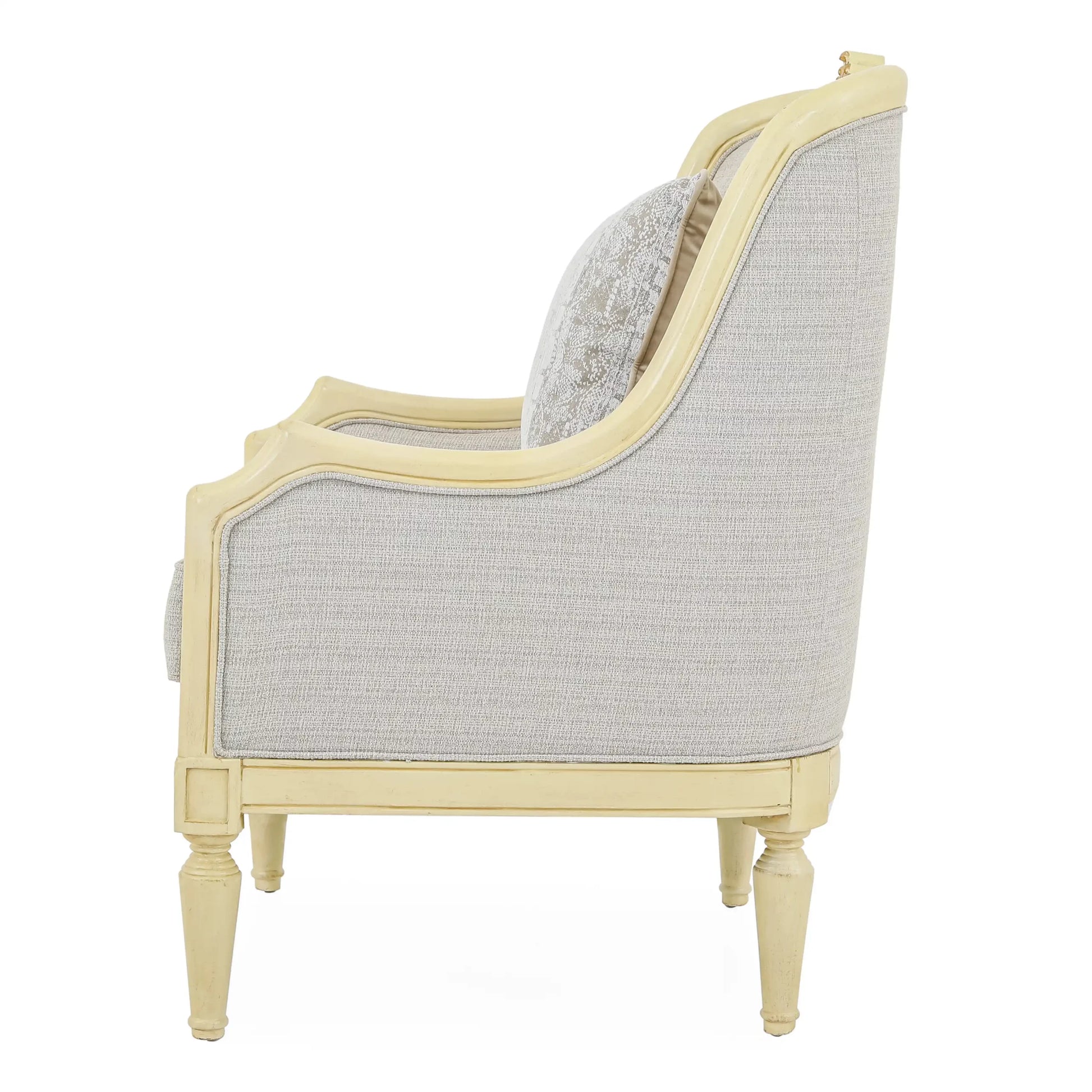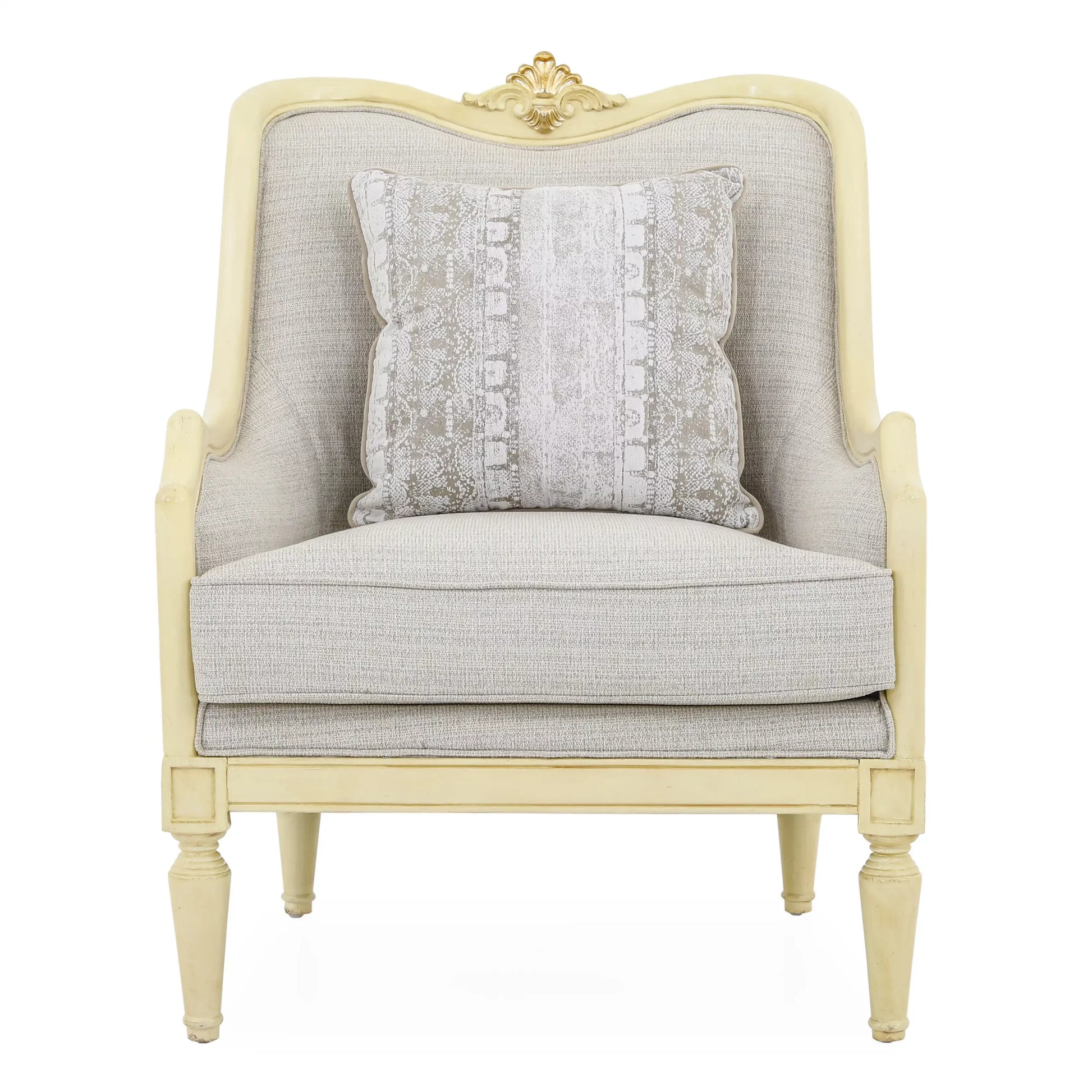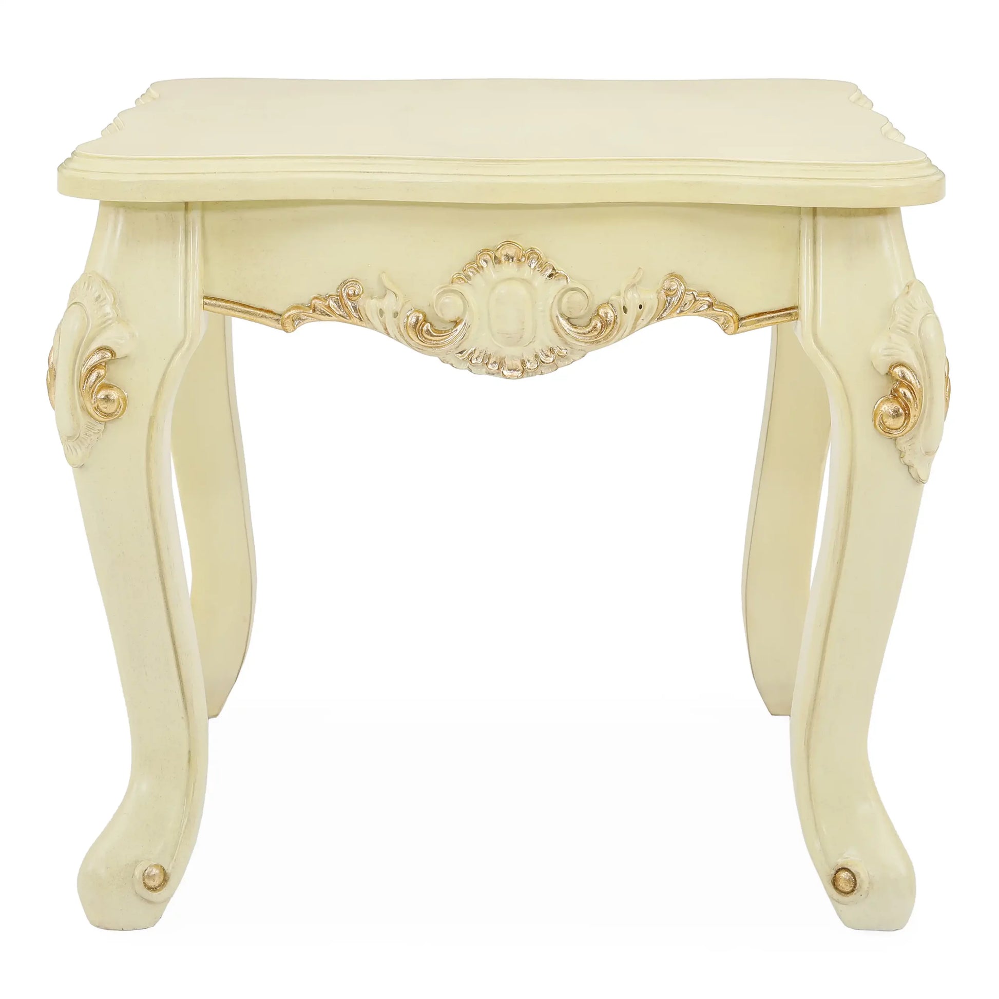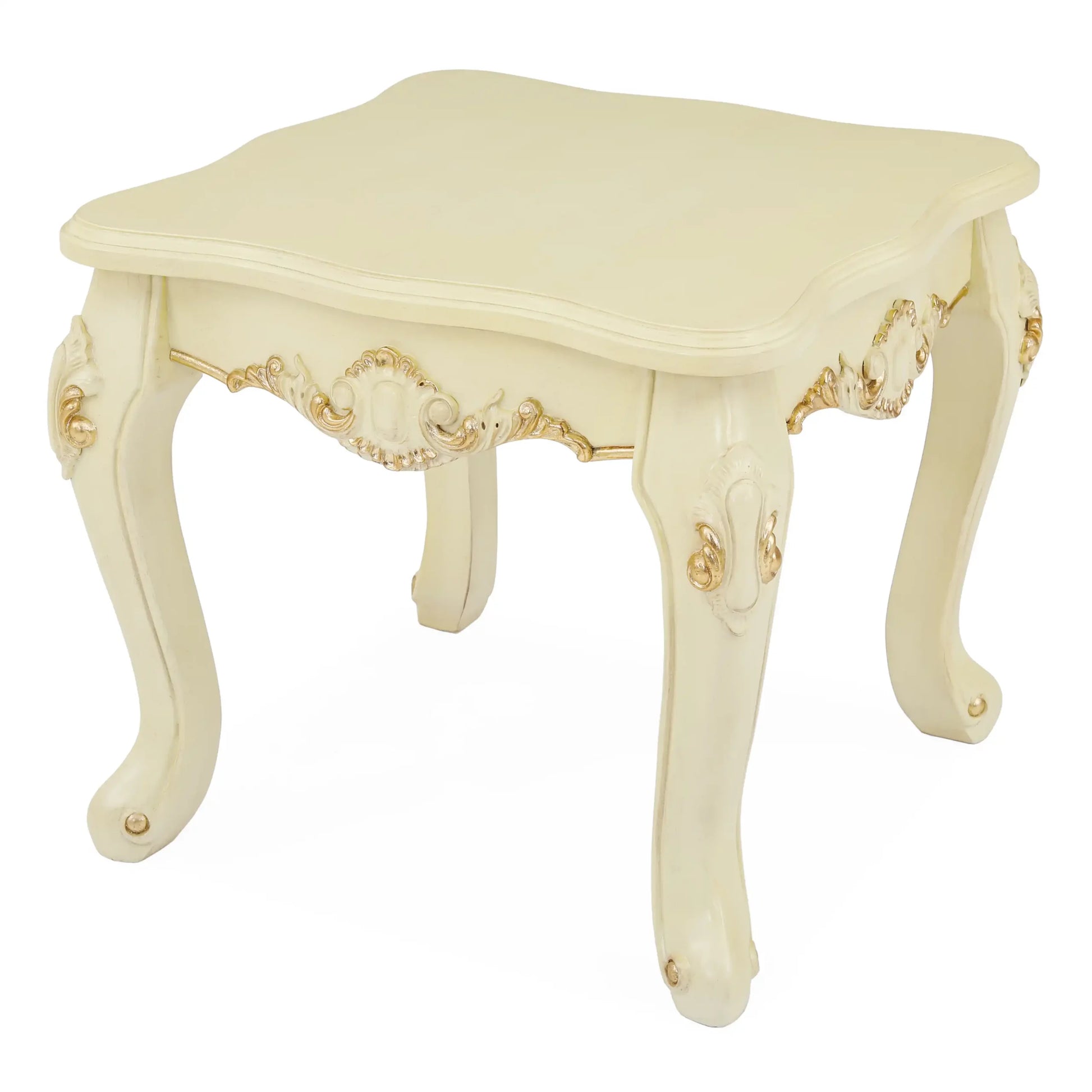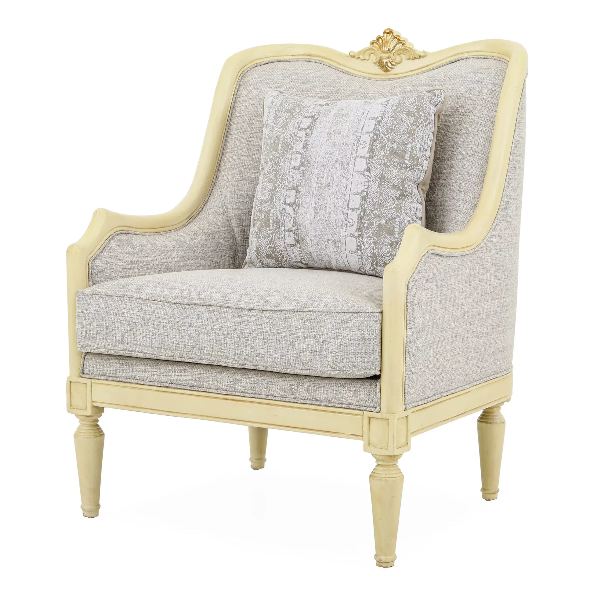This Isabelle wood sofa set is a masterpiece that can perfectly fit in the living room of every house and hotel. All the pieces of the Isabella collection are entirely hand-made by master craftsmen and are characterized by the use of high quilty wood solid materials and the meticulous care of all the slightest details and 100% hand-carved also handcrafted. Set includes a wooden sofa, a loveseat, and two lounge chairs with an antique beige finish. Gold on carvings, linen upholstery.A carved wooden coffee table and two side tables with an antique beige finish are also included in this master set.