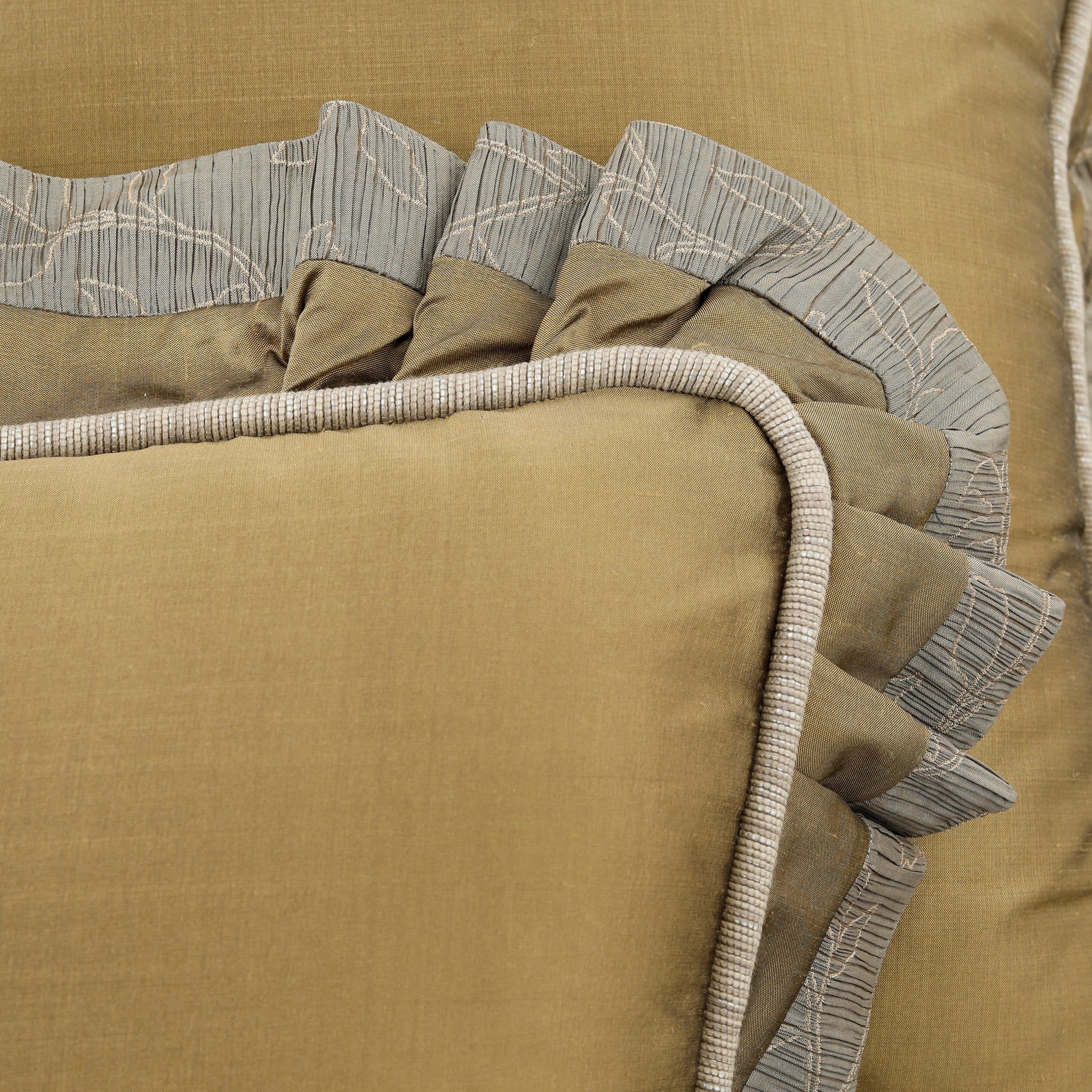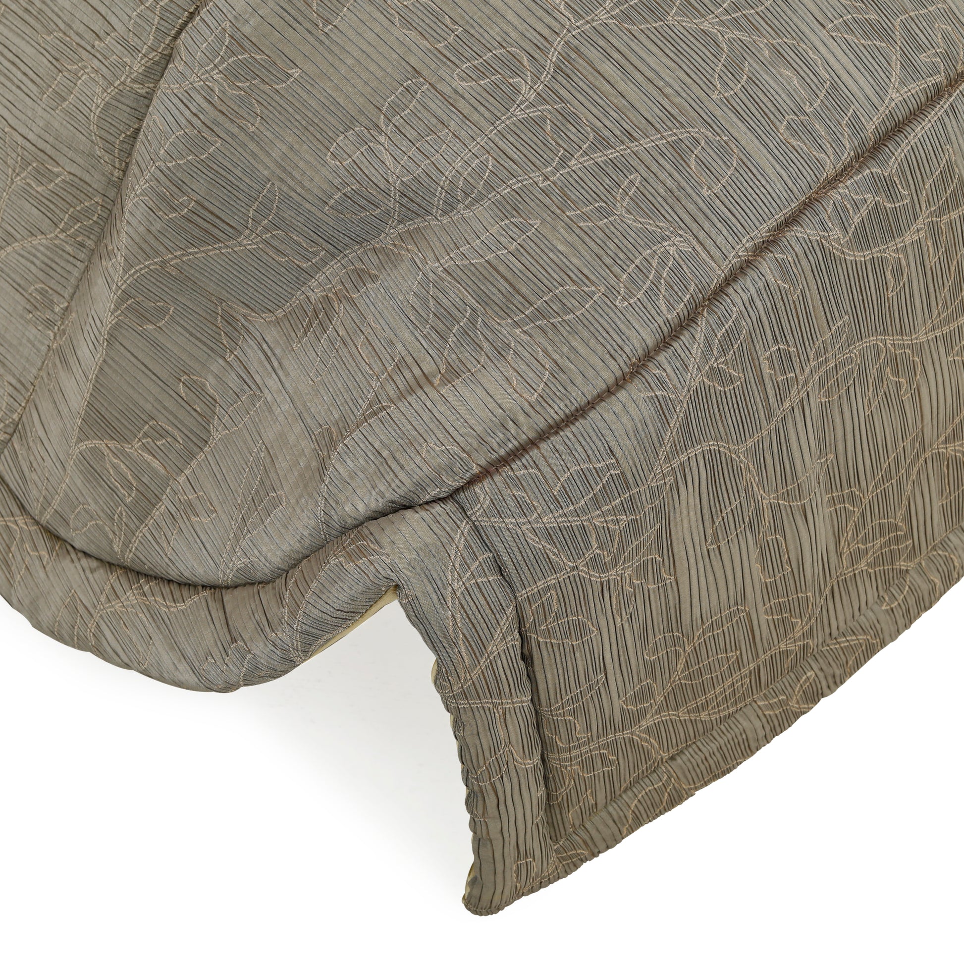 A modern King-size bed cover with an elegant design that blends simplicity with quiet luxury. Made of gray chenille fabric, it features a soft texture and a warm appearance that brings a sense of comfort and tranquility to the bedroom. The design is completed with four rectangular pillows made of luxurious silk, adding an elegant contrast and a sophisticated touch that enhances the bed's aesthetic. This cover is an ideal choice for lovers of modern designs that combine practicality and elegance.