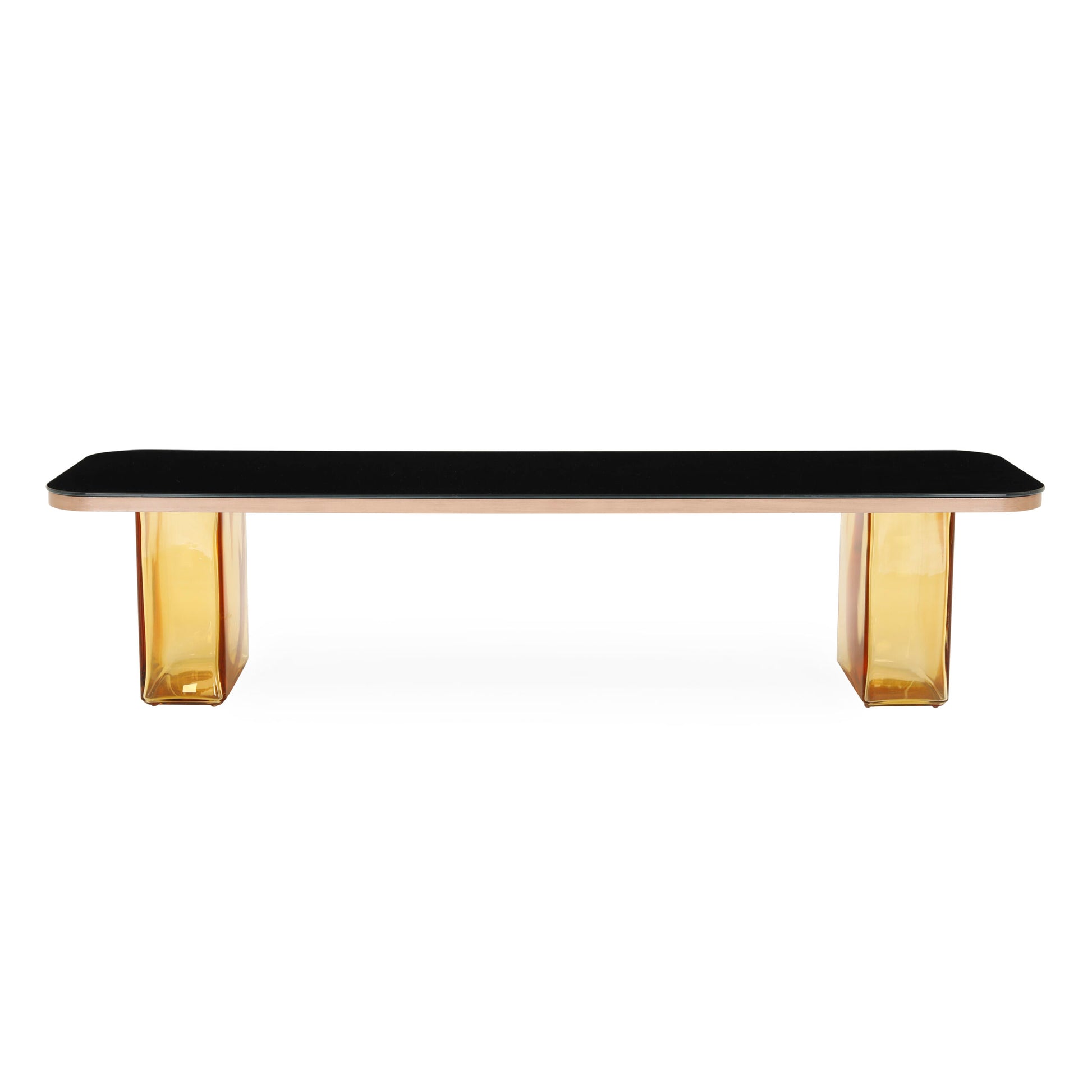 This stone and glass collection is one of a kind. Bringing high end glass and stoneware elements together to form a truly modern and intriguing design. Available in three shapes; a slim rectangular form, a shorter rectangular form and a circular form. The Circular options come with three hand blown glass supports while the rectangular versions come with two.