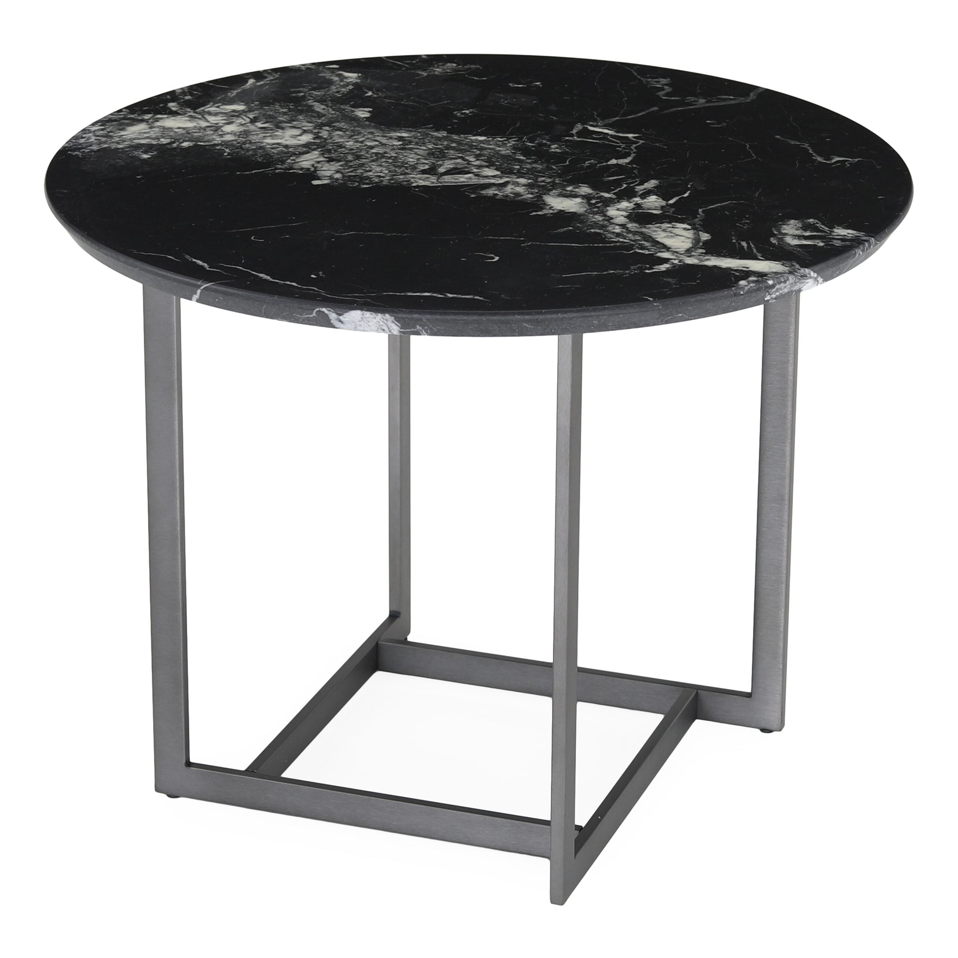 Porada Londra 1 Round D.60 H.45 Side Table Marble Black Marquina Metal Brushed Anthracite