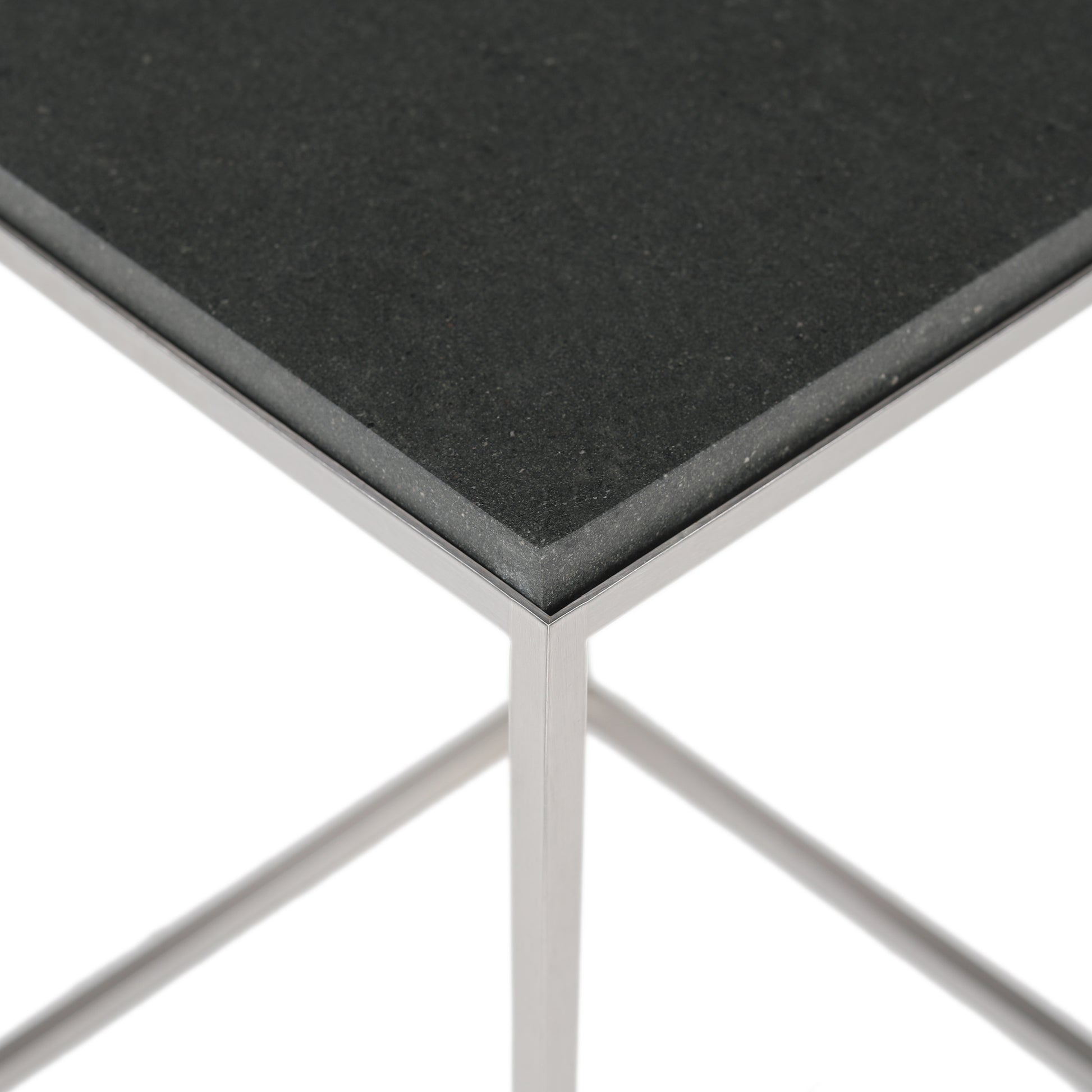This set of nesting tables by Donghia have a striking minimalist design with frames of iron with a black finish that support tops of frosted glass.