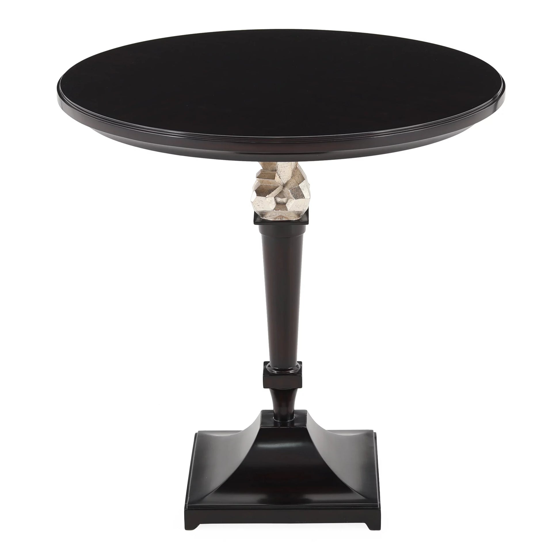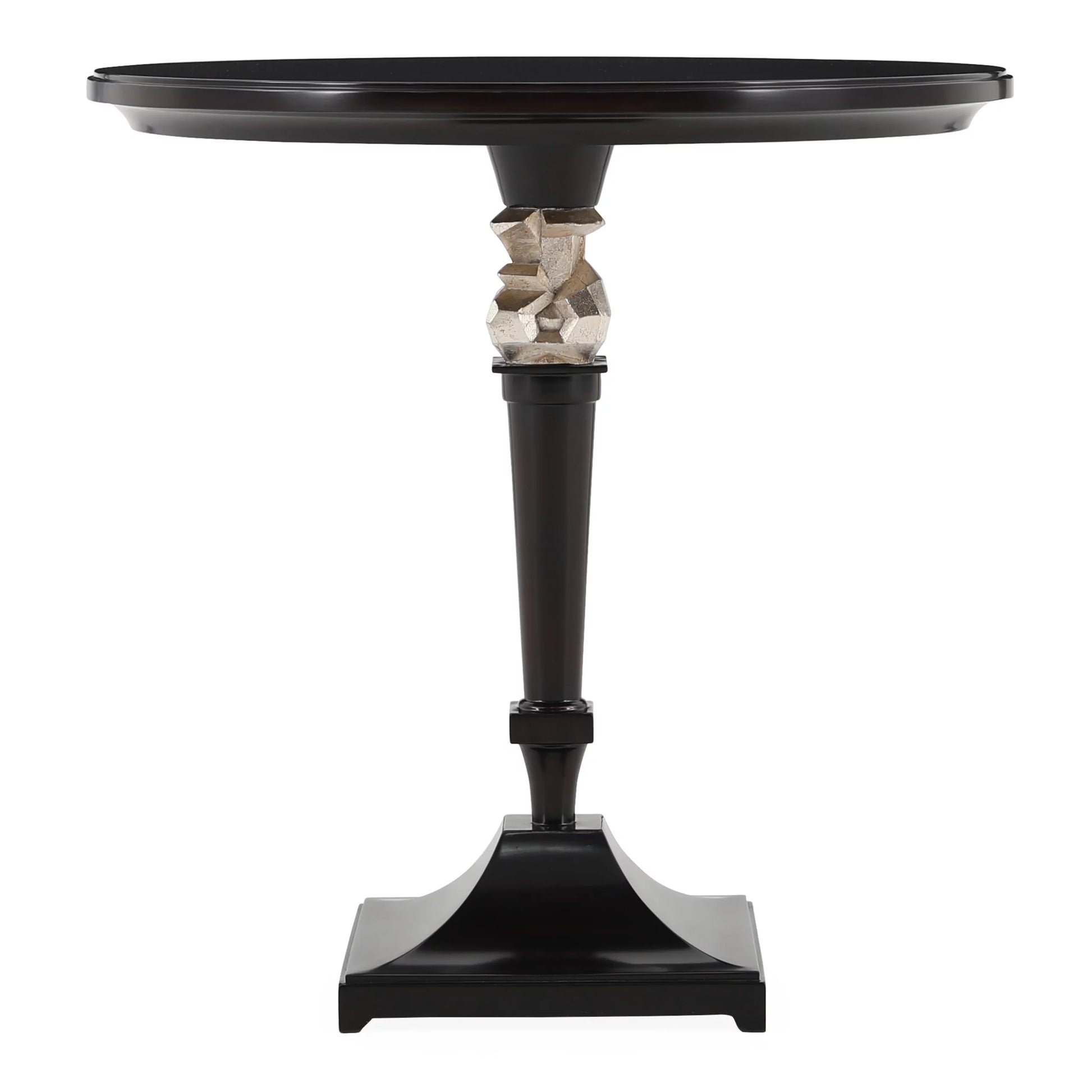A sublime bistro/side table with a hand-carved sculptured centerpiece and veneer top. Finish in Java Café Varnish / Italian Silver Leaf. Christopher Guy a luxury brand focused on an international lifestyle to view the world through a critically constructive eye has translated into design elements that form the bedrock of today's CG vast collection. Above all else, Christopher's unique work is characterized by elegance, which forms the DNA of each design and is central to the philosophy of the brand.