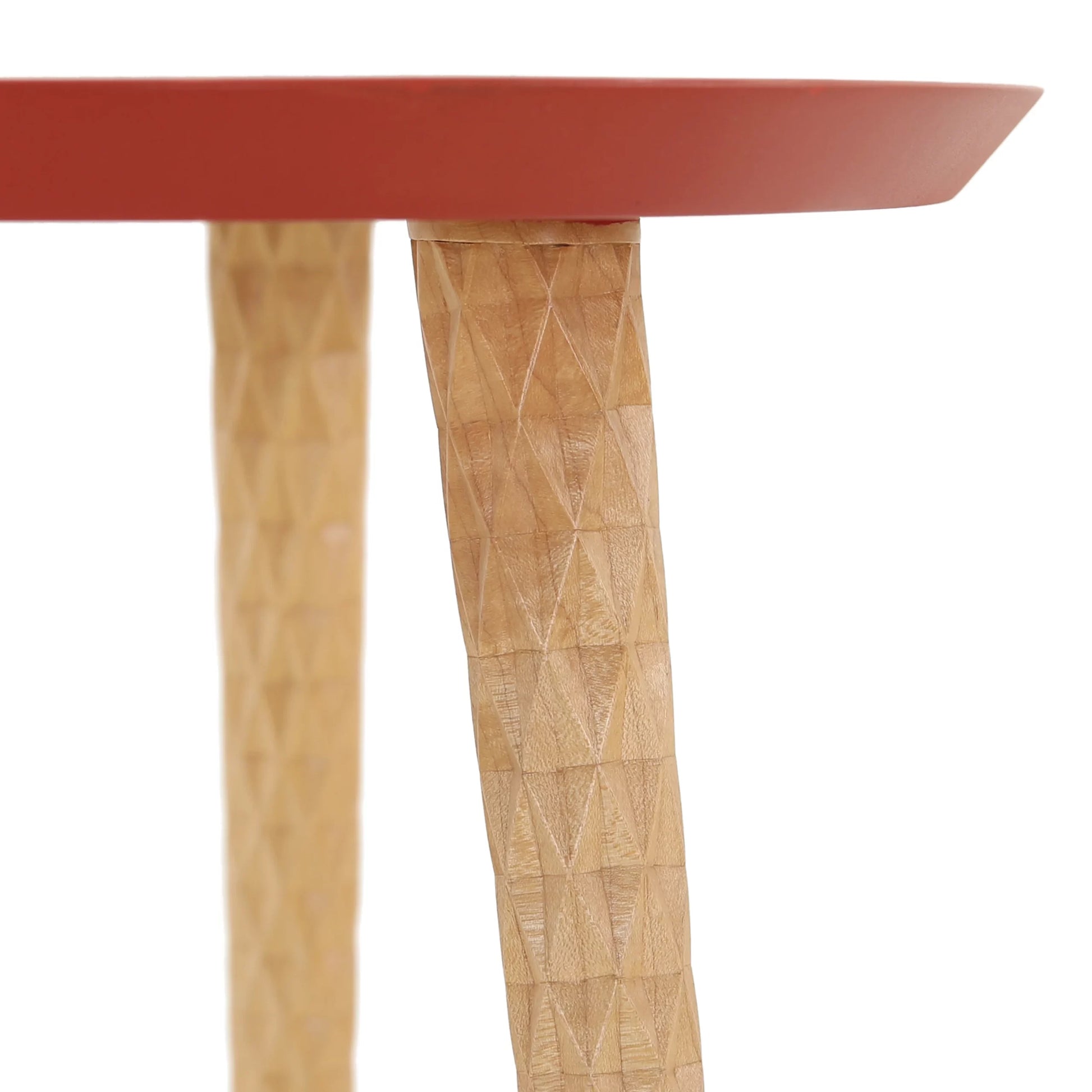 Picadilly small side table made from carved maple and brick red lacquered top