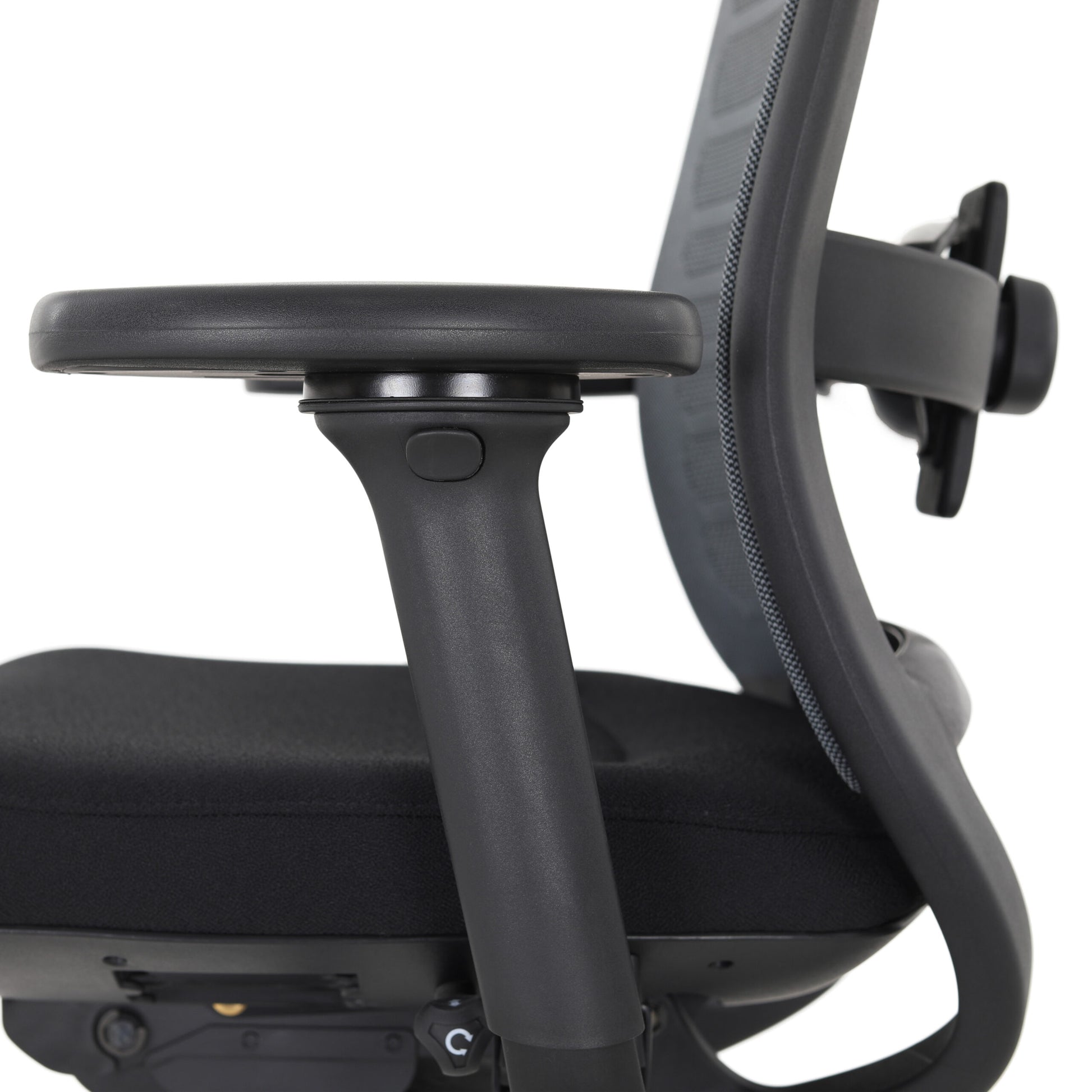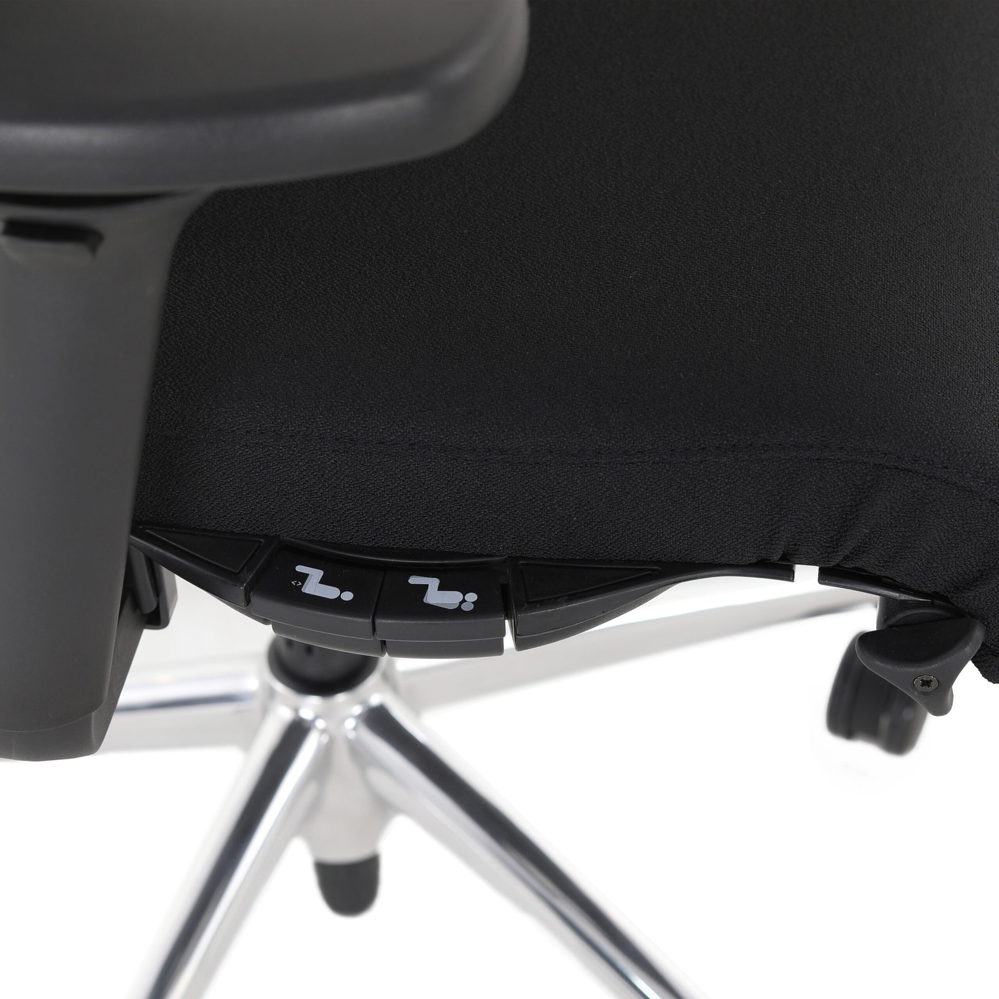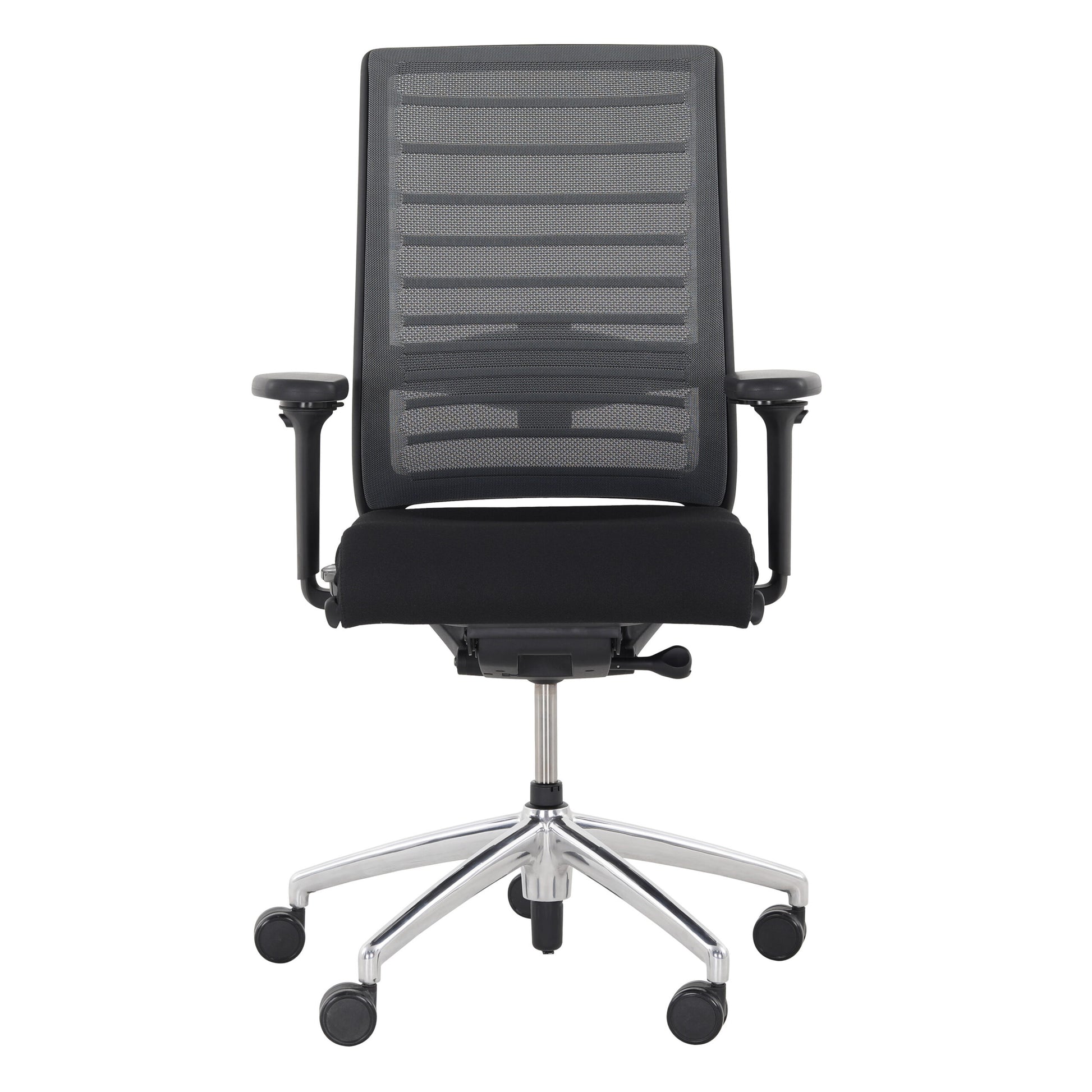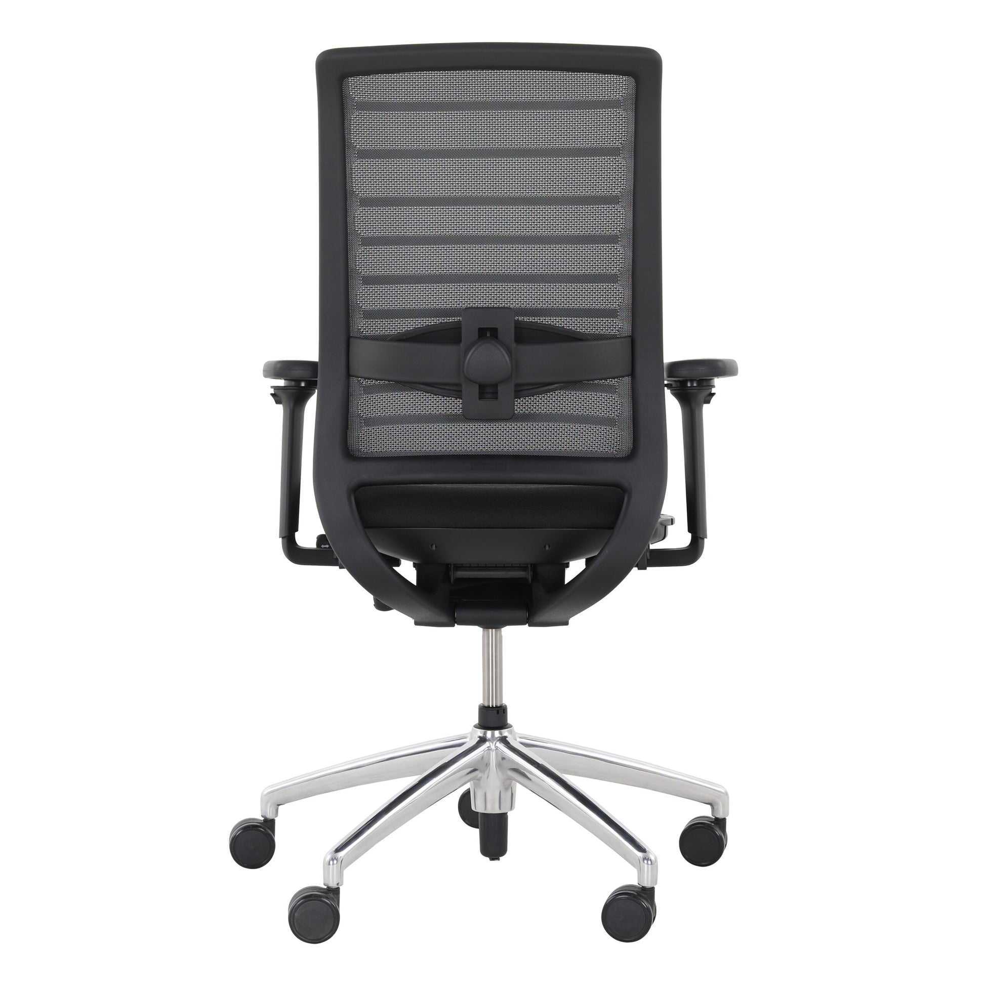 Swivel Chair, Backrest medium high, mesh covered backrest (armrests optional) color seat 5800 Lucia. Fully adjustable for perfect customisation: The Interstuhl synchronous mechanism makes it possible to precisely adjust the counter-pressure of the backrest to each user. The Interstuhl synchronous mechanism provides optimum support for the human body in every position. The reaction force of the synchronous movement can be individually adjusted to users and their weight in seven steps. It also encourages users to change their position frequently and thereby promotes active and healthy sitting.