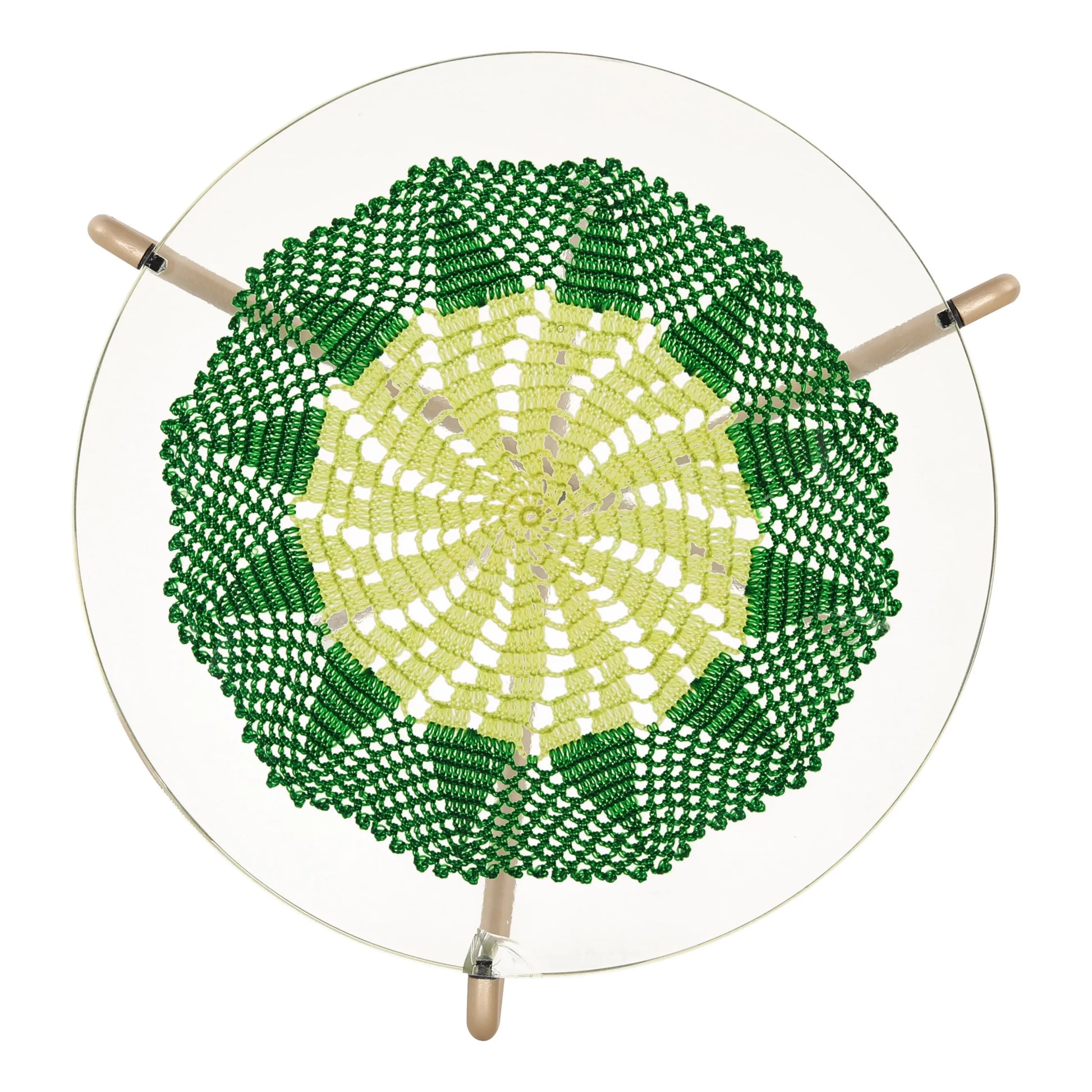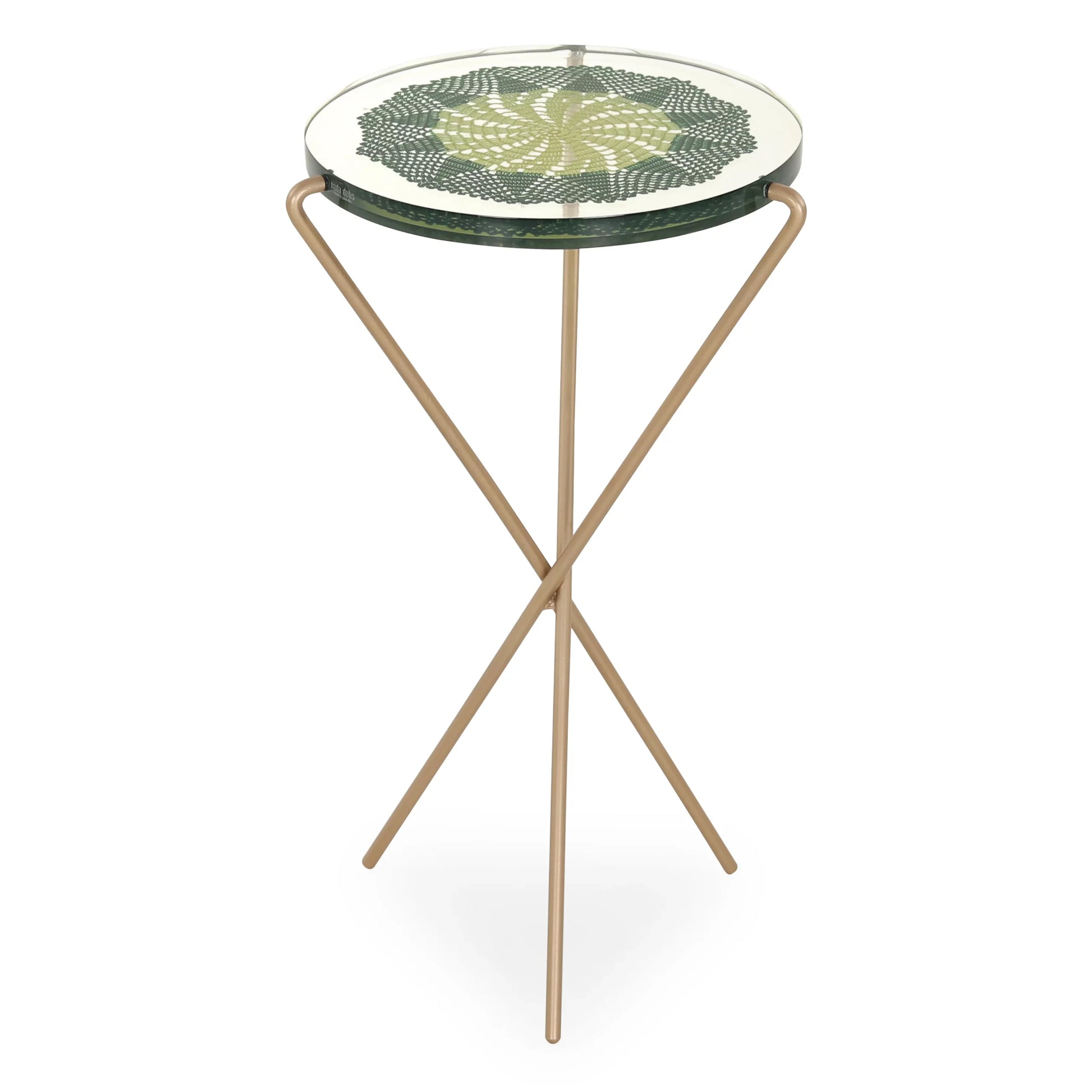 Side table with Crochet inlay in clear resin with metal base - medium