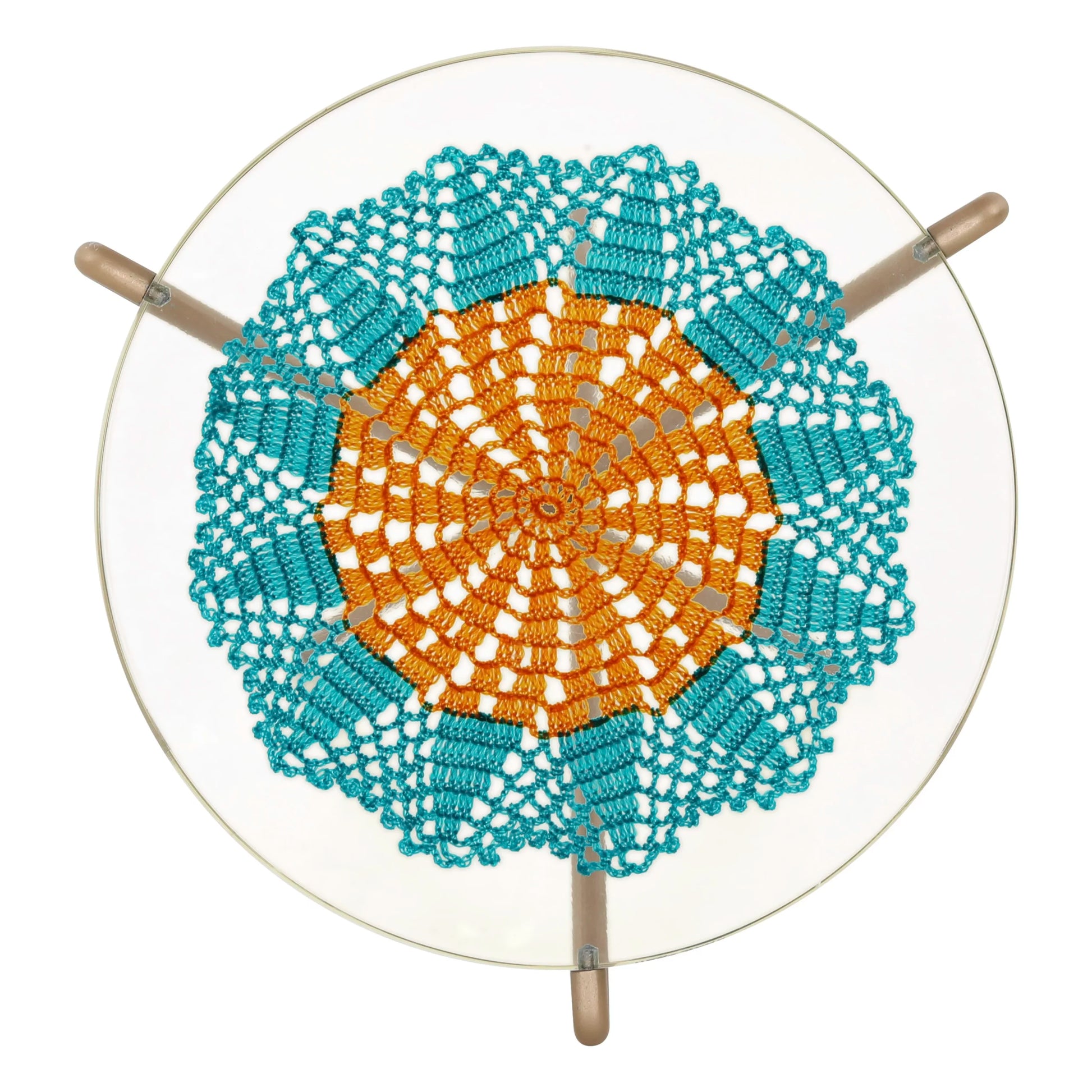 Side table with Crochet inlay in clear resin with metal base - medium