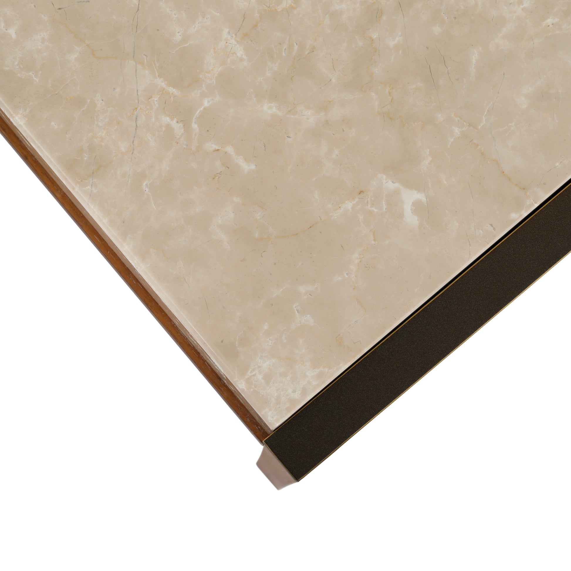 With a forty year history at the forefront of the luxury home furnishings industry, Donghia, named after its founder, interior designer Angelo Donghia, represents American design at its best. Clean-lined and contemporary, this sleek table features a marble top and a walnut frame. Bronze sabots and detailing give this eye-catching stone table added sophistication.