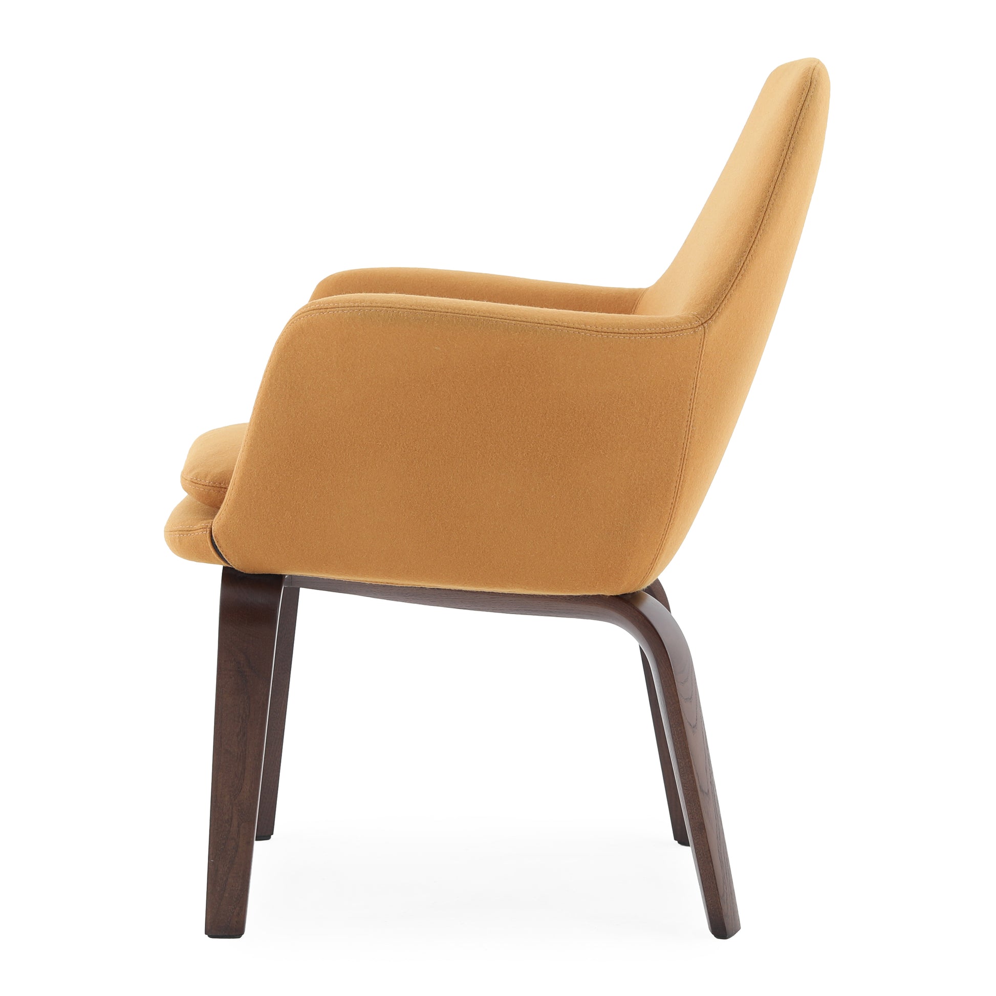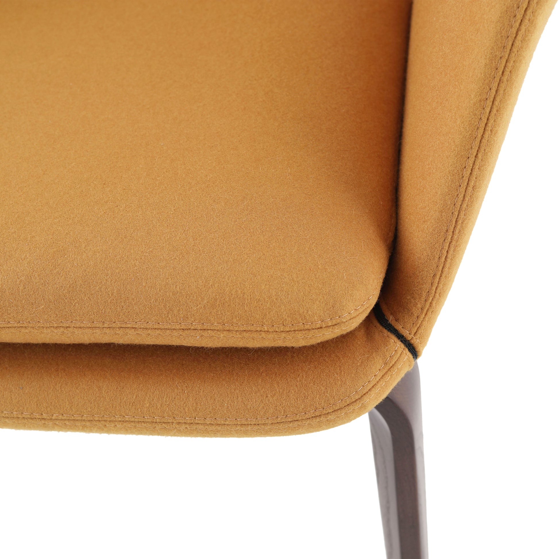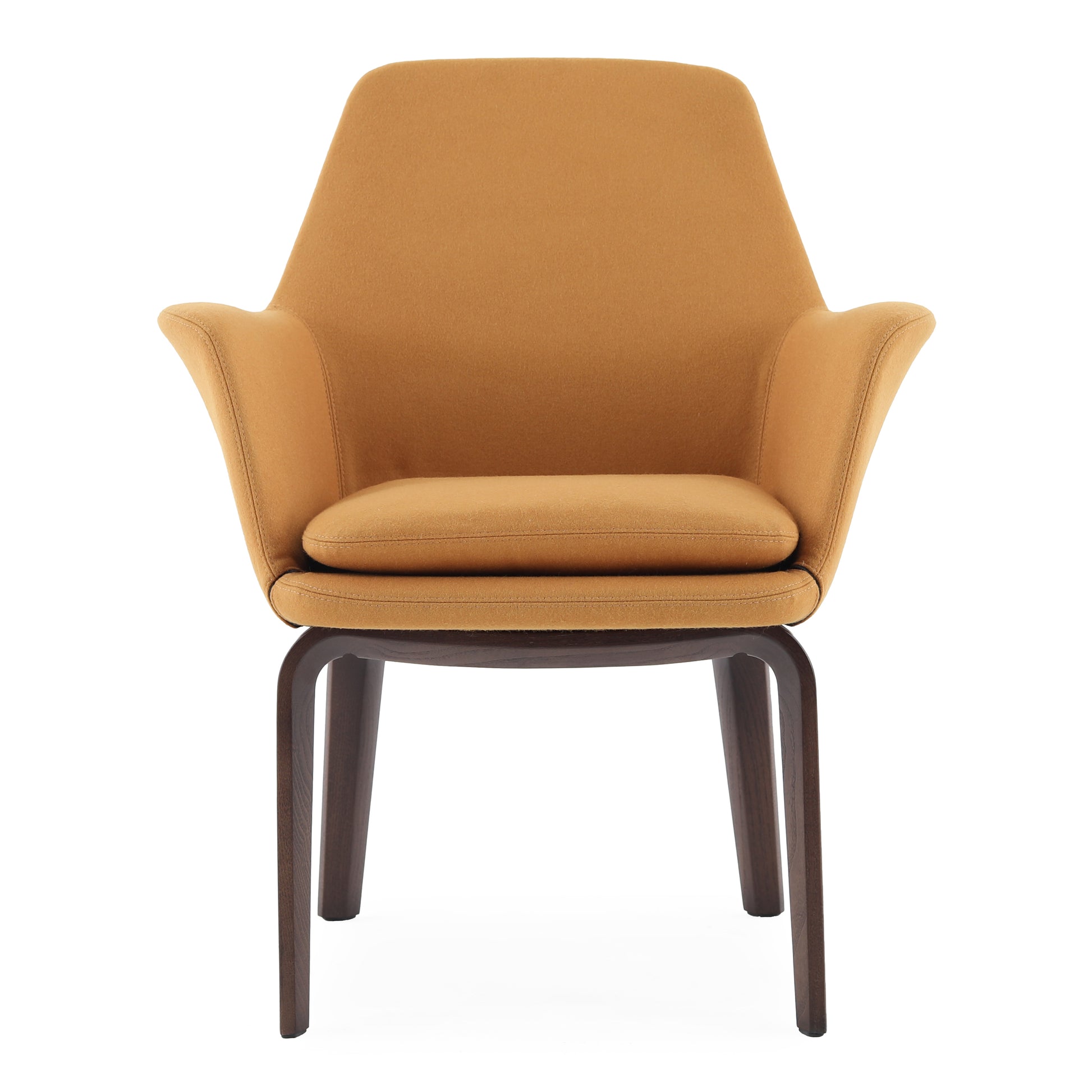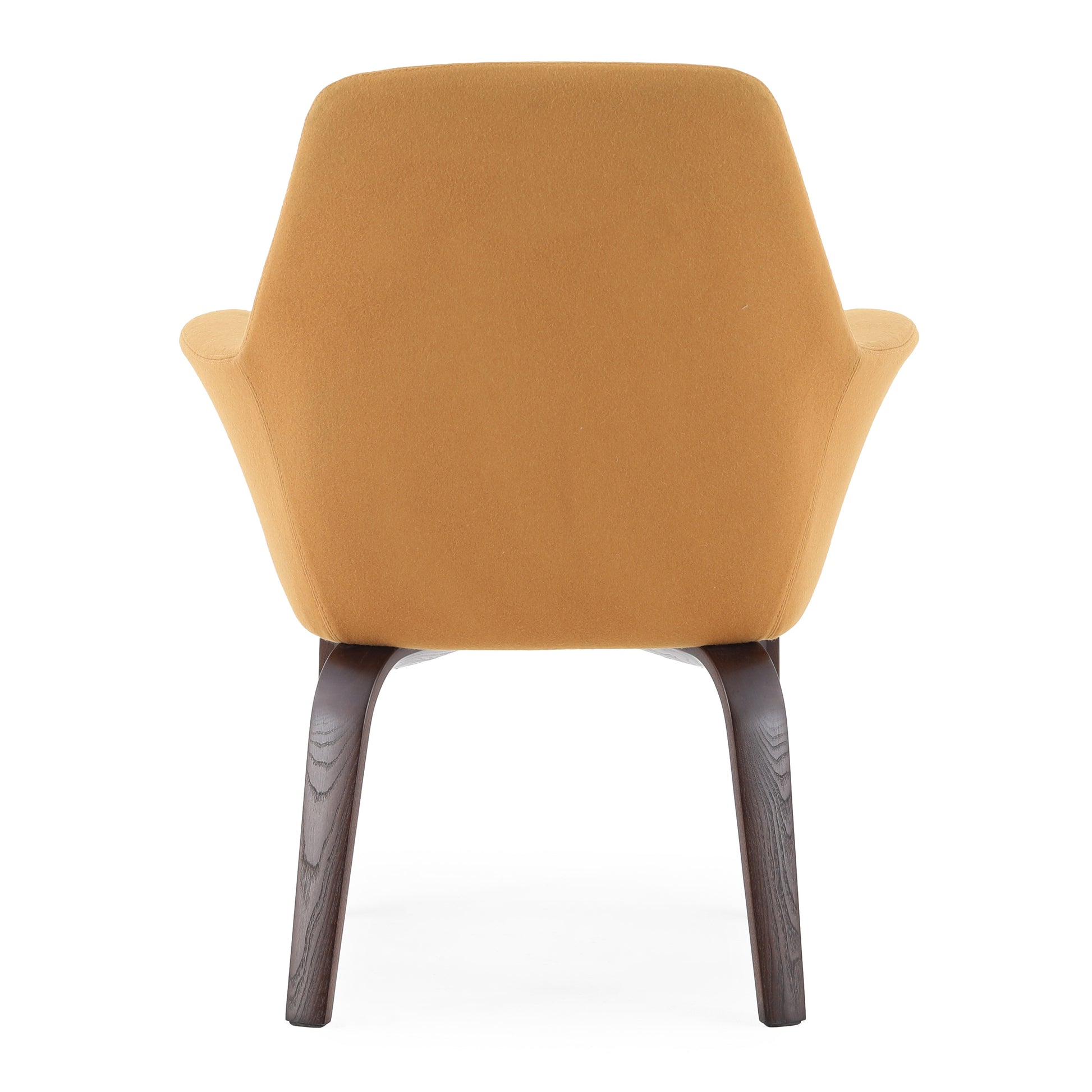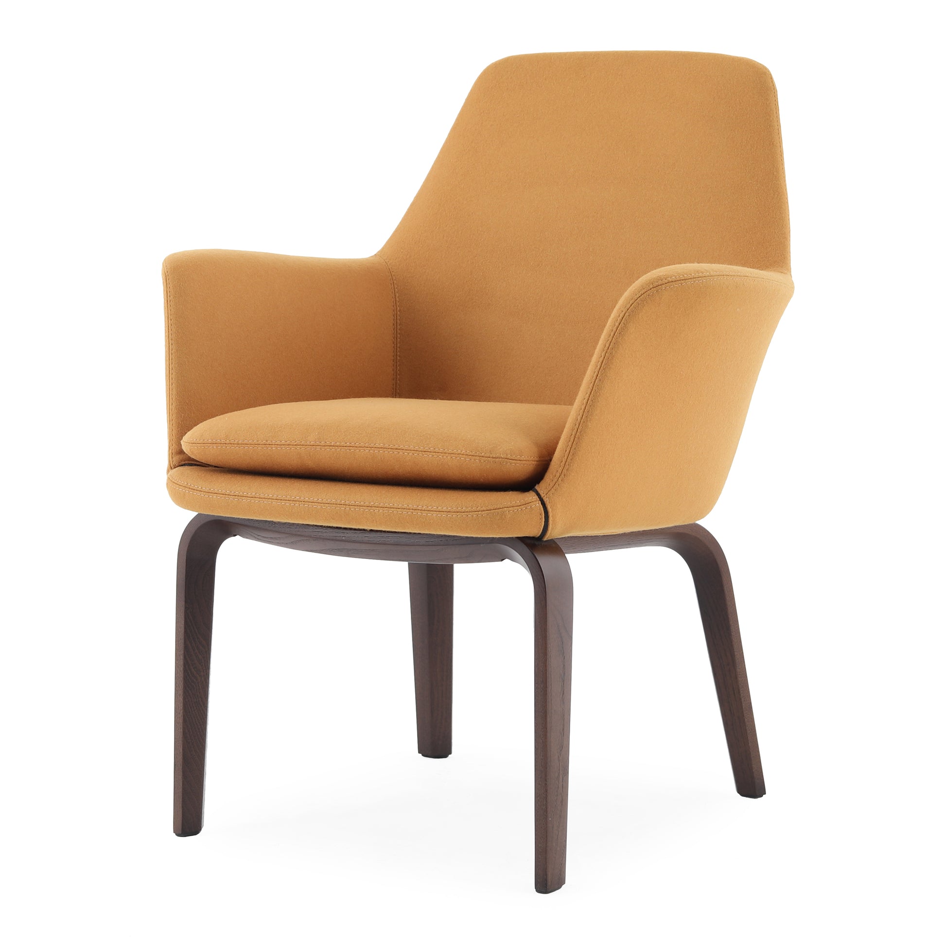 York Lounge Little Armchair-Legs Tobacco,T/ARC17-Arco 17 Senape. Light in shape, but with a soft padding over their cold-foamed shells, they wear their fabric or leather clothing to perfection, melding ergonomics and elegance in an indissoluble way, to create seating that is comfortable and sophisticated.
